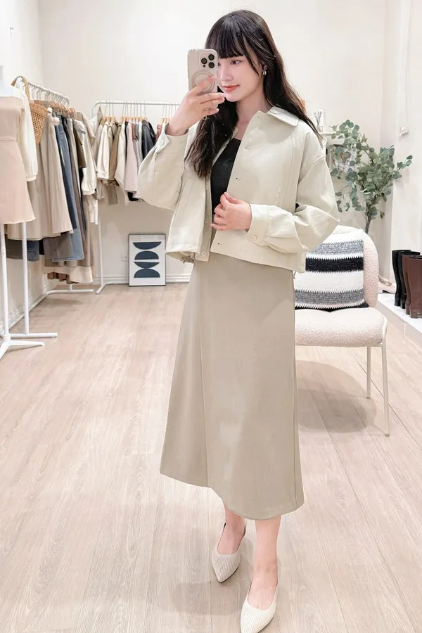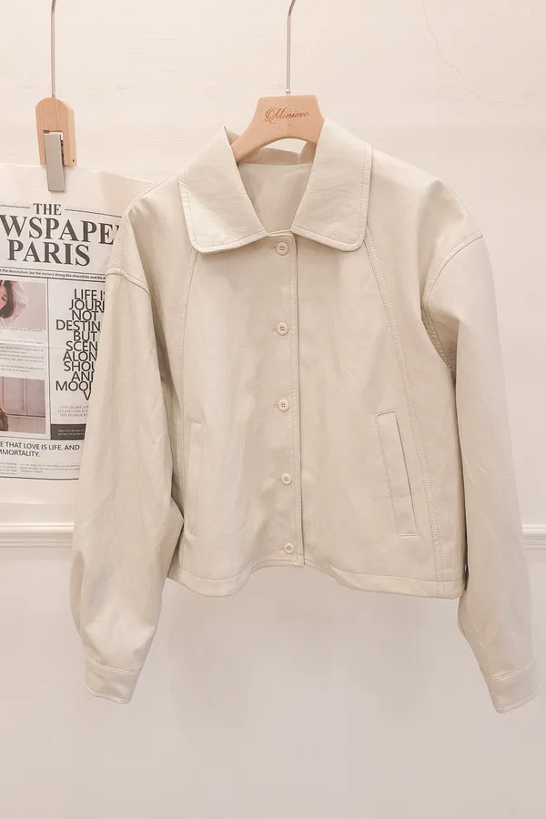 32.正韓 翻領圓釦薄皮料外套