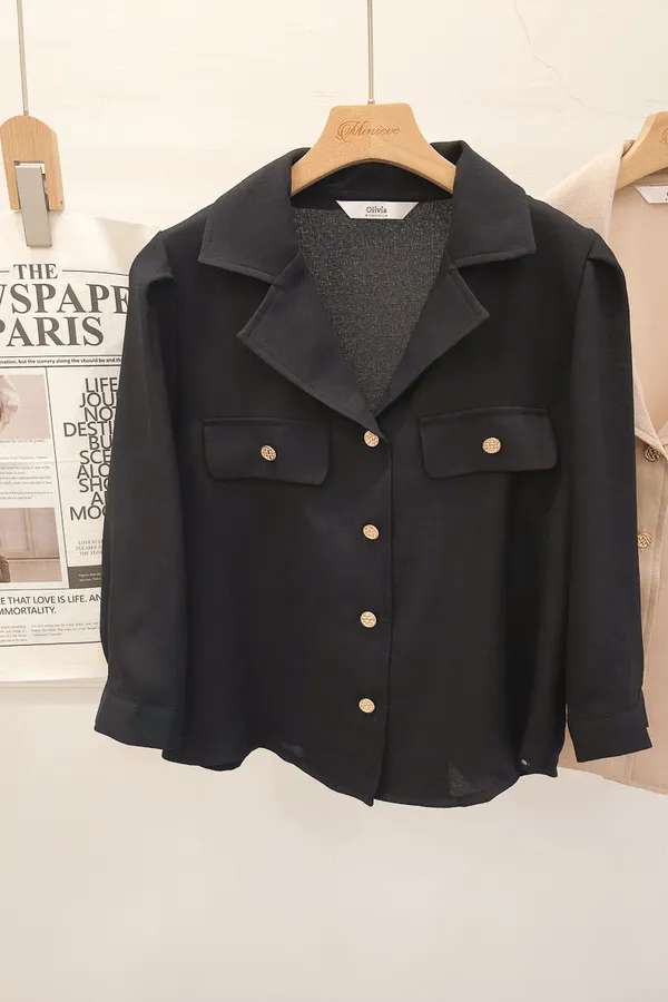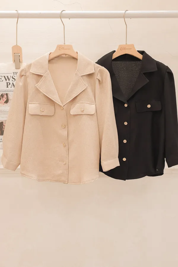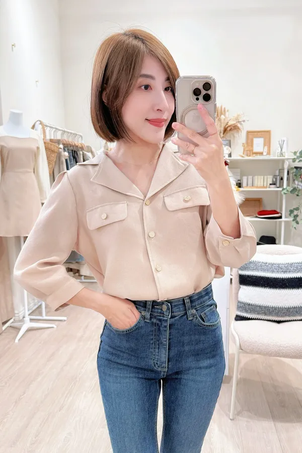 38.正韓 金釦翻領七分開襟衫 2色