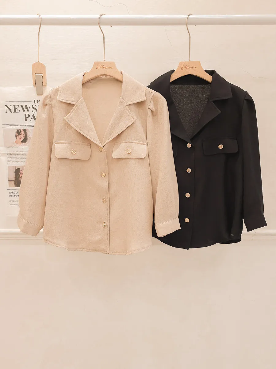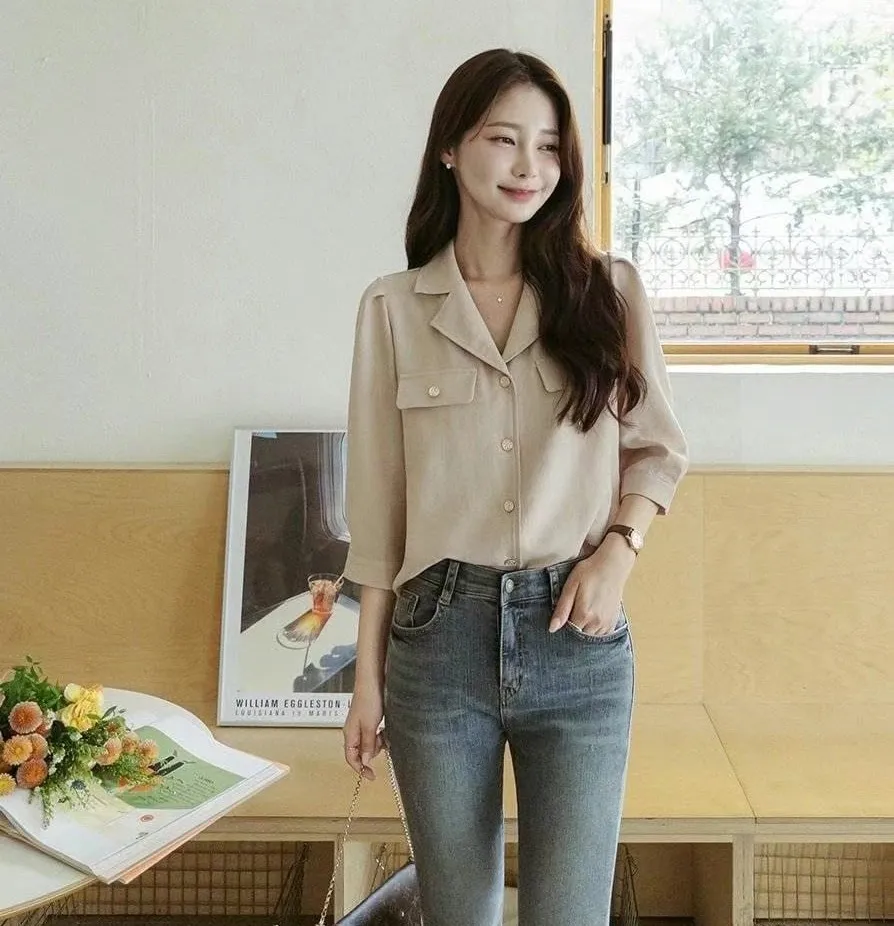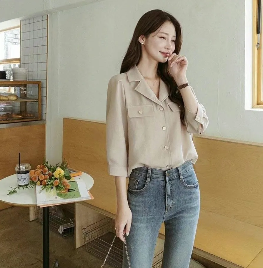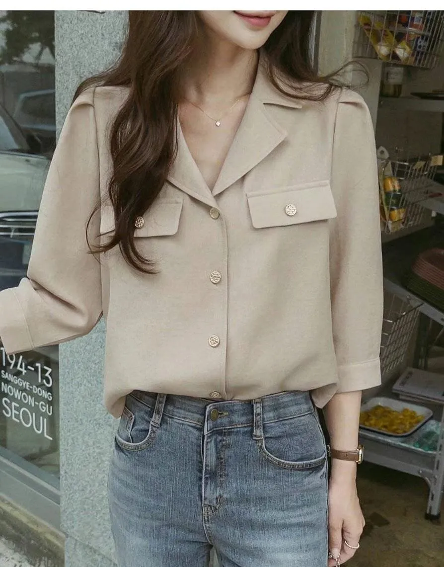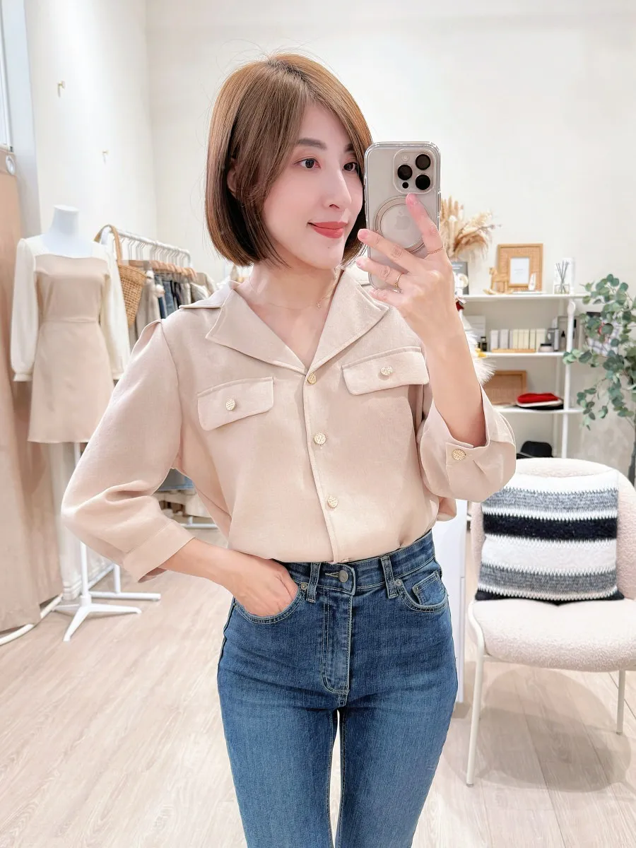 正韓 金釦翻領七分開襟衫 2色