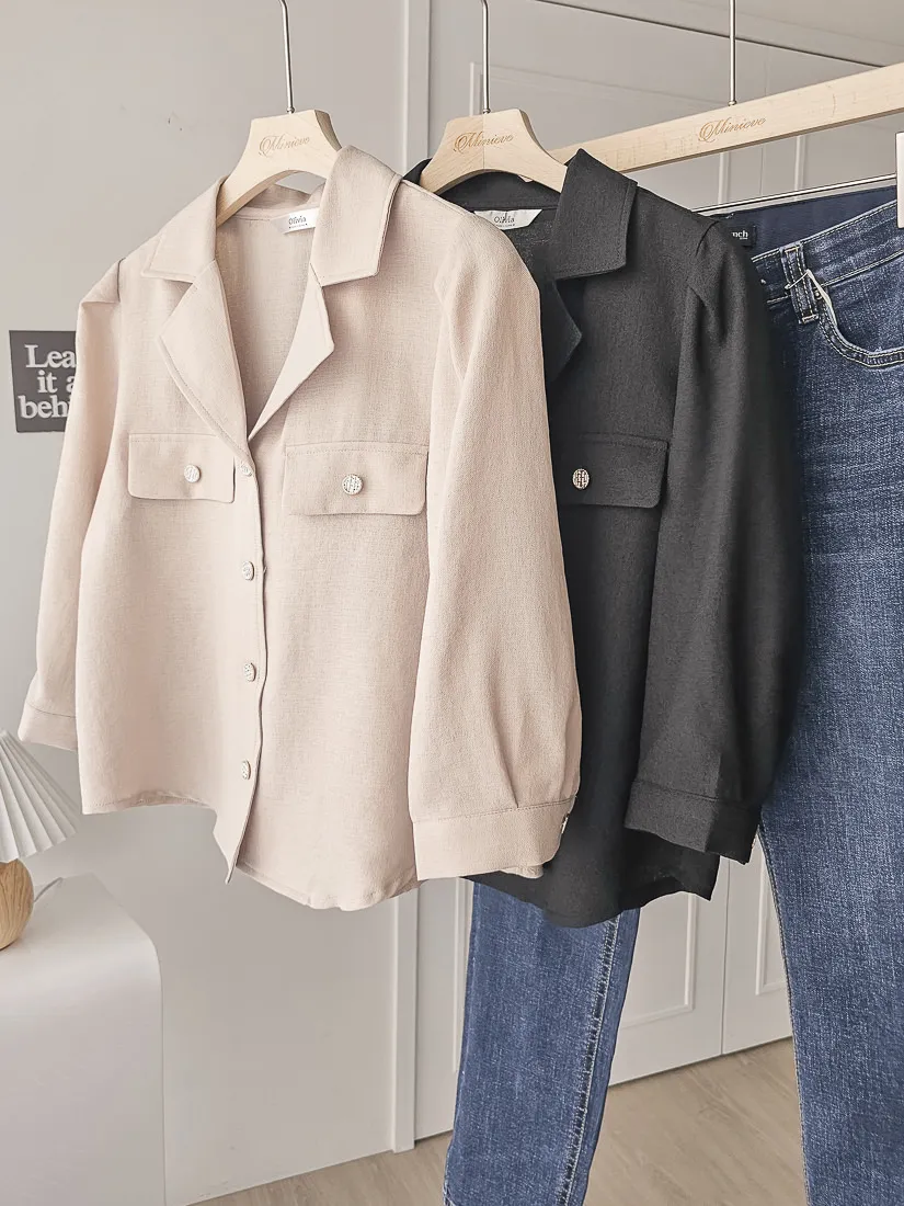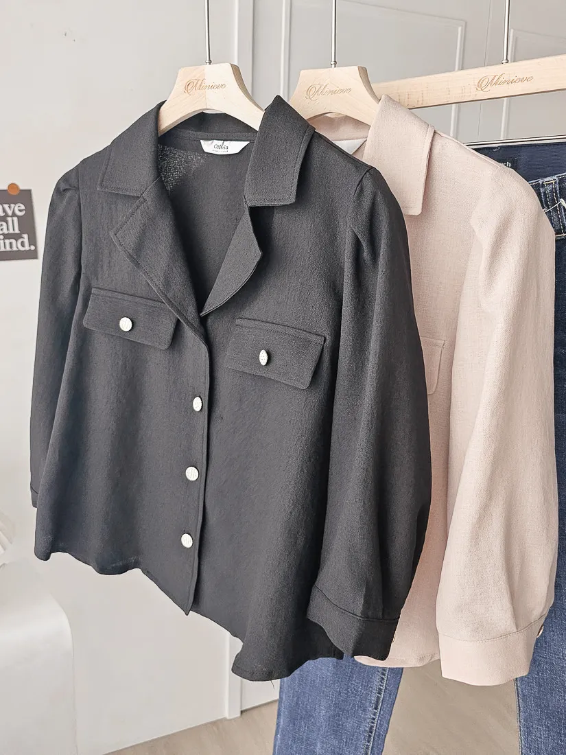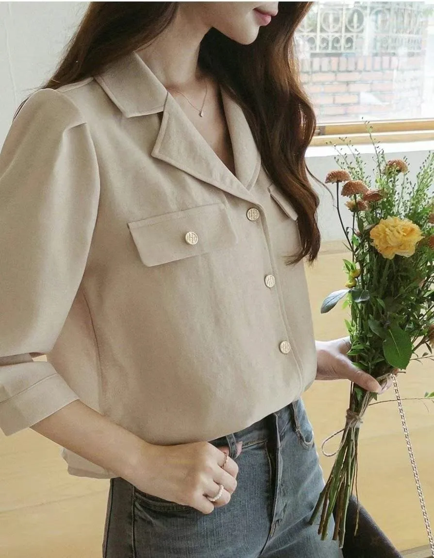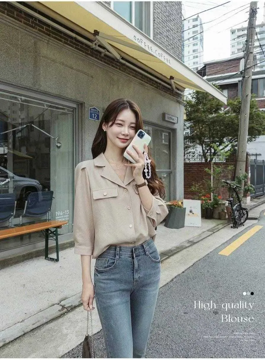 正韓 金釦翻領七分開襟衫 2色
