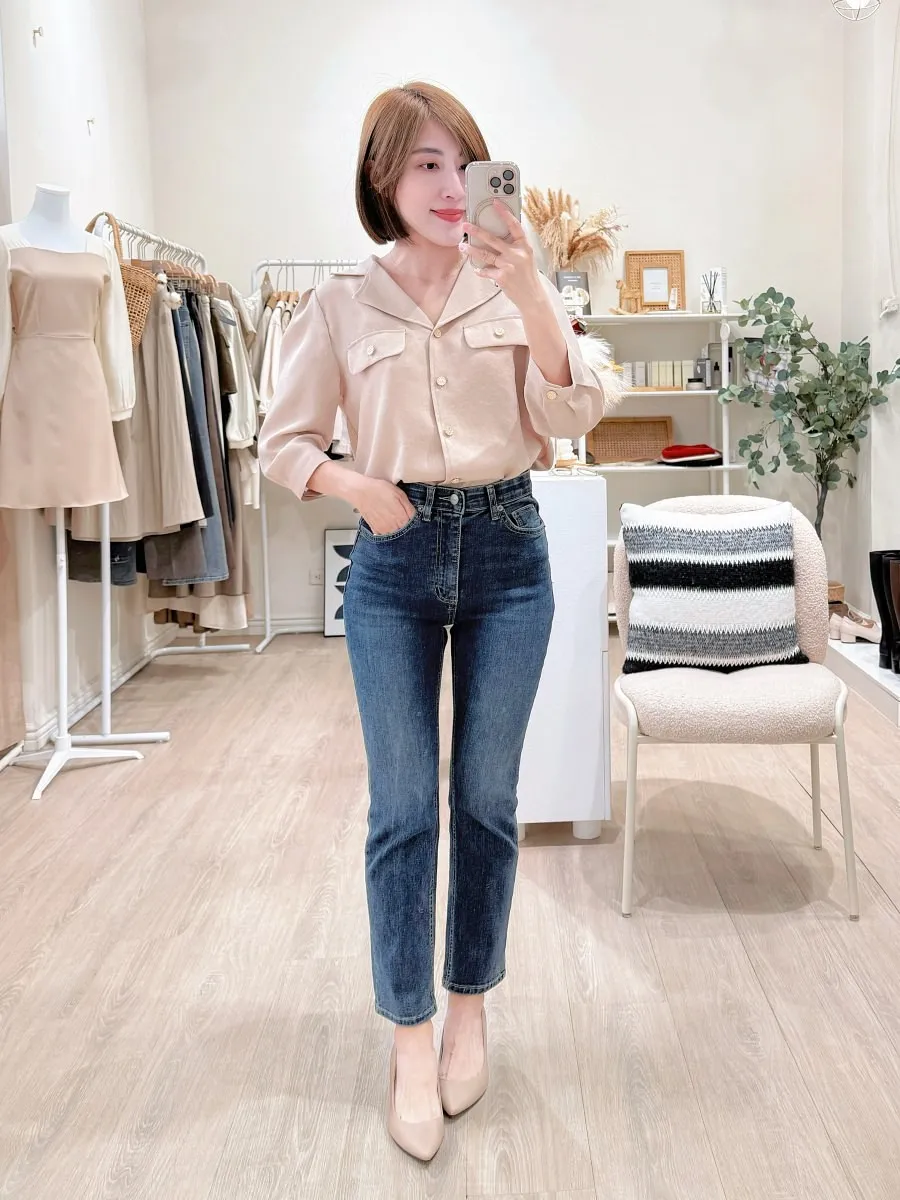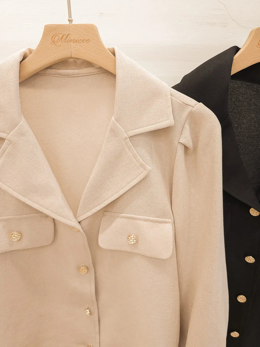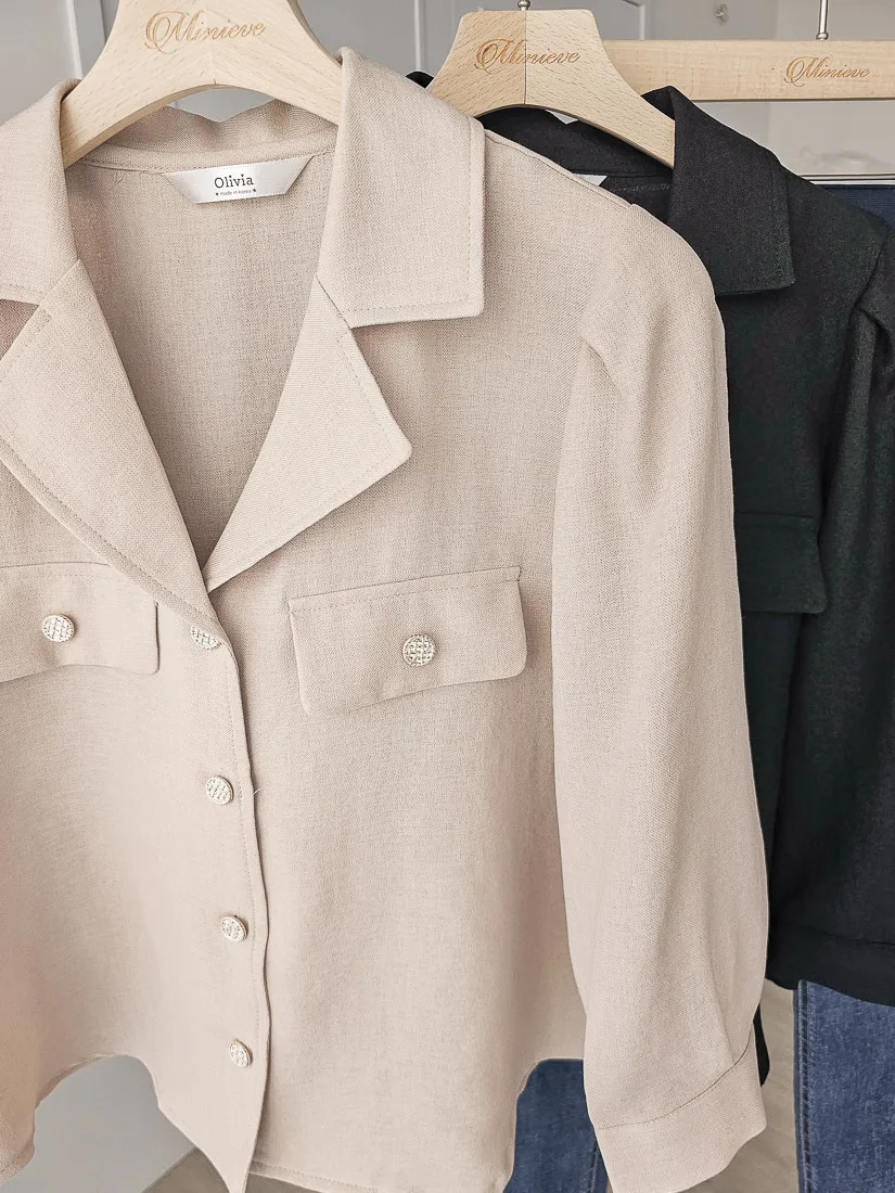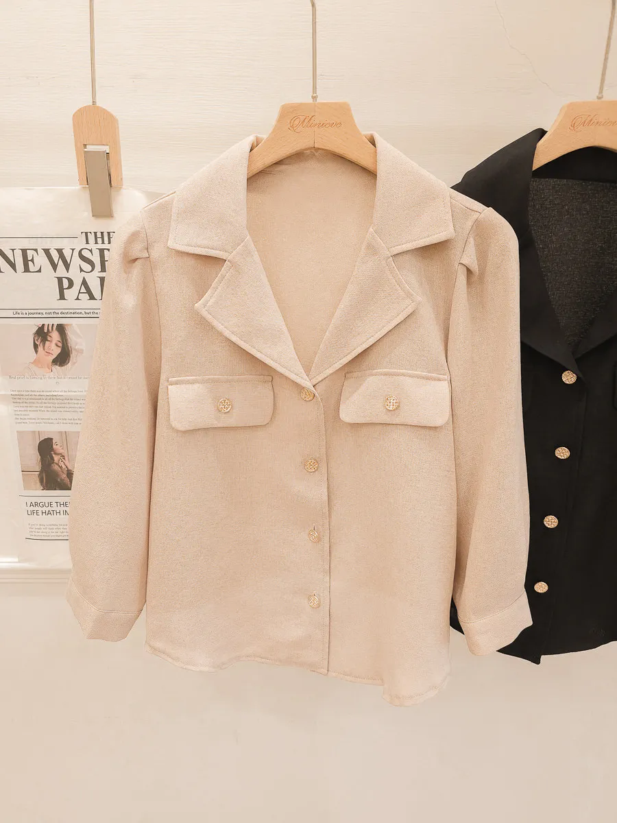 正韓 金釦翻領七分開襟衫 2色