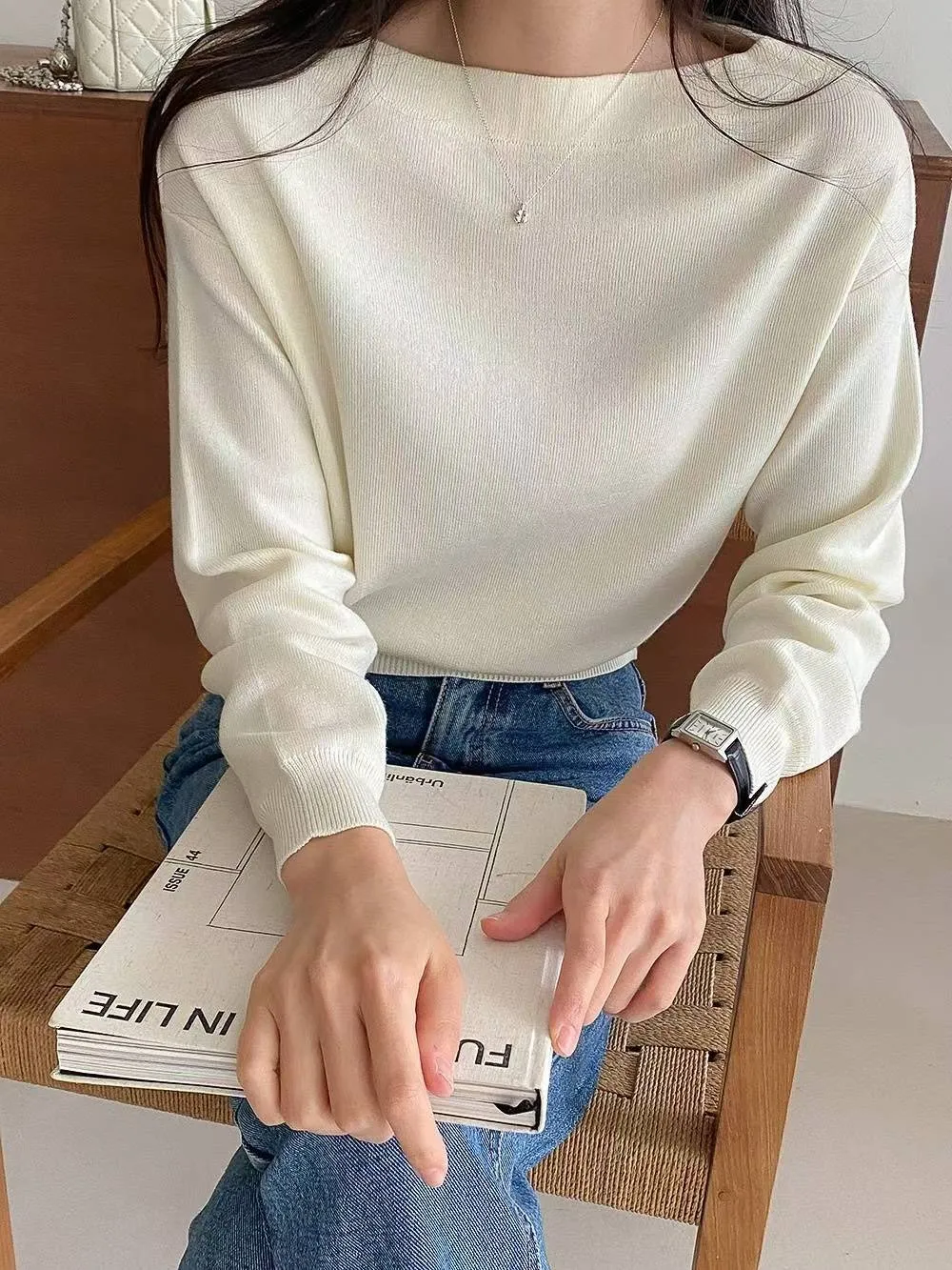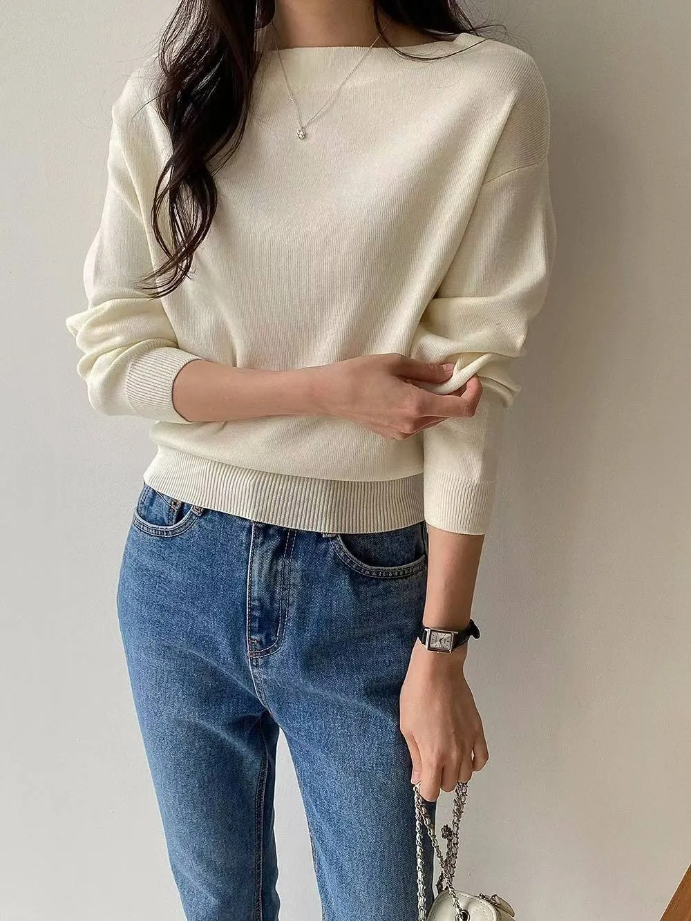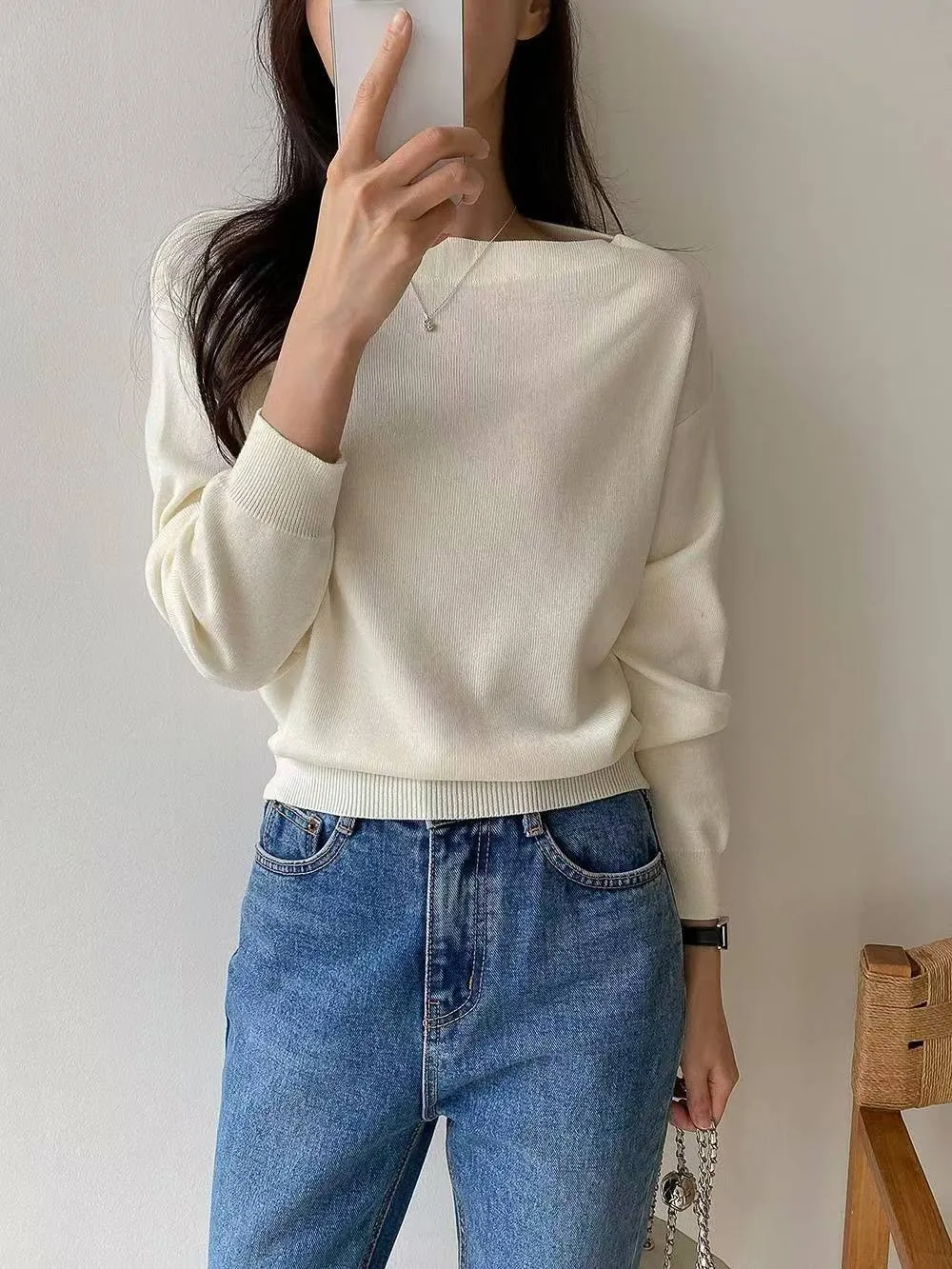正韓 簡約一字純色上衣 2色