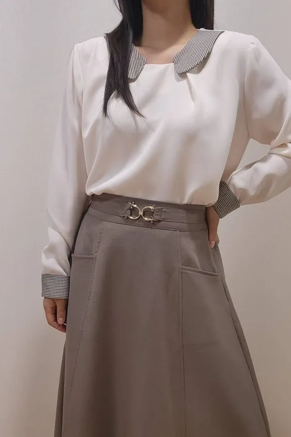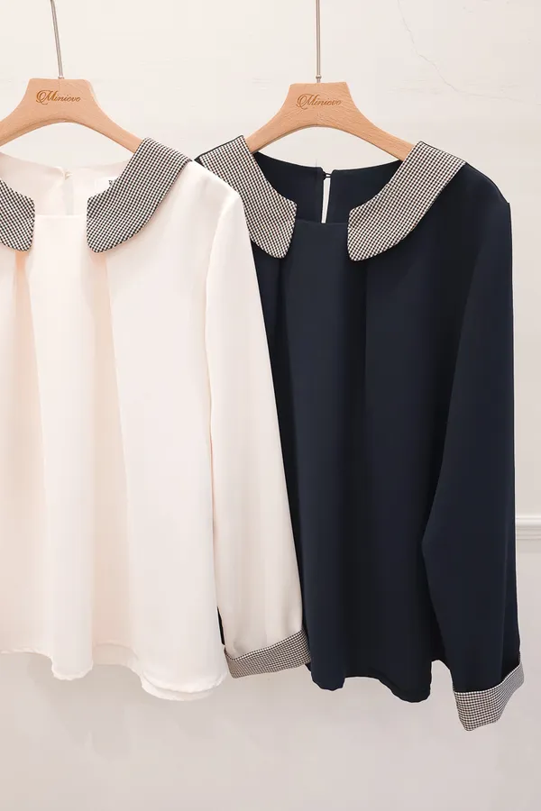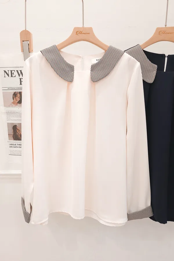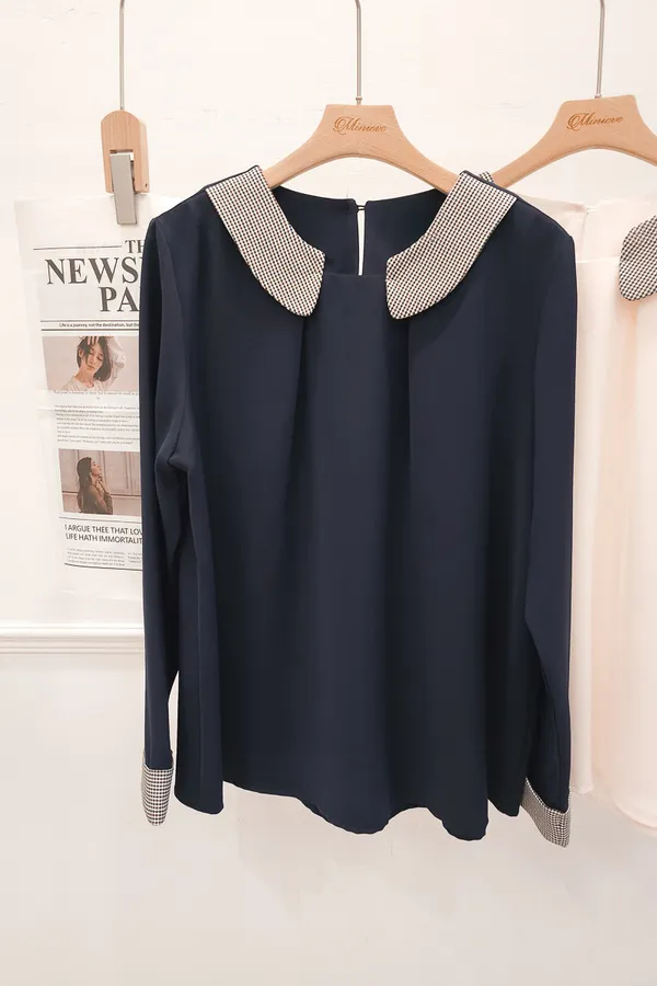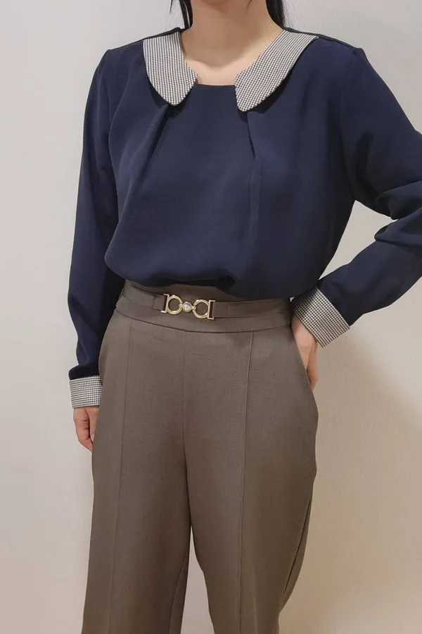 61.正韓 拼接細格紋領壓摺上衣 2色