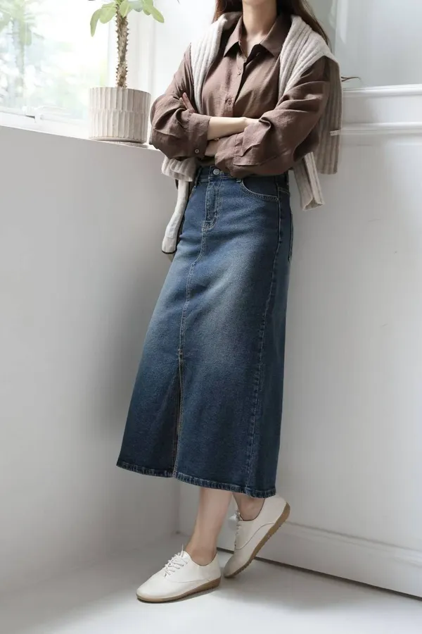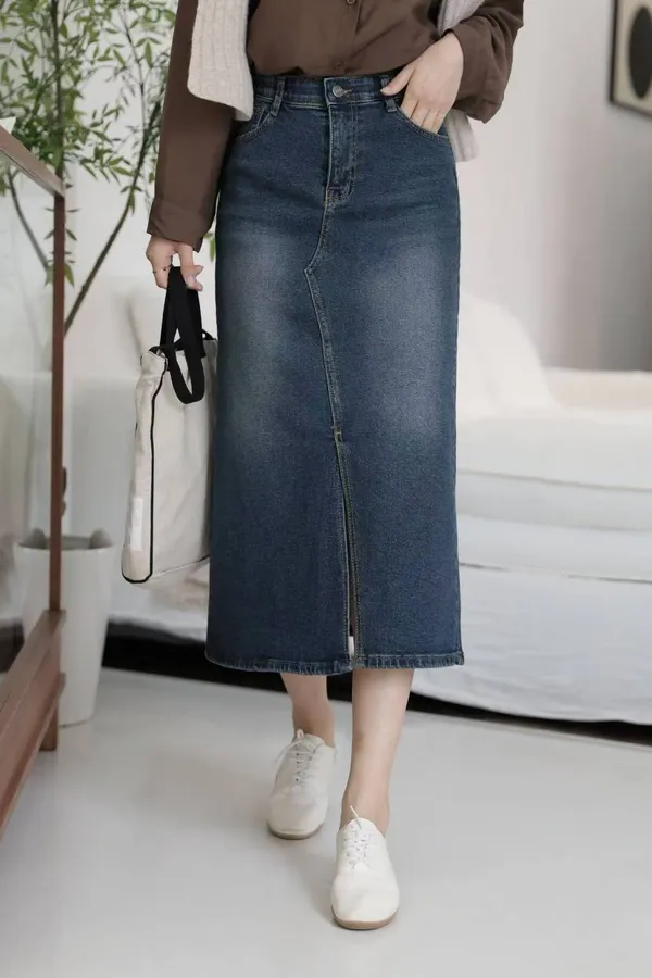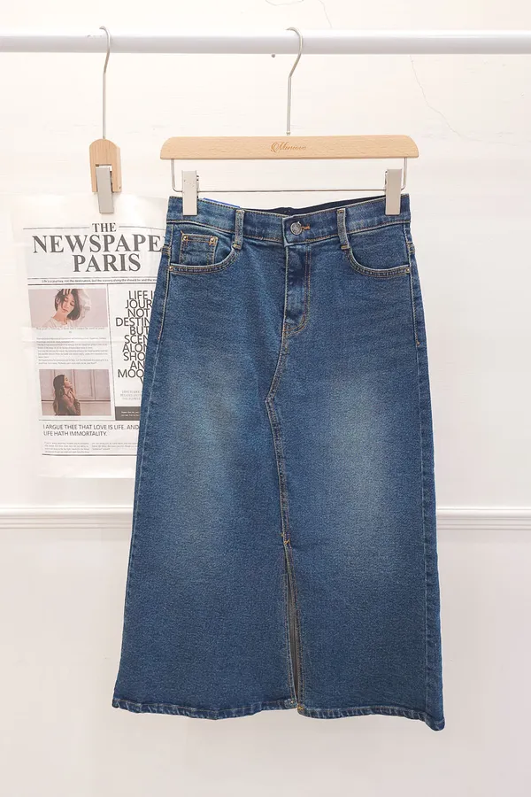 64.正韓 前開衩深刷牛仔裙