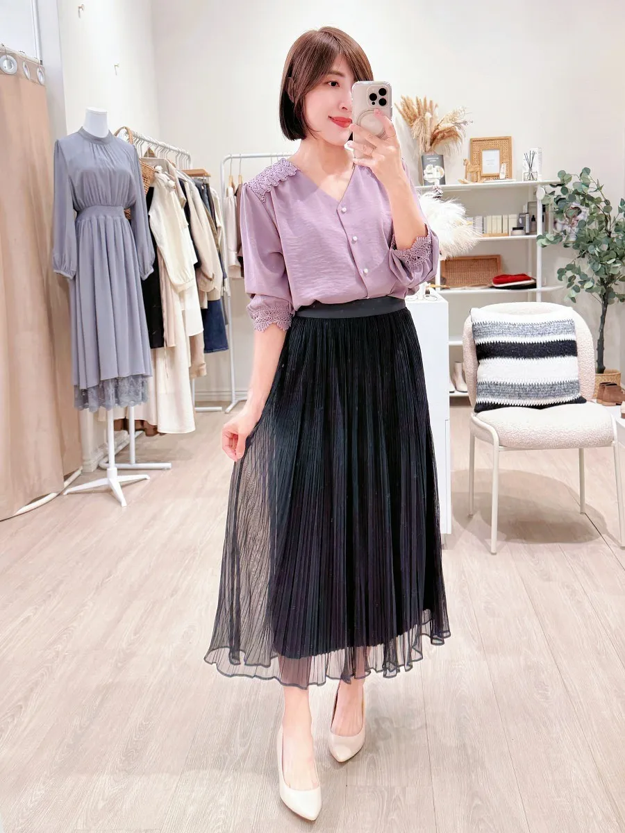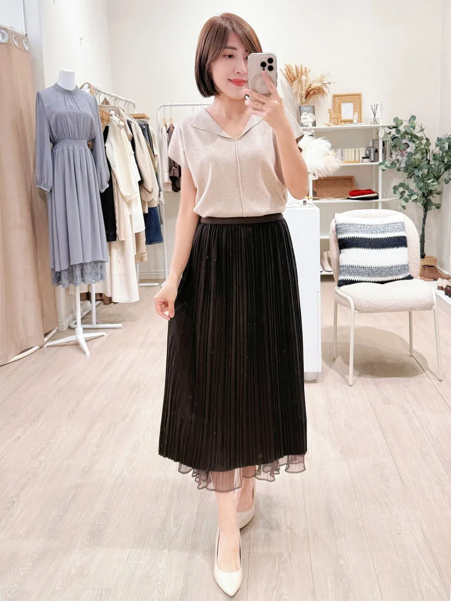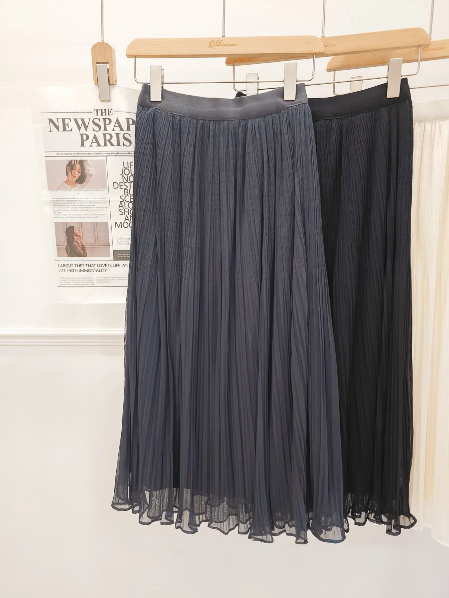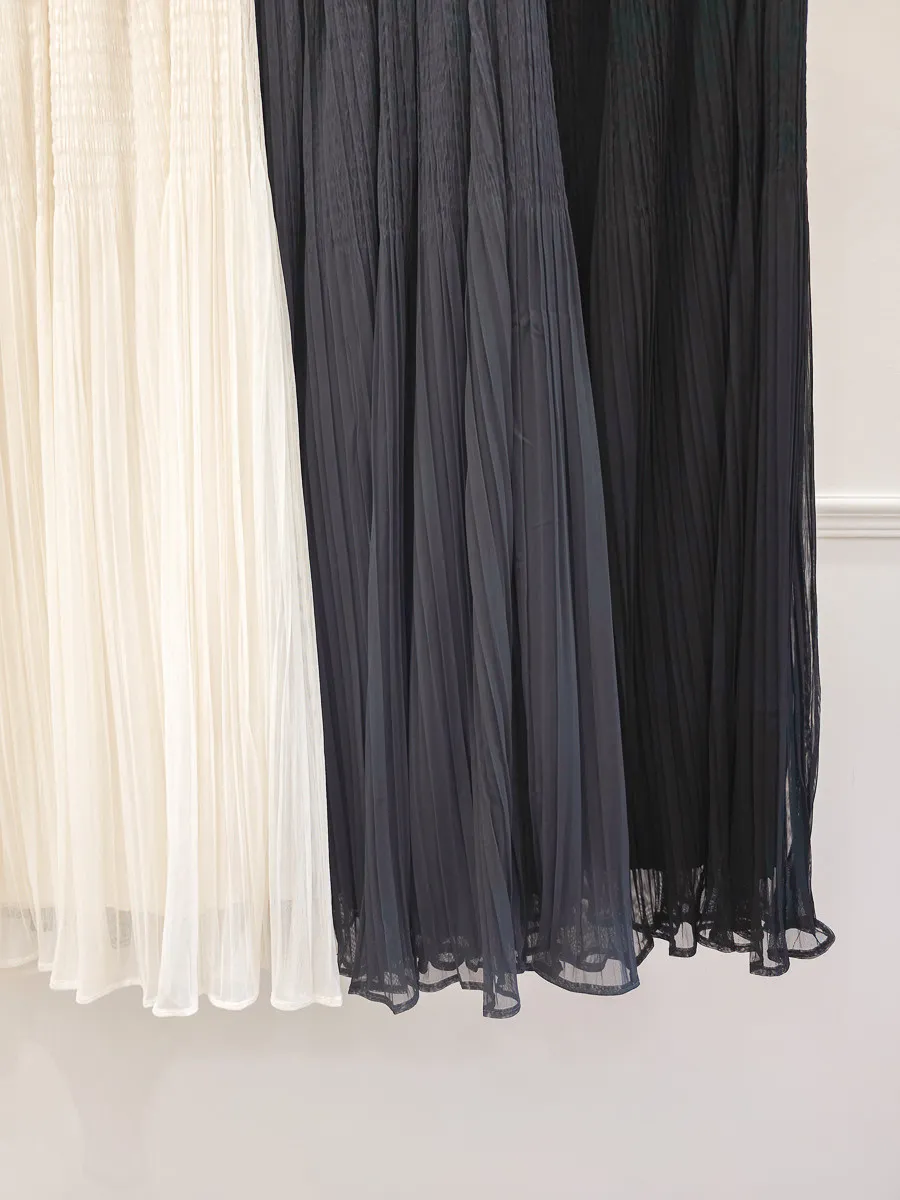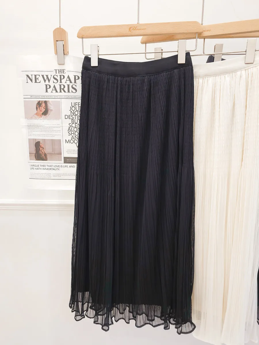 自訂 細摺紋捲邊2way雪紡紗裙 4色