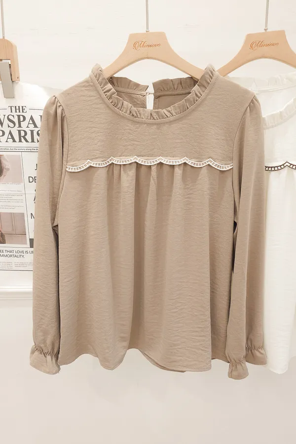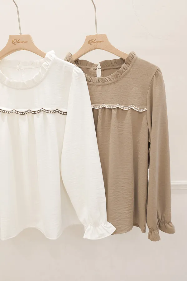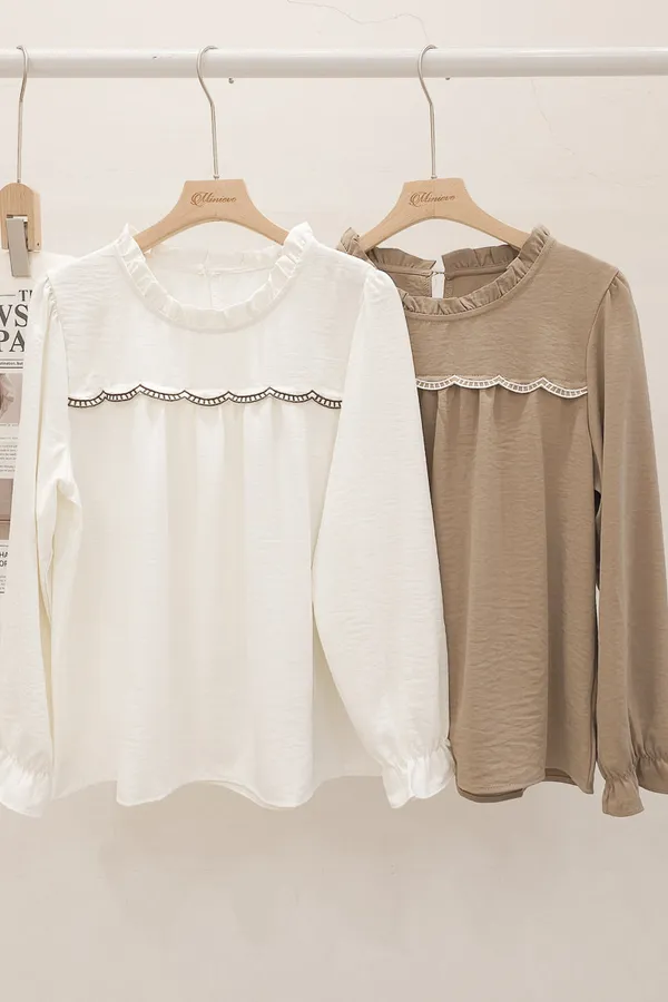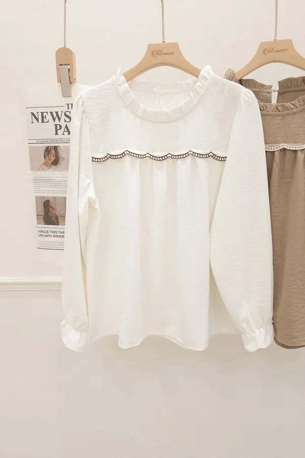 74.自訂 皺摺領波浪車線上衣 2色