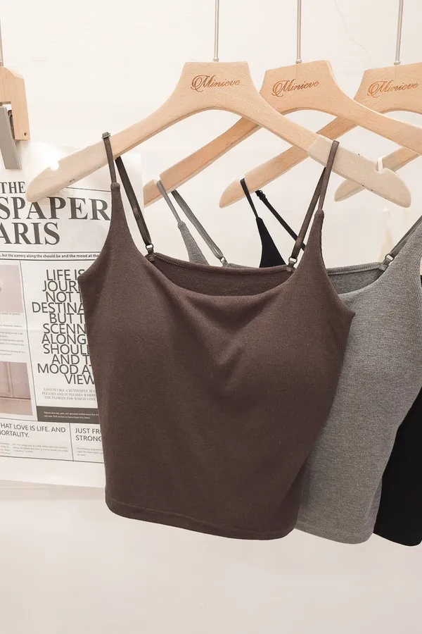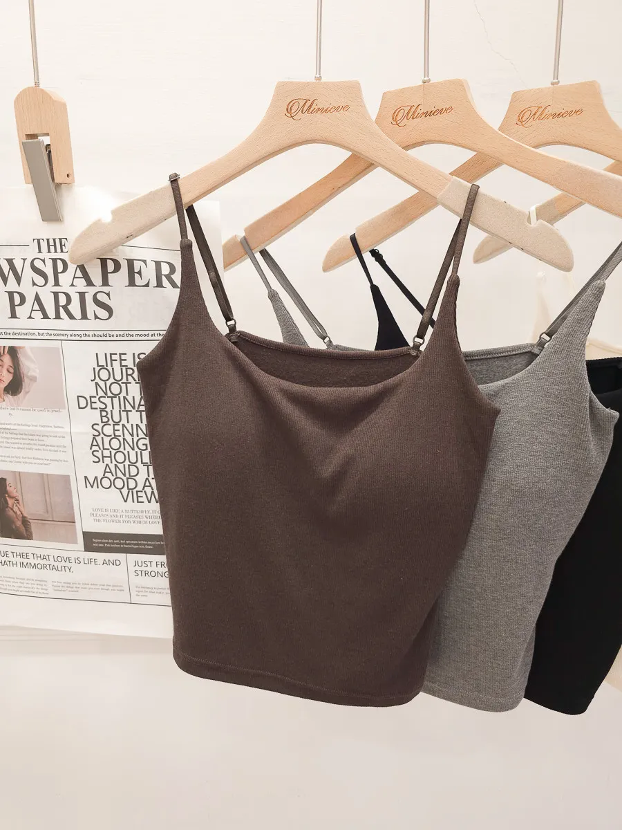 10.自訂 彈力珍珠絨Bra細肩背心 5色