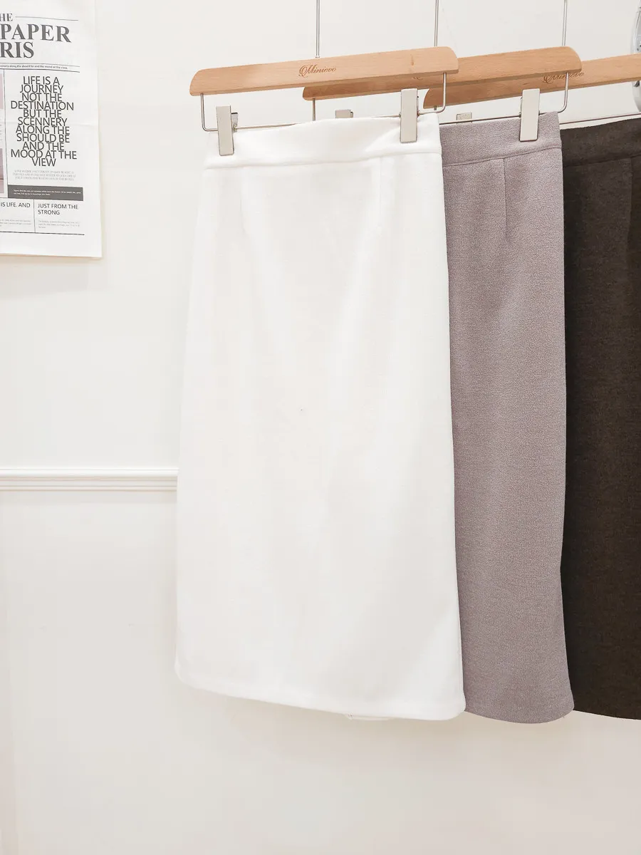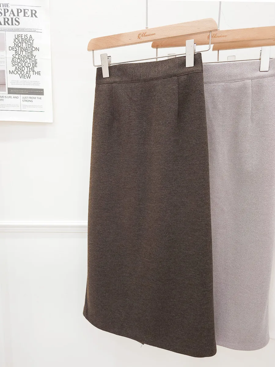 100.正韓 純色磨毛直筒中裙 3色