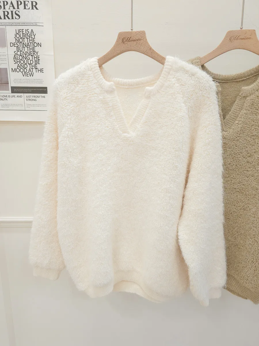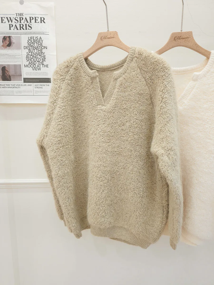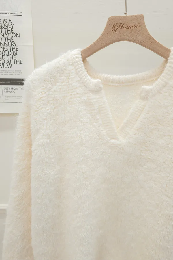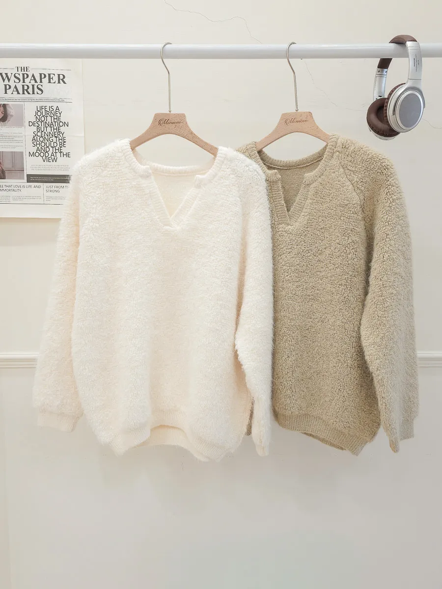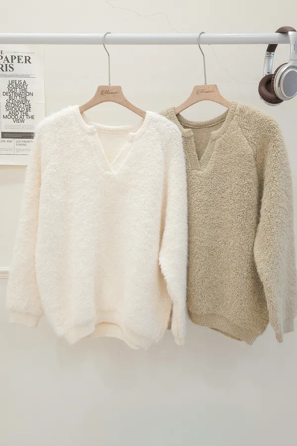 16.正韓 小V領純色毛鬚上衣 2色