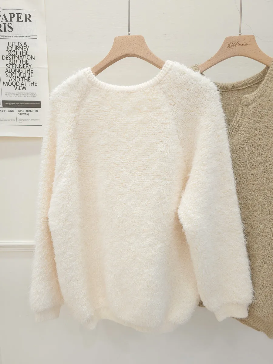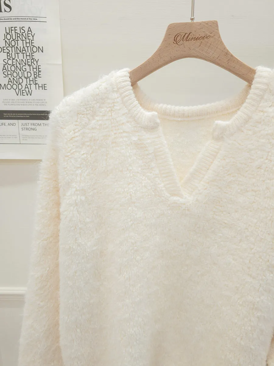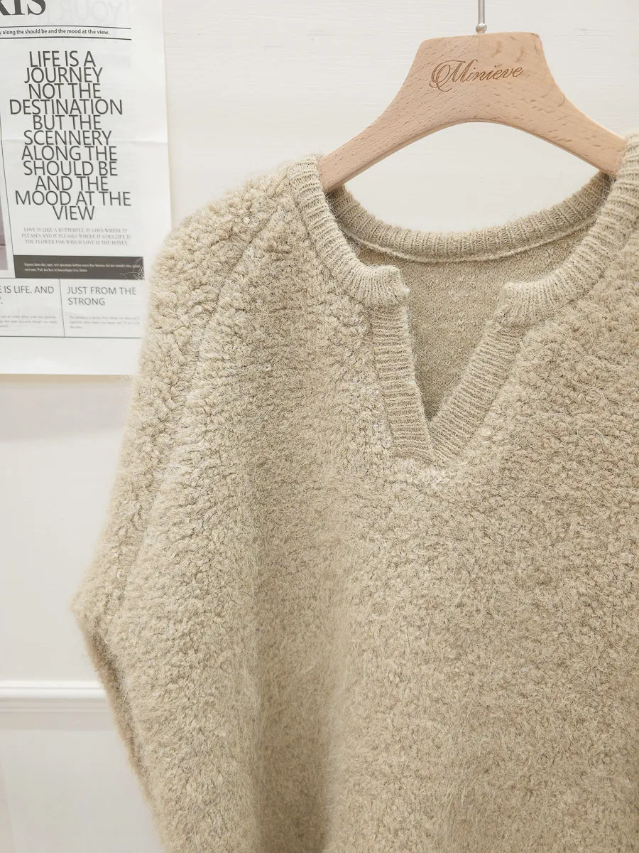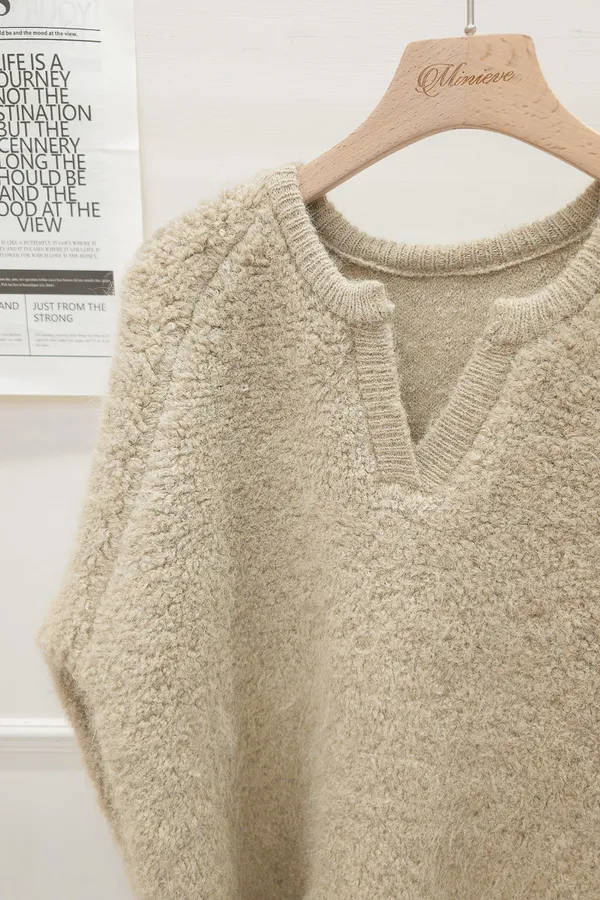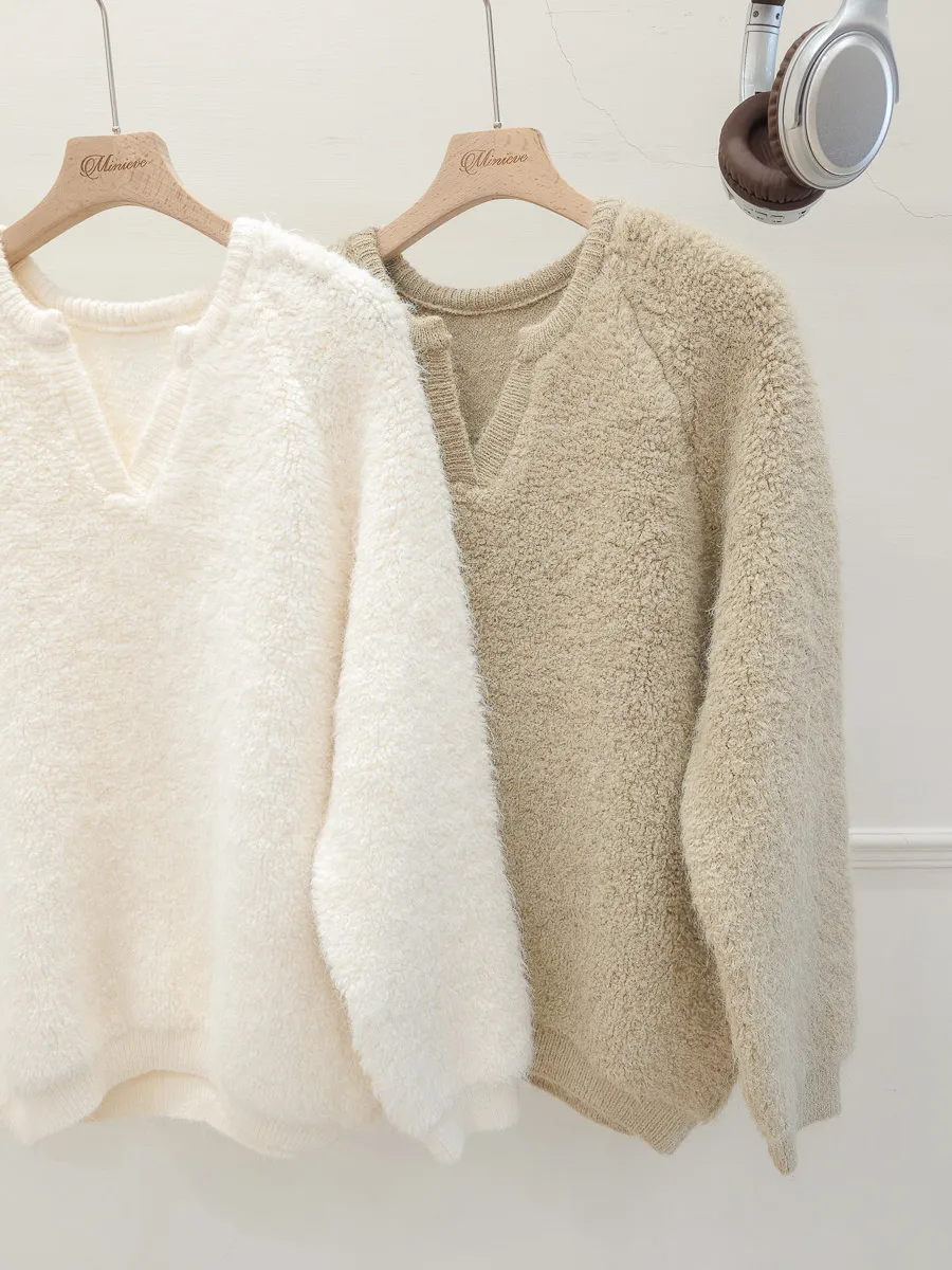 16.正韓 小V領純色毛鬚上衣 2色
