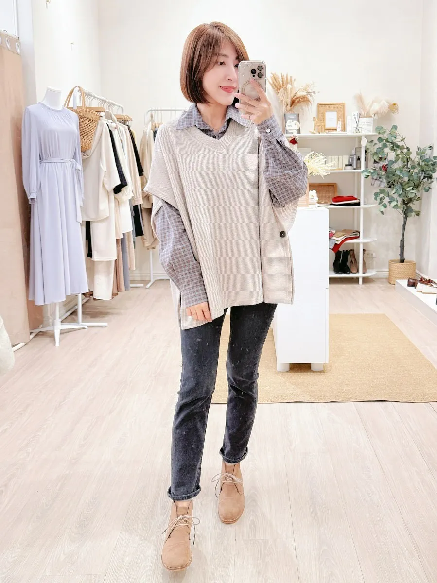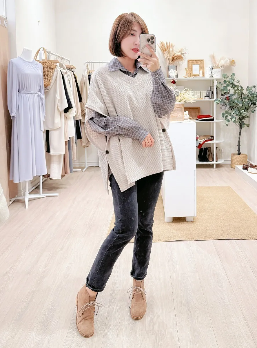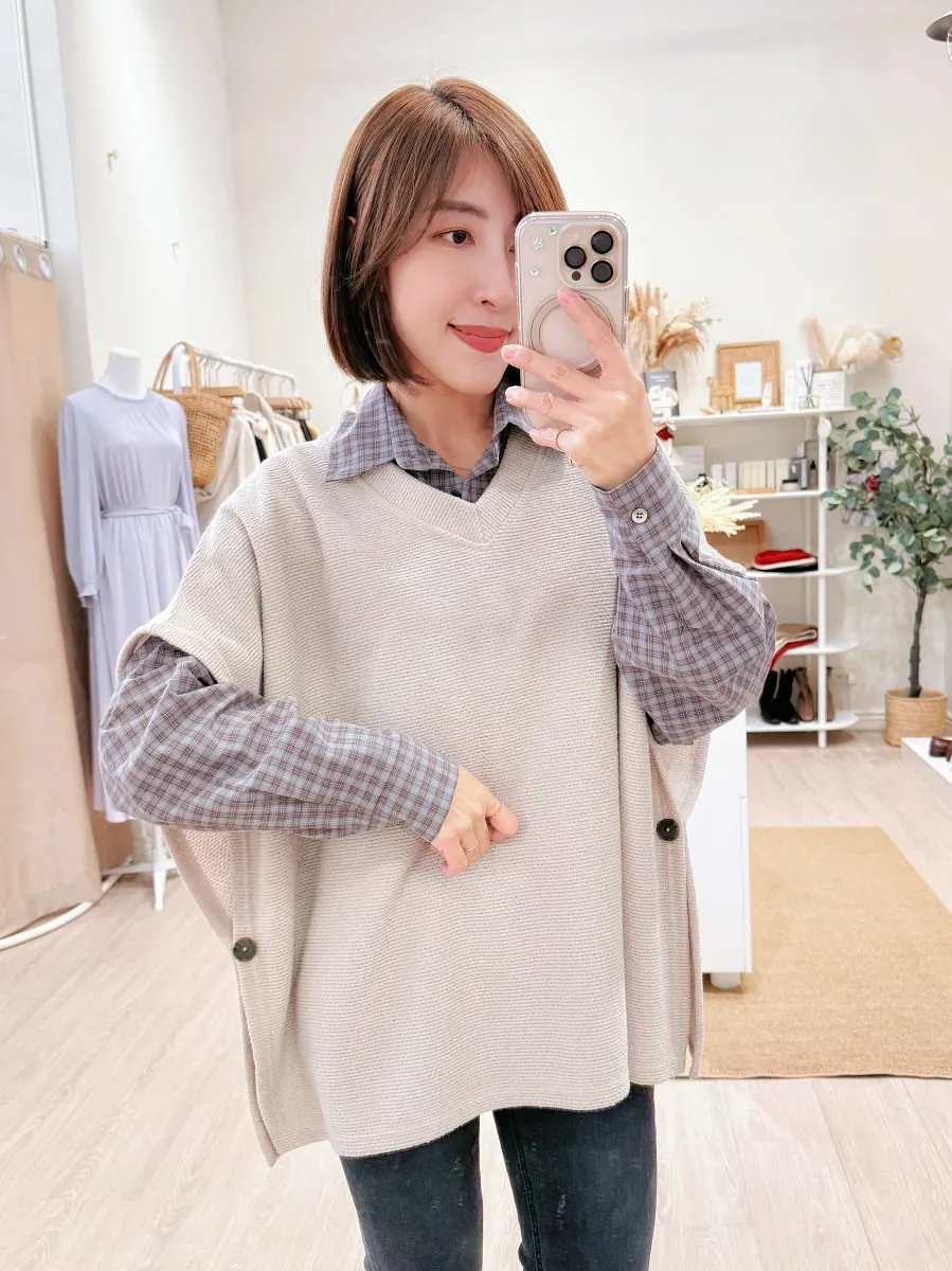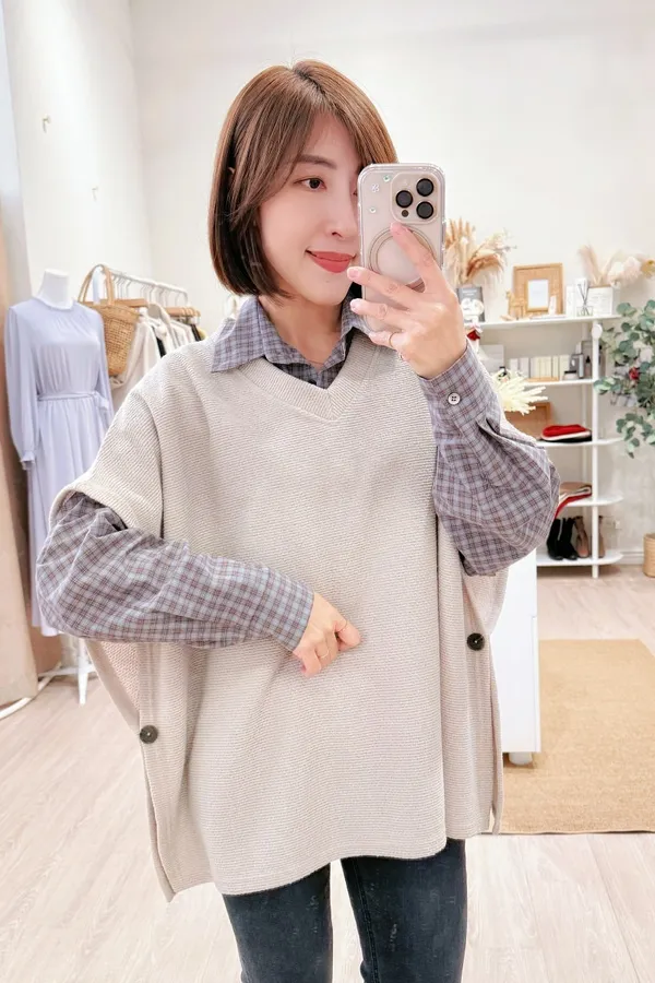 正韓 側釦寬鬆外罩背心斗篷 2色