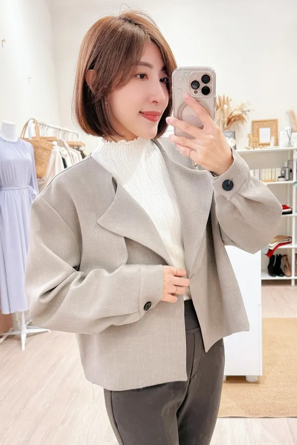正韓 捲邊坑條毛料上衣 4色