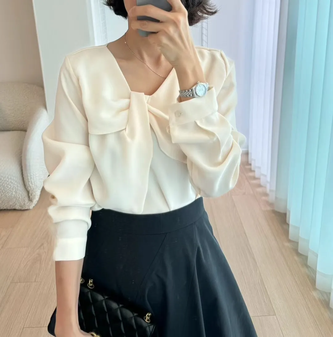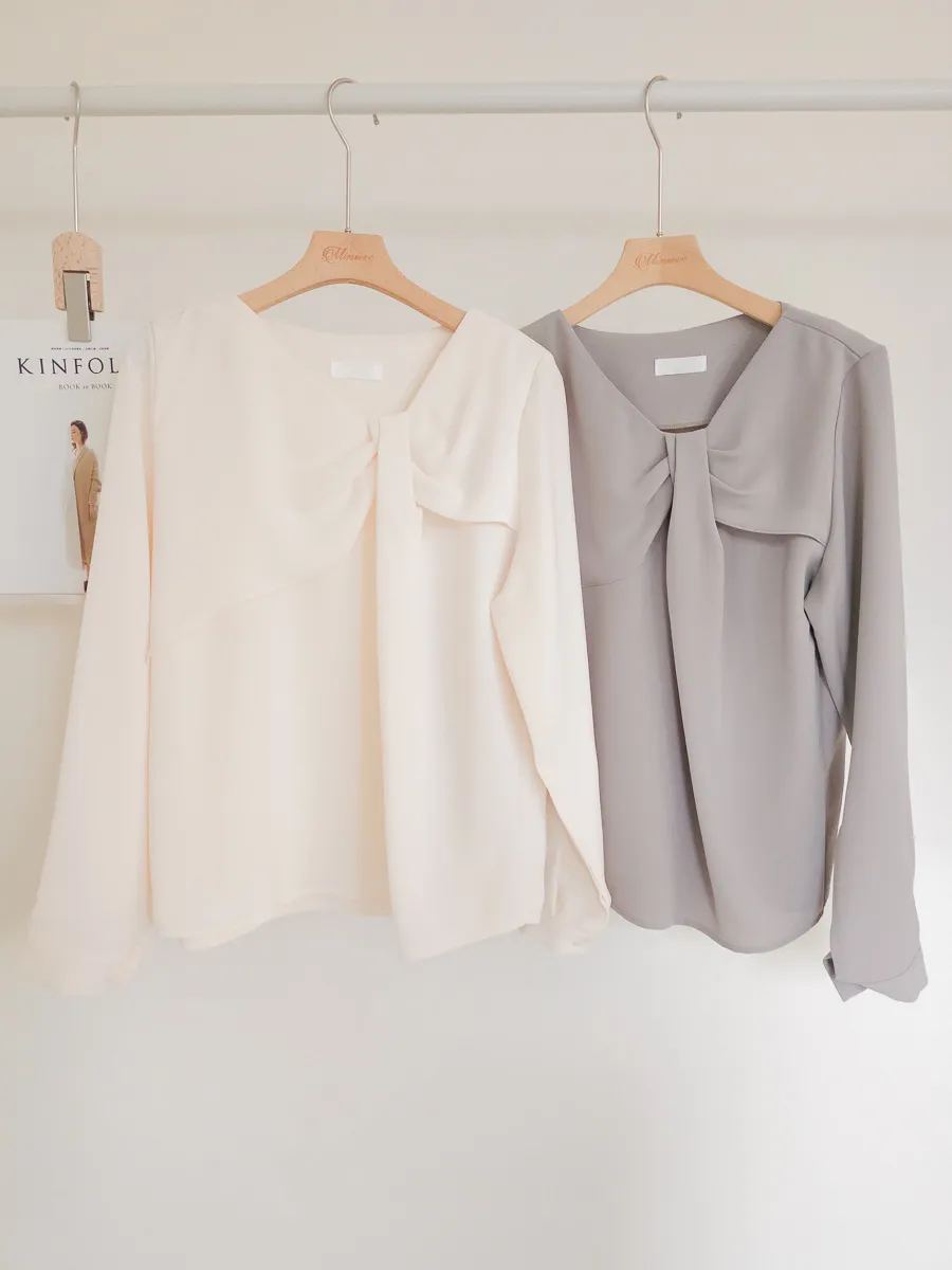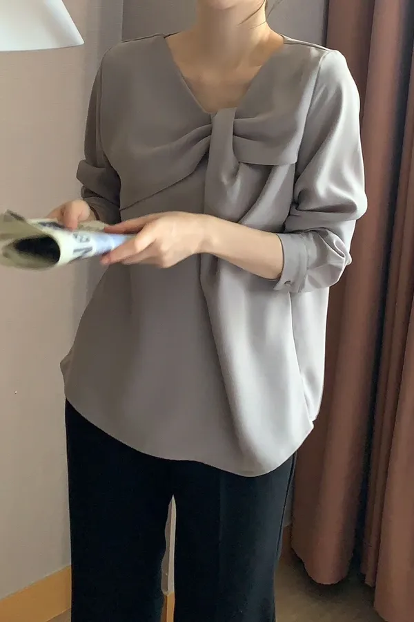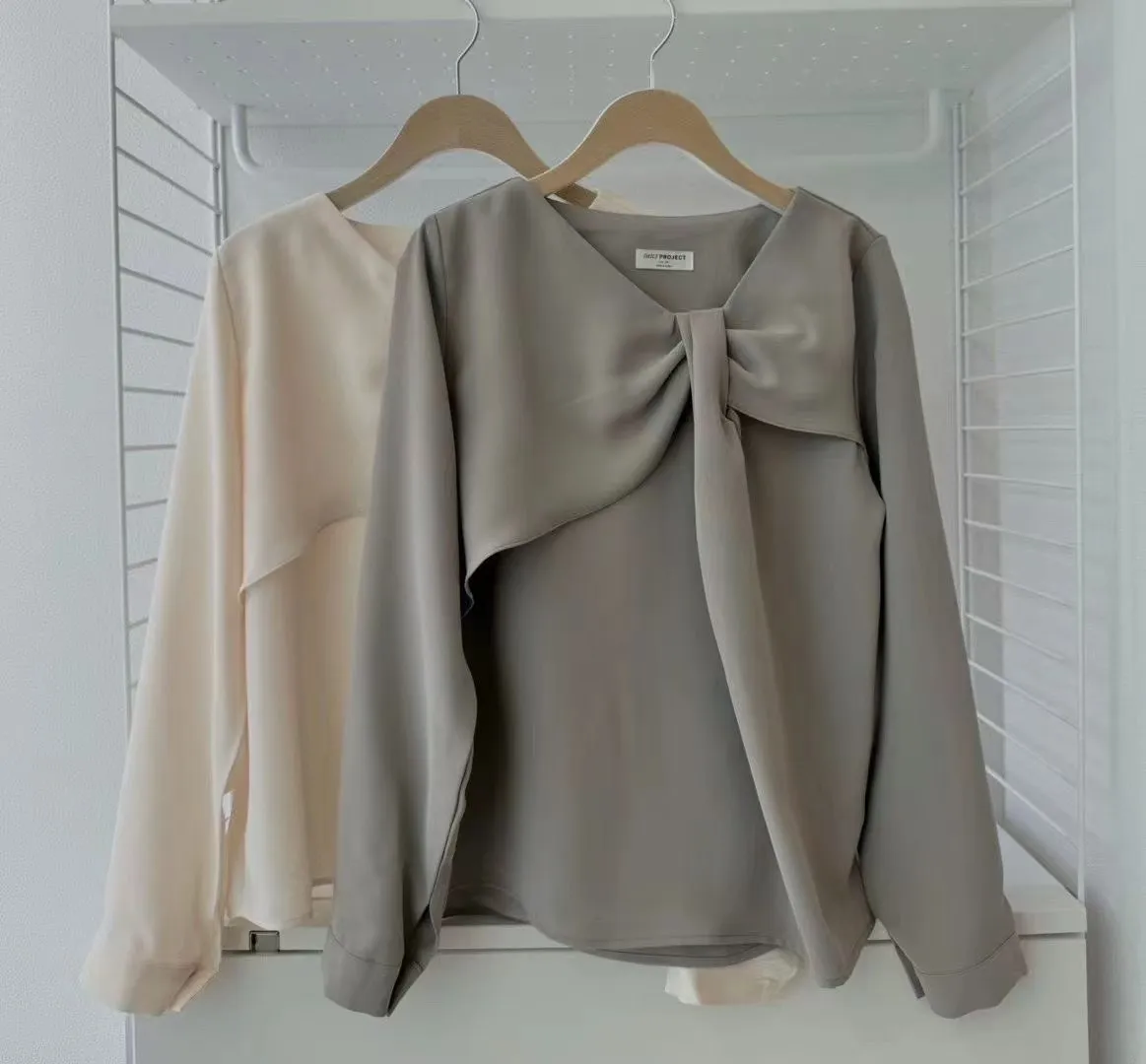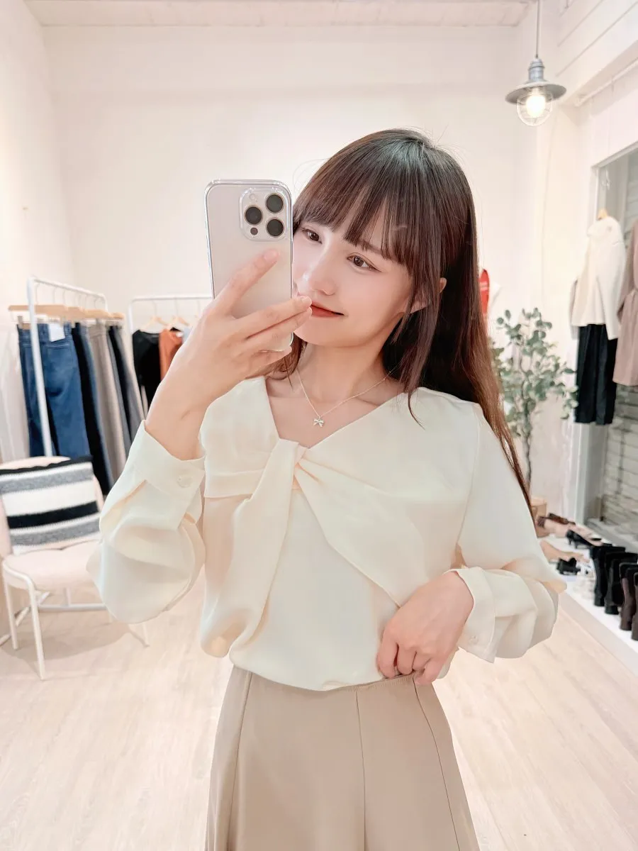 44.正韓 半襟蝴蝶結雪紡上衣 2色