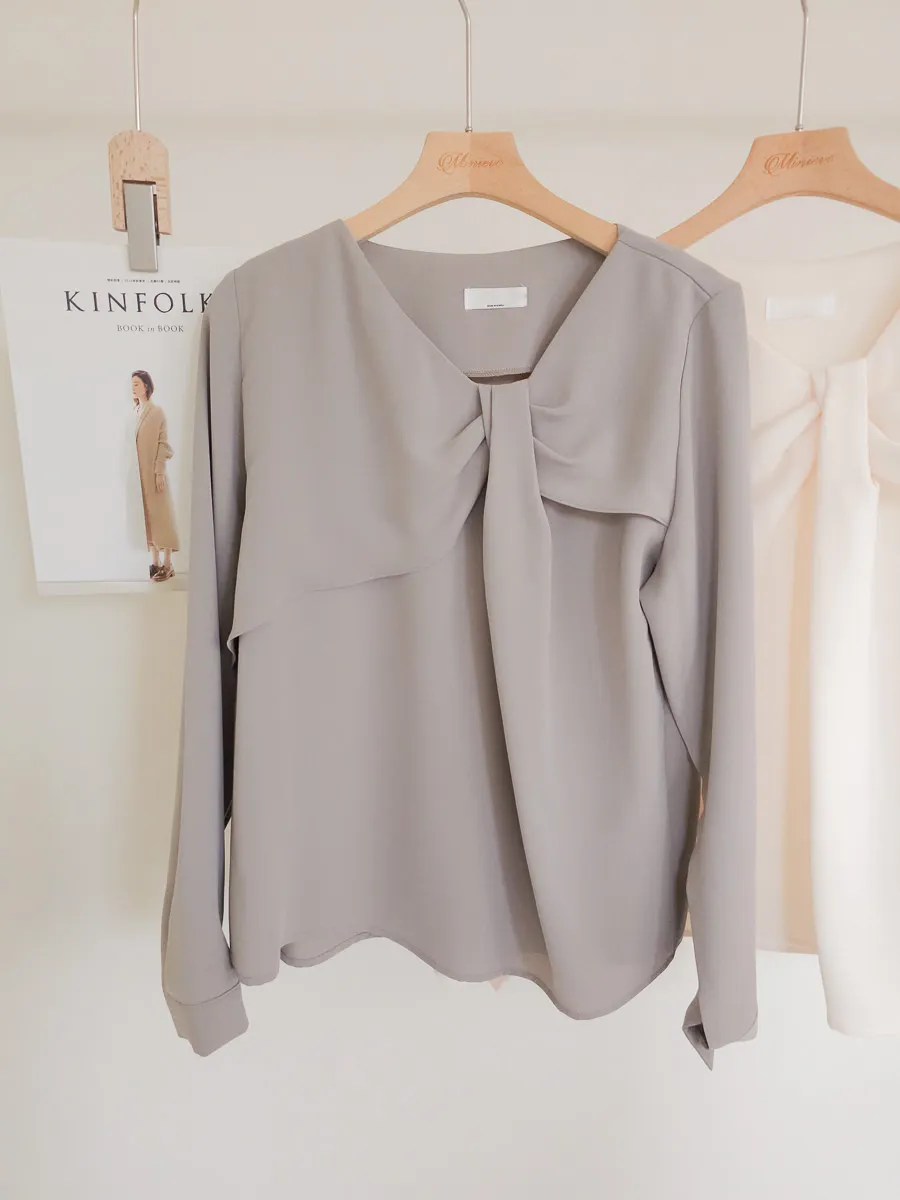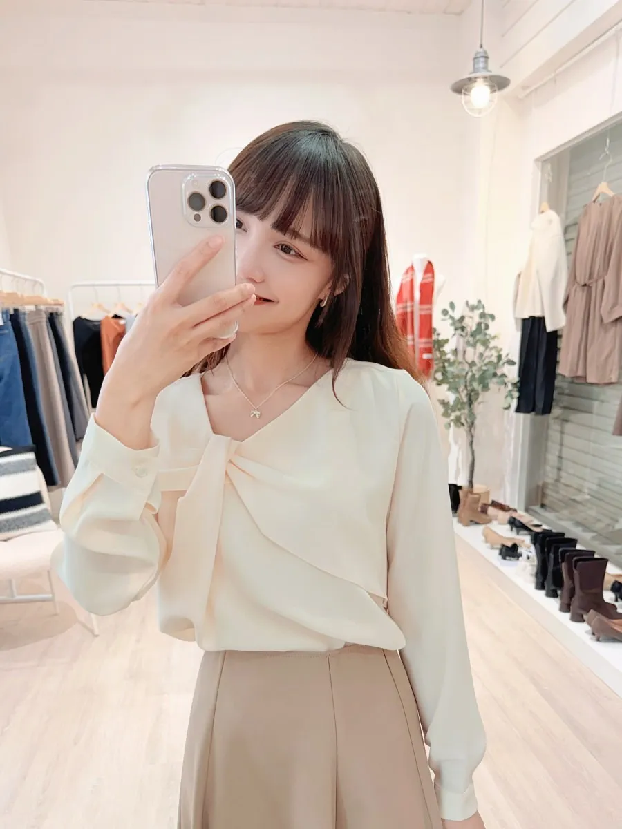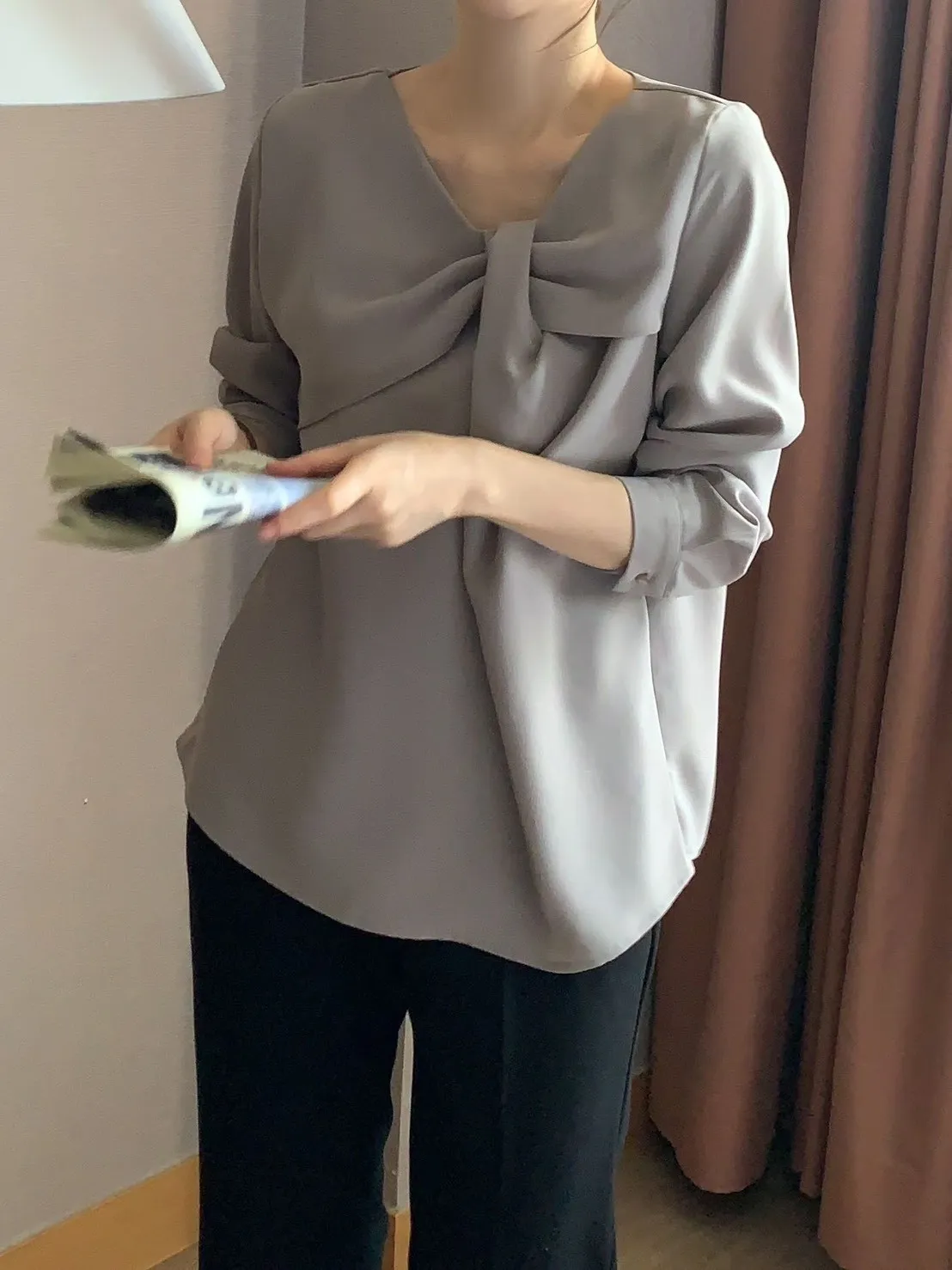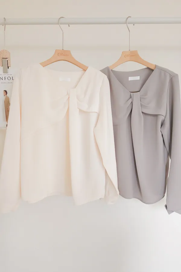 44.正韓 半襟蝴蝶結雪紡上衣 2色