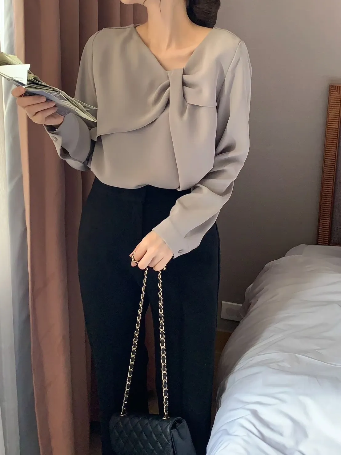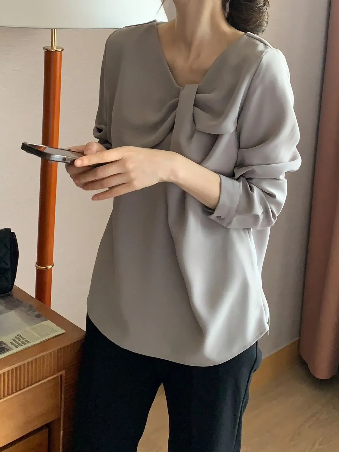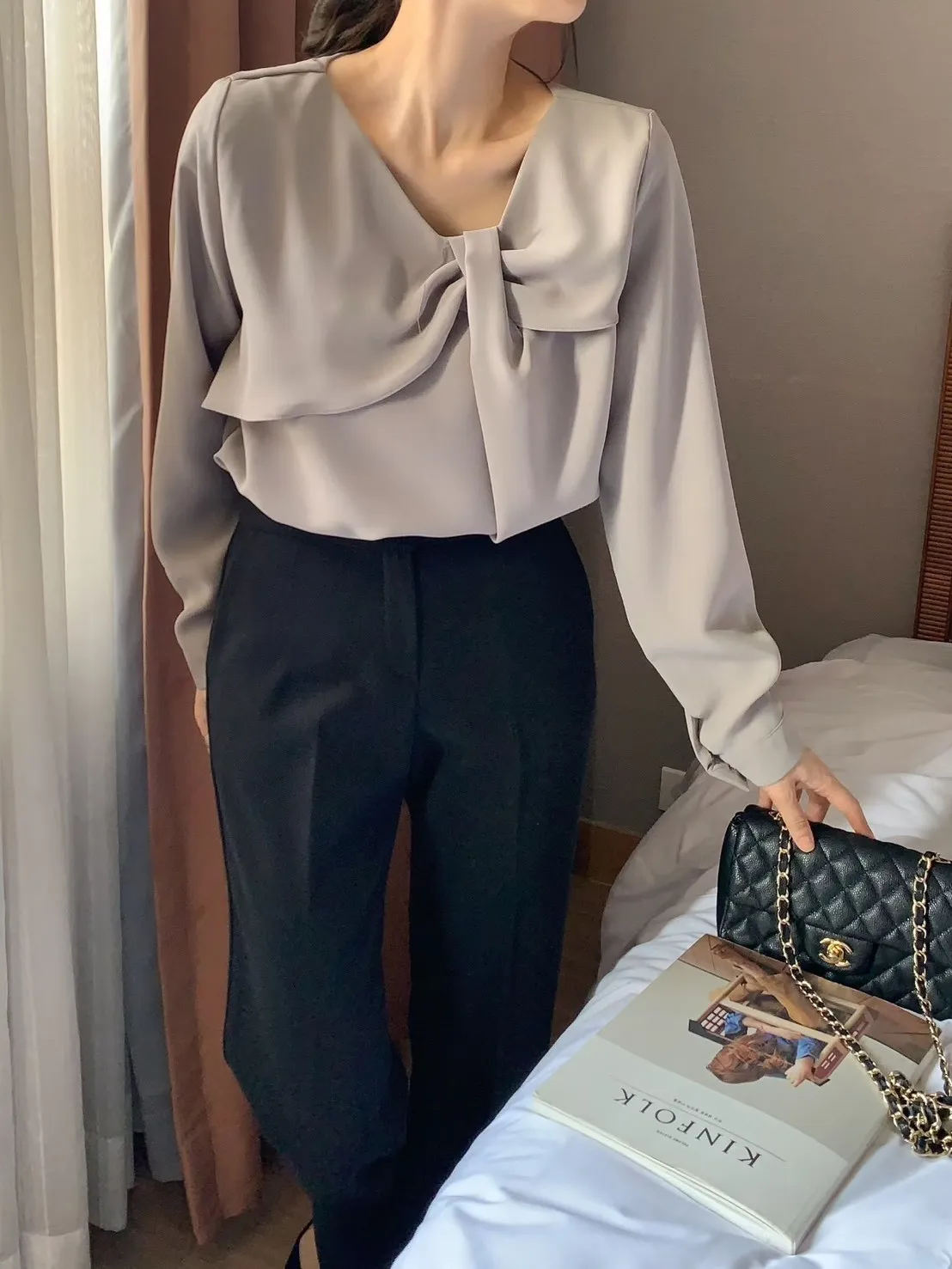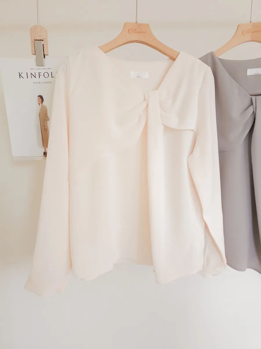 44.正韓 半襟蝴蝶結雪紡上衣 2色