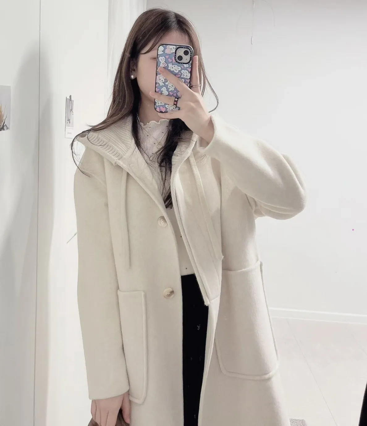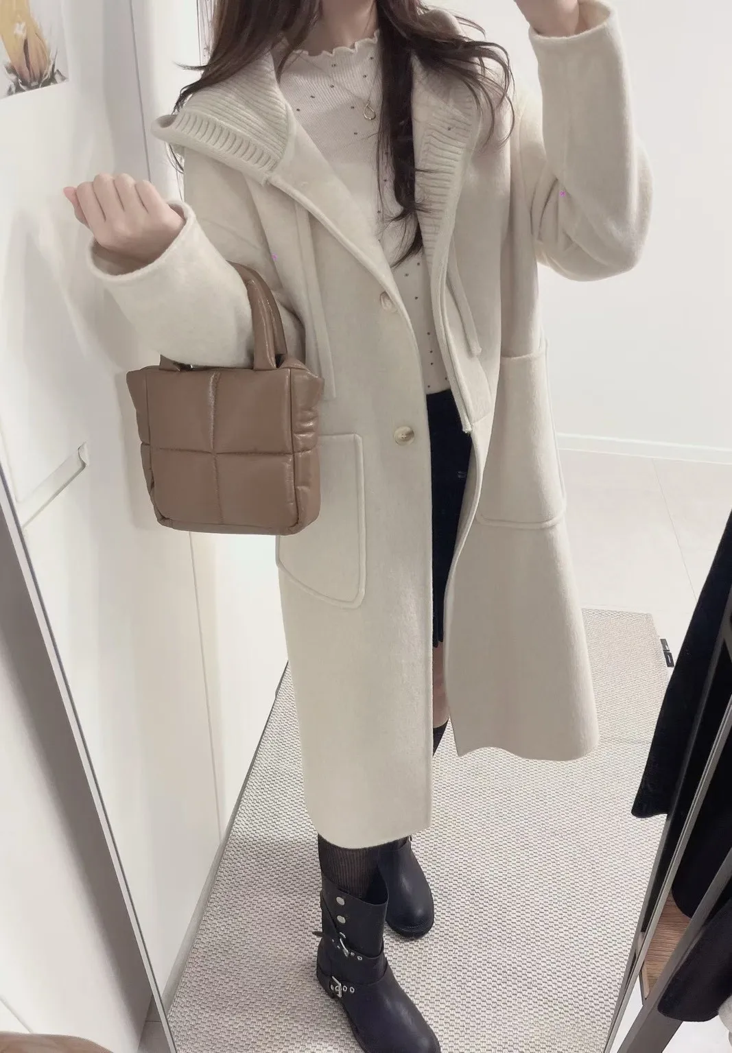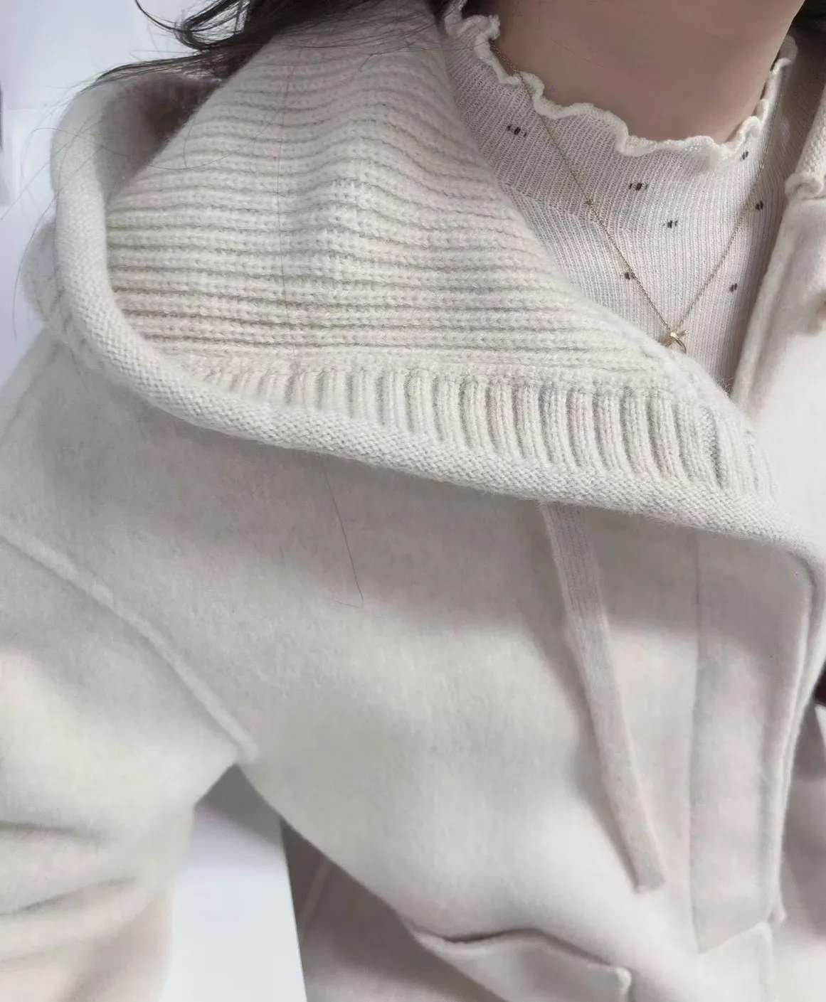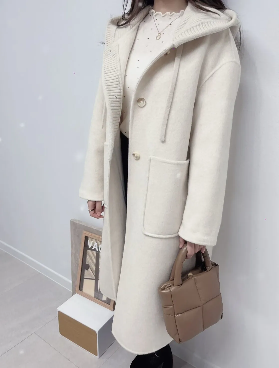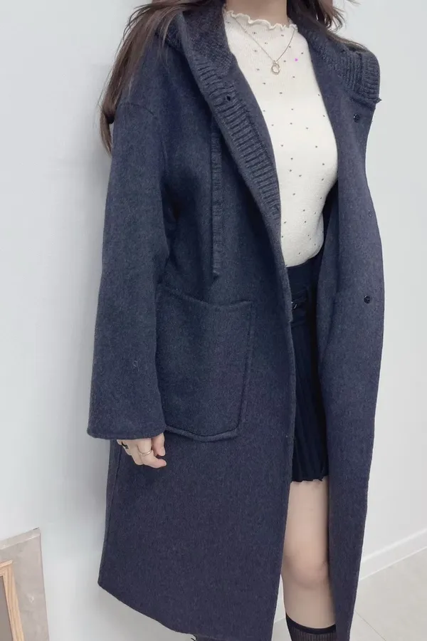47.正韓 針織連帽口袋50%長版羊毛外套 2色
