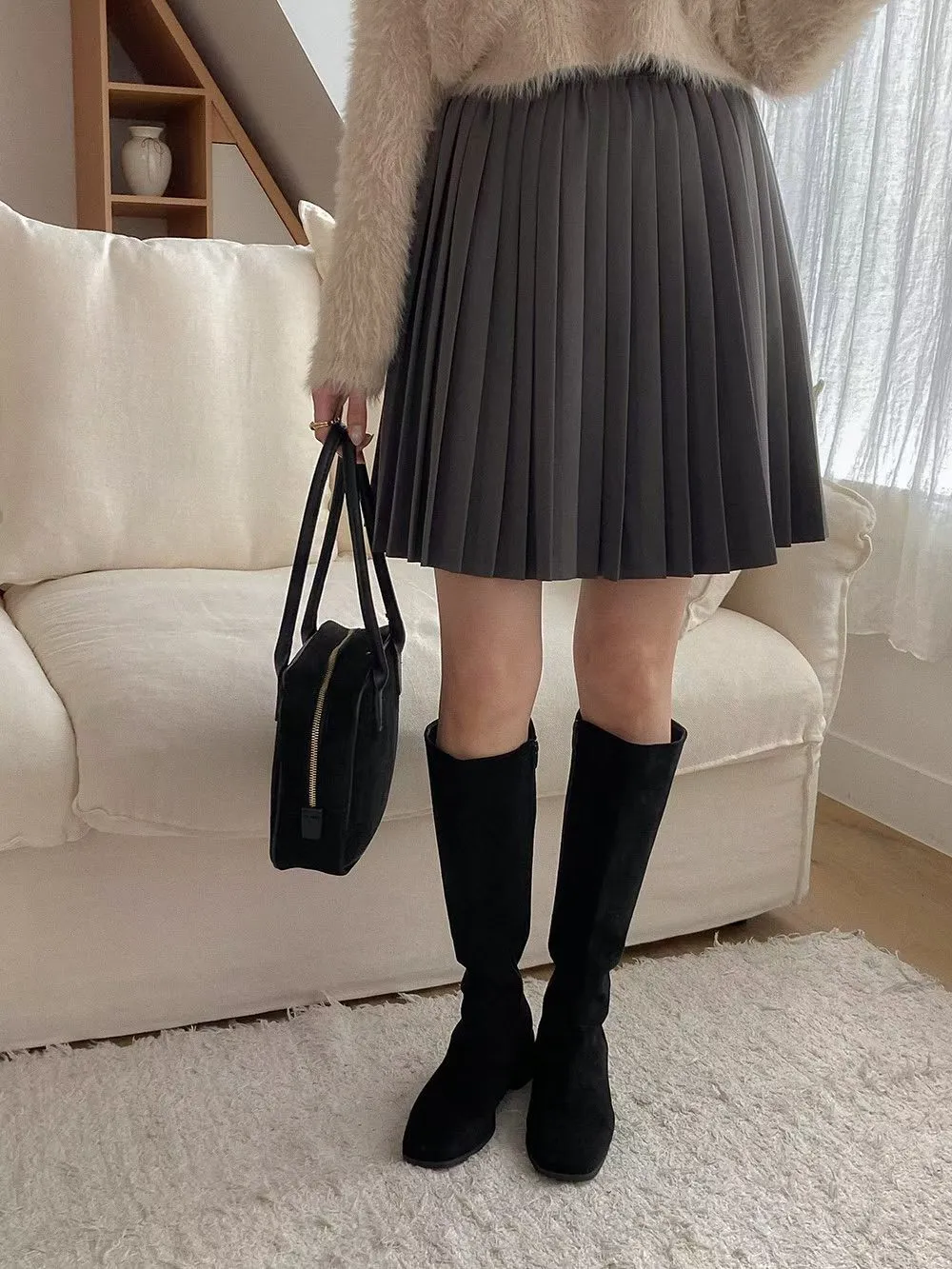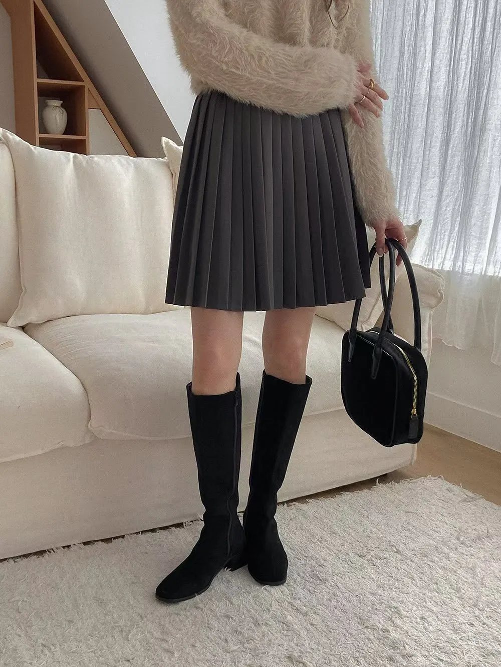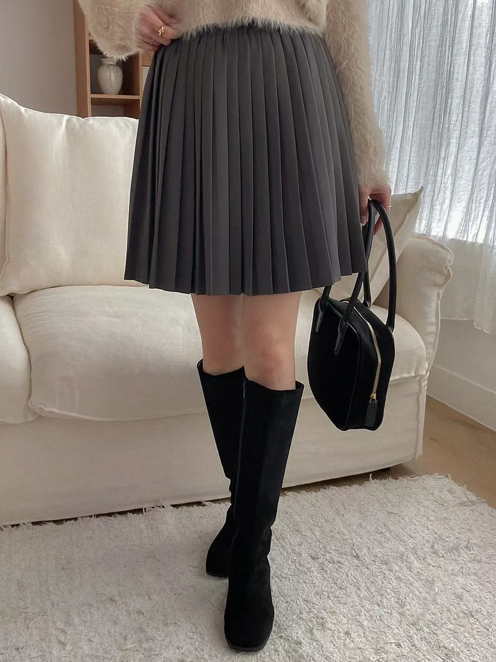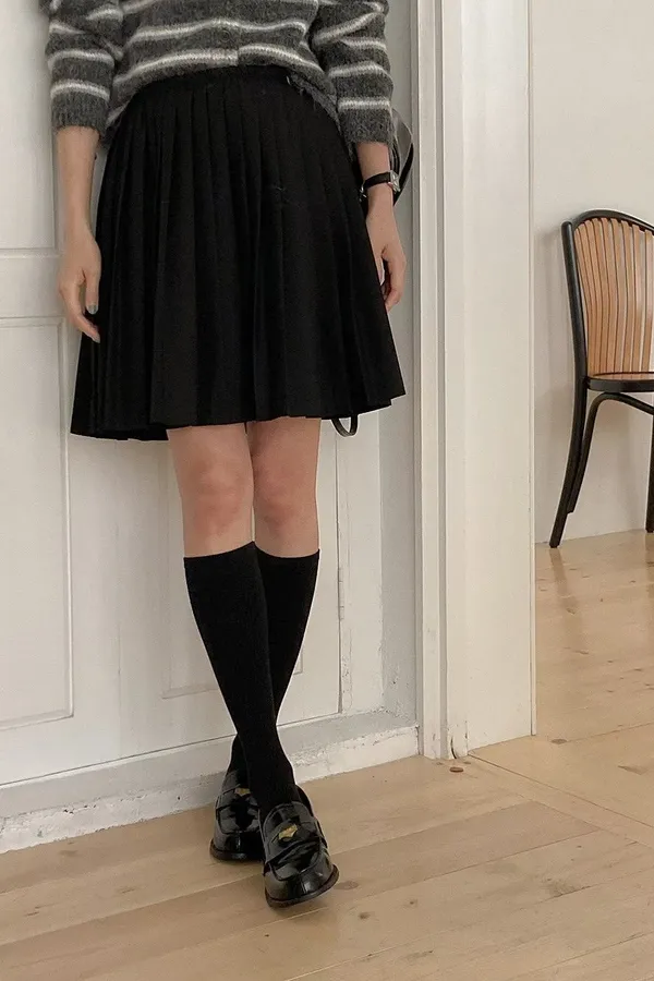 65.正韓 純色百摺膝上短裙 2色