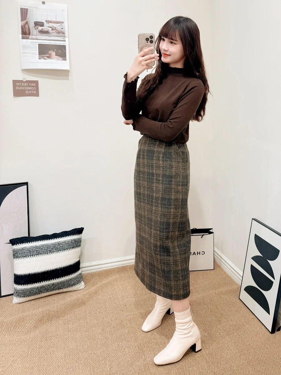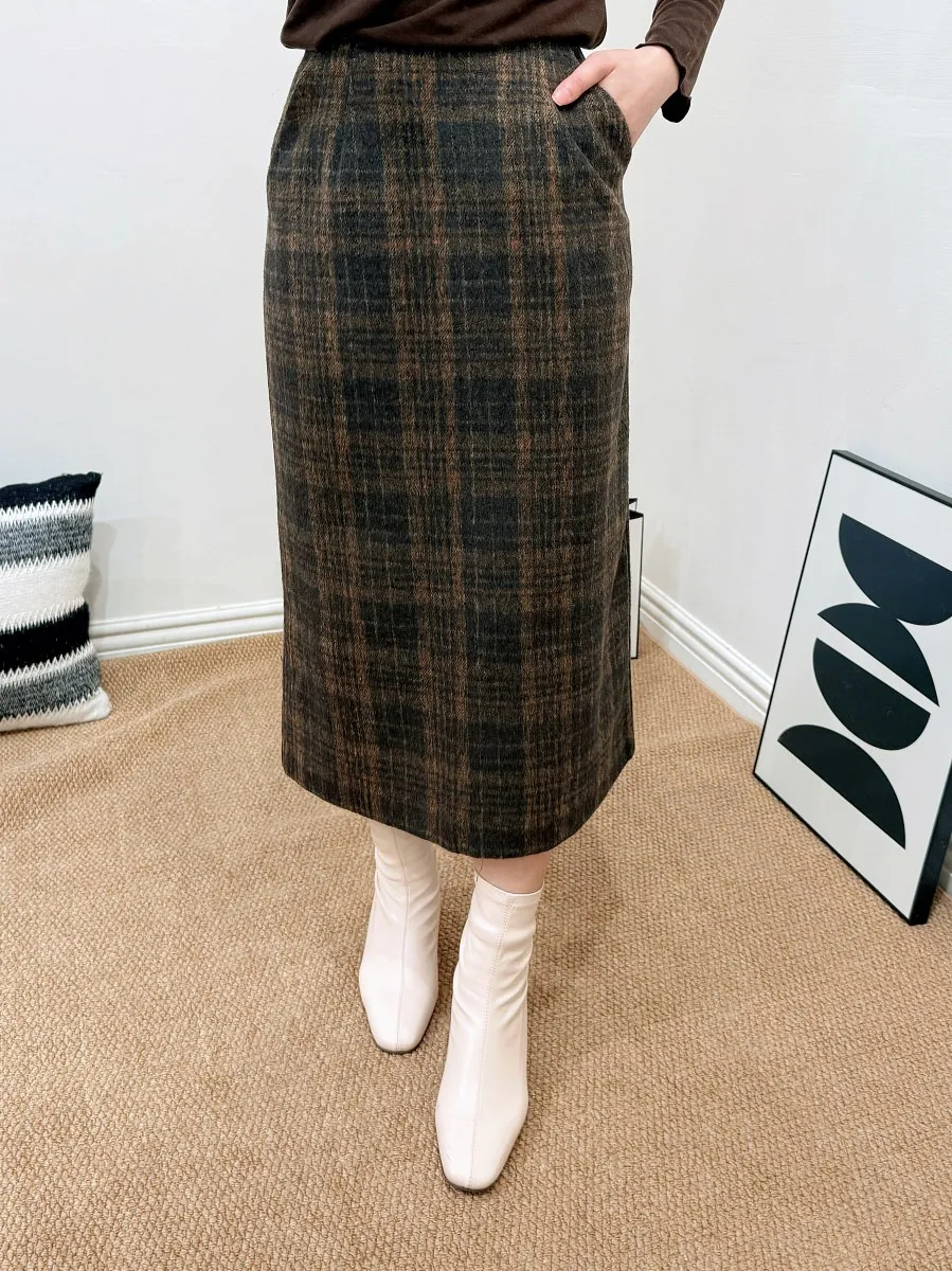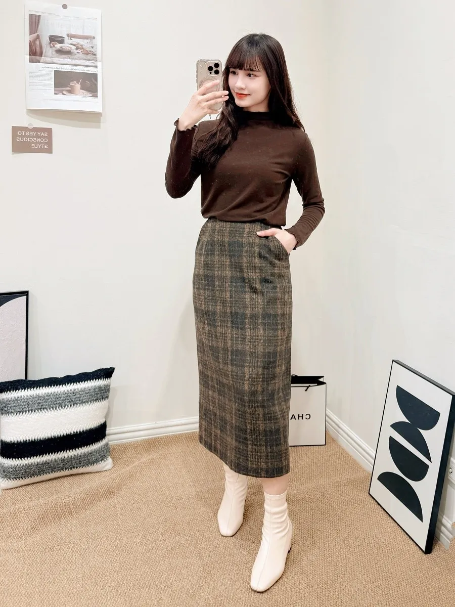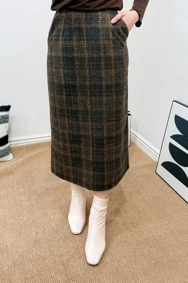 正韓 格紋20%羊毛中裙 2色
