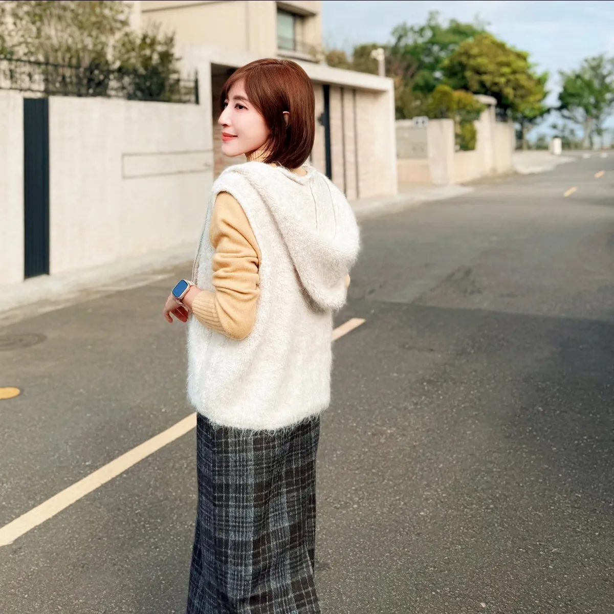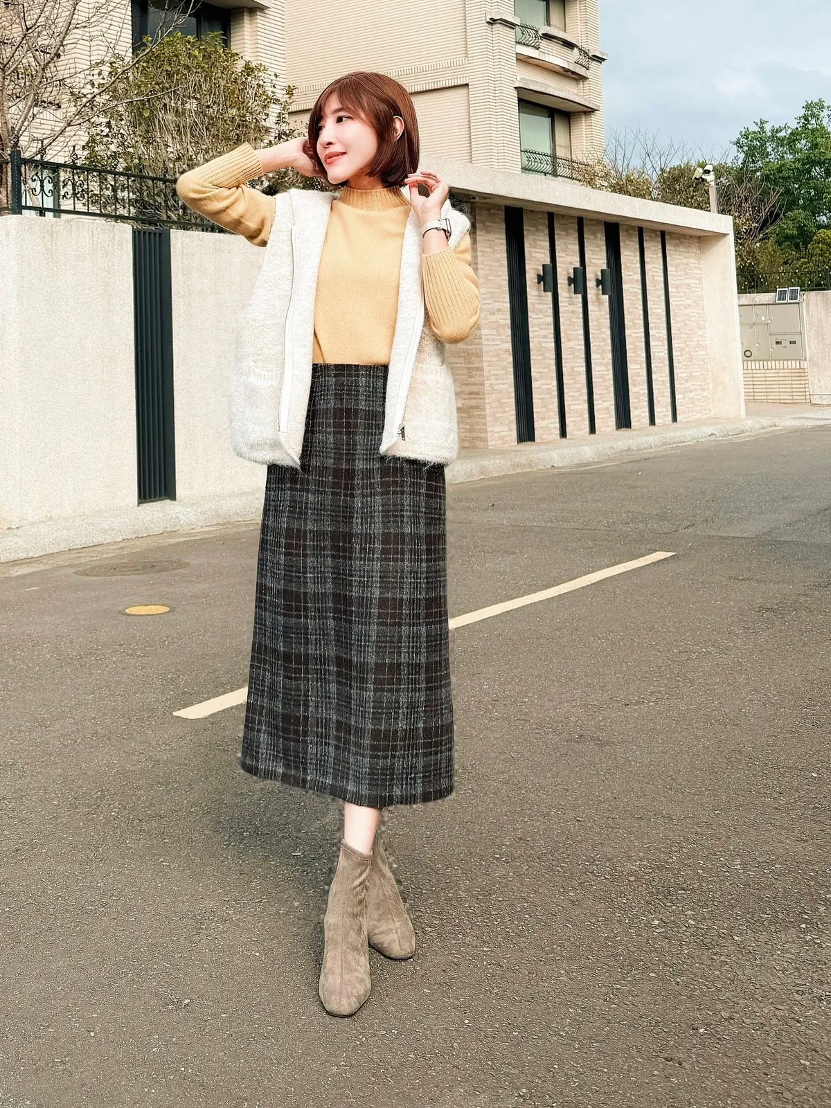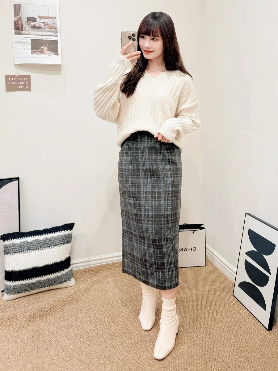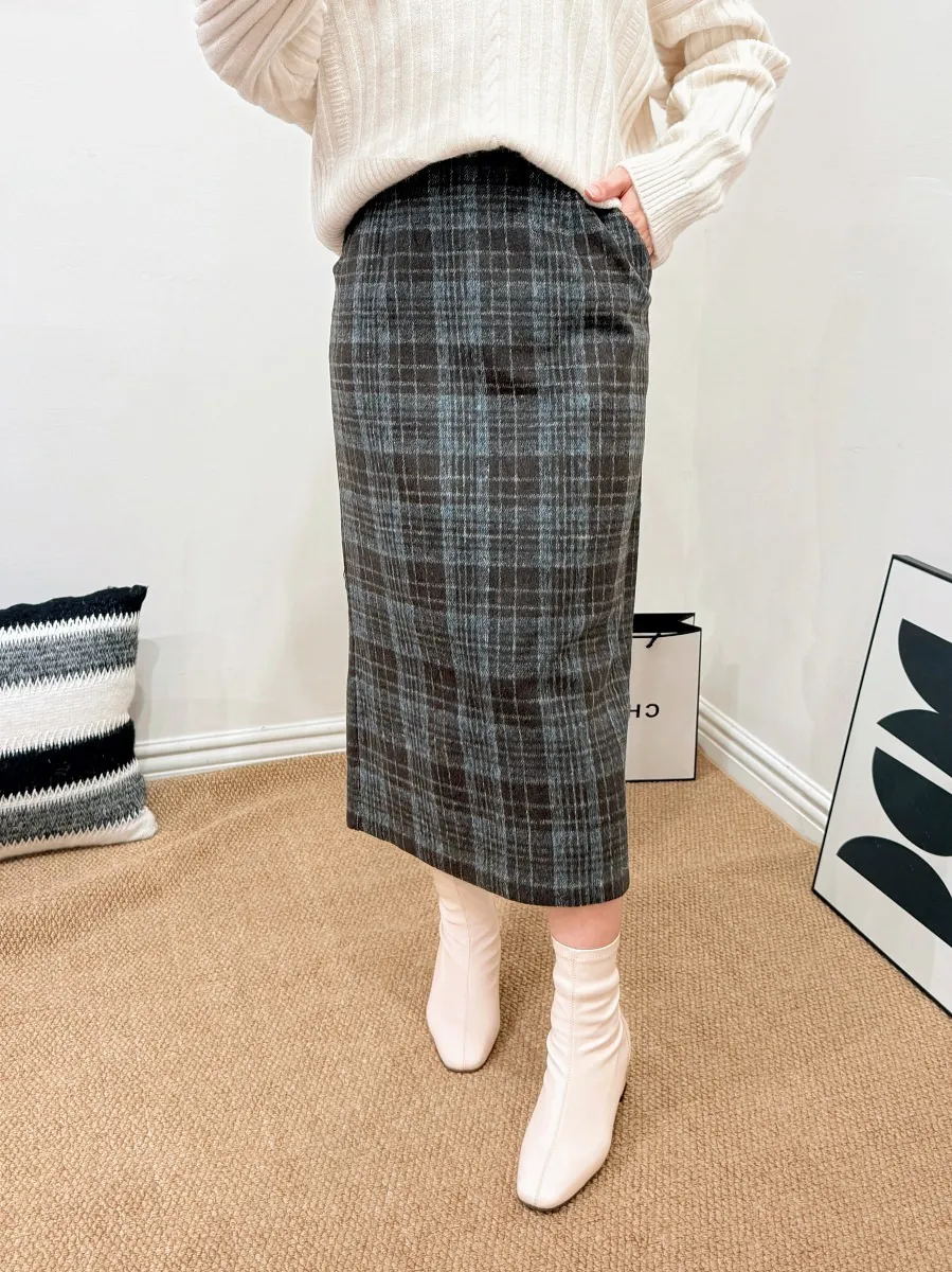 正韓 格紋20%羊毛中裙 2色