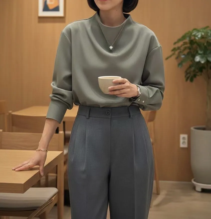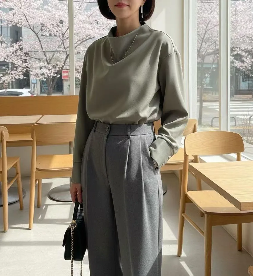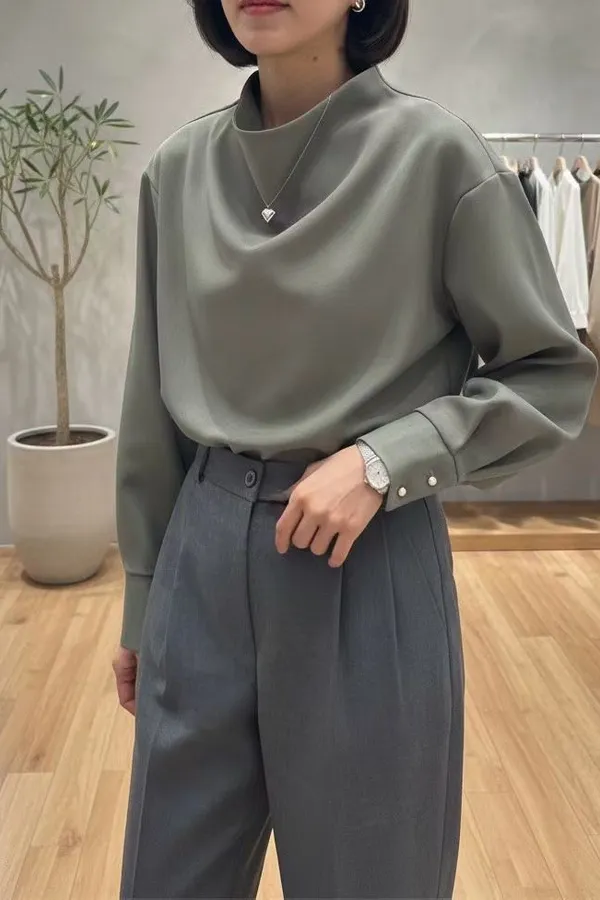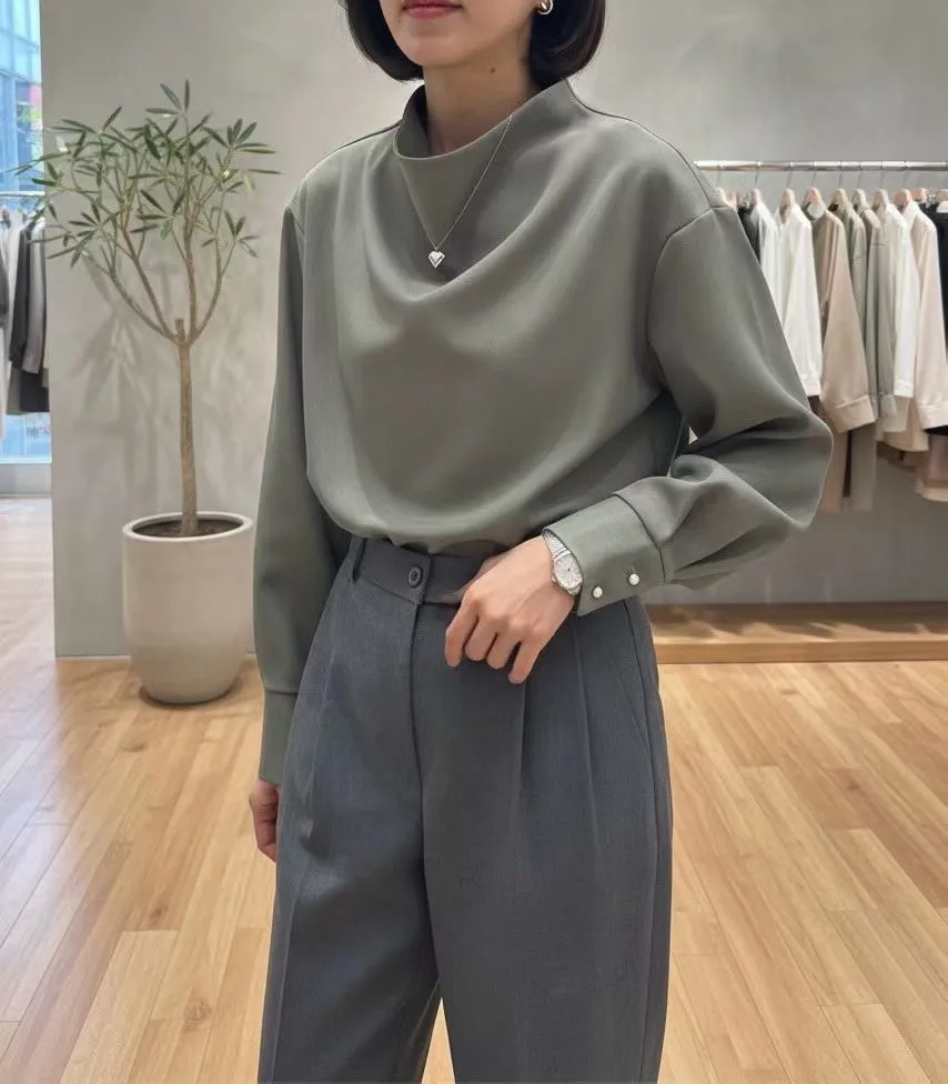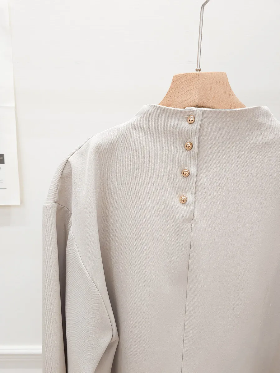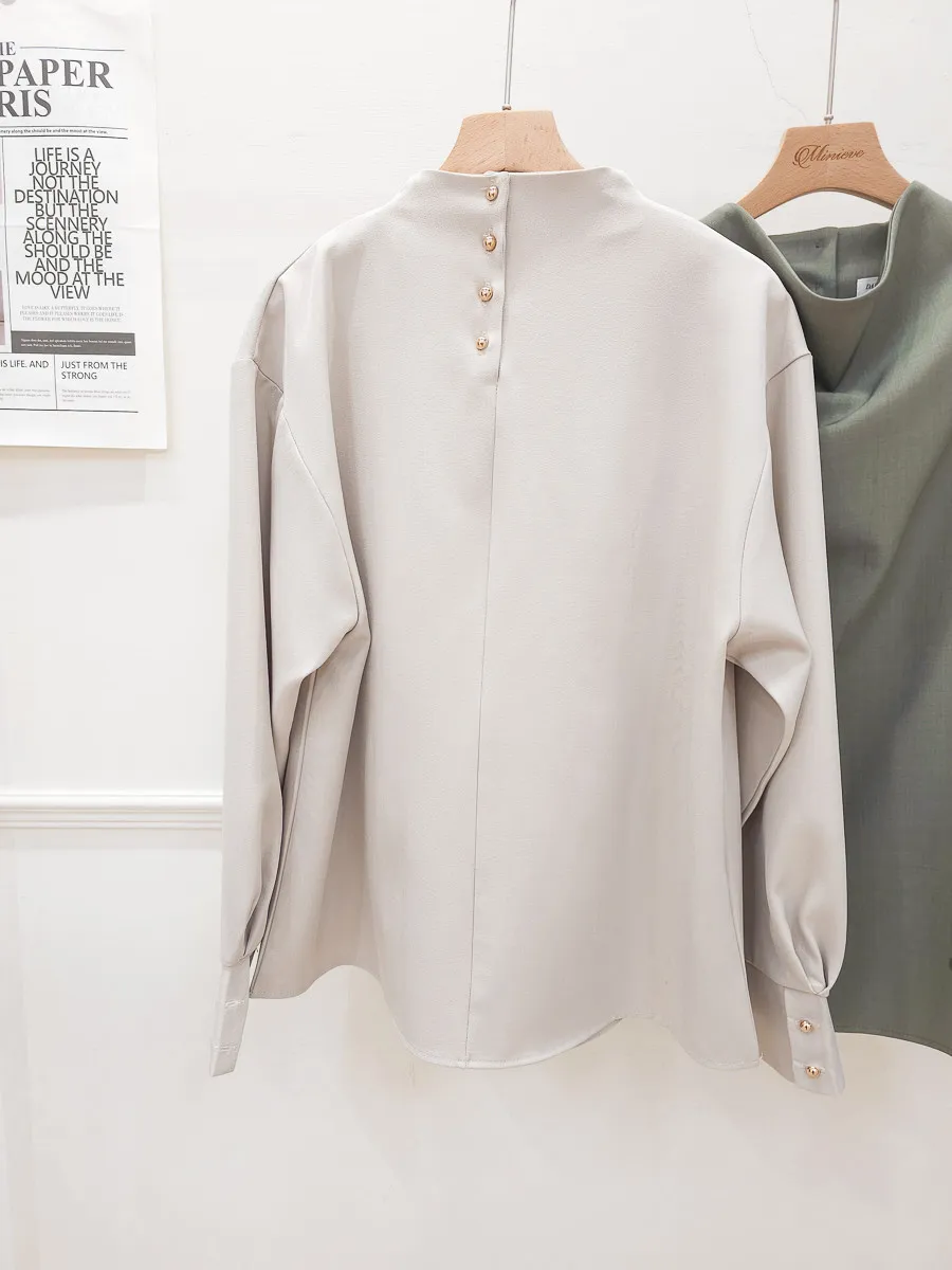 72.正韓 小立領後金釦純色上衣 2色