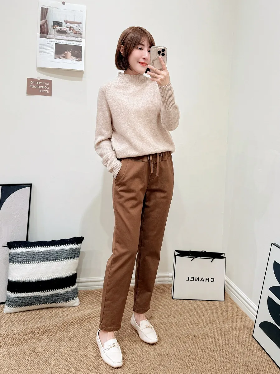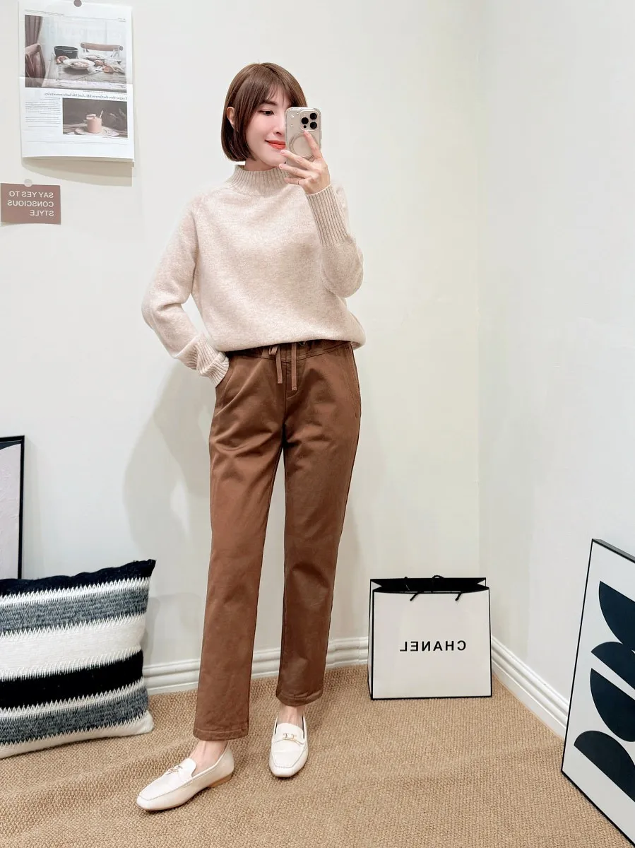 正韓 內磨毛綁帶小腳休閒褲 3色