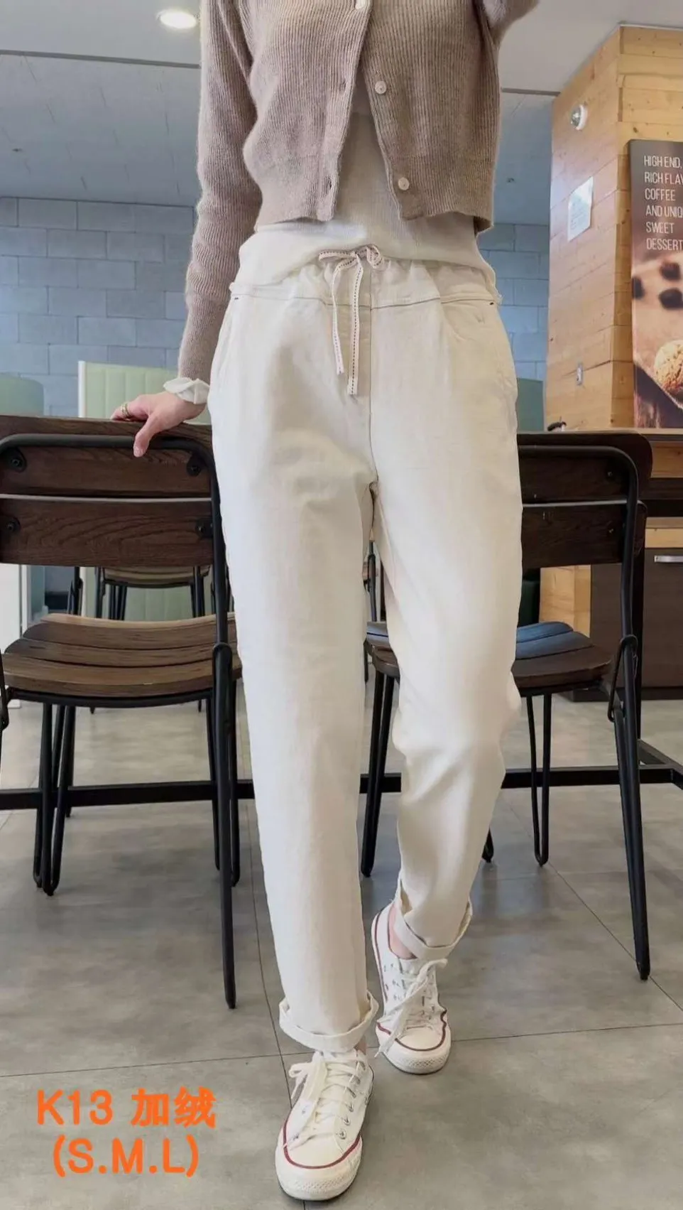 74.正韓 內磨毛綁帶小腳休閒褲 3色