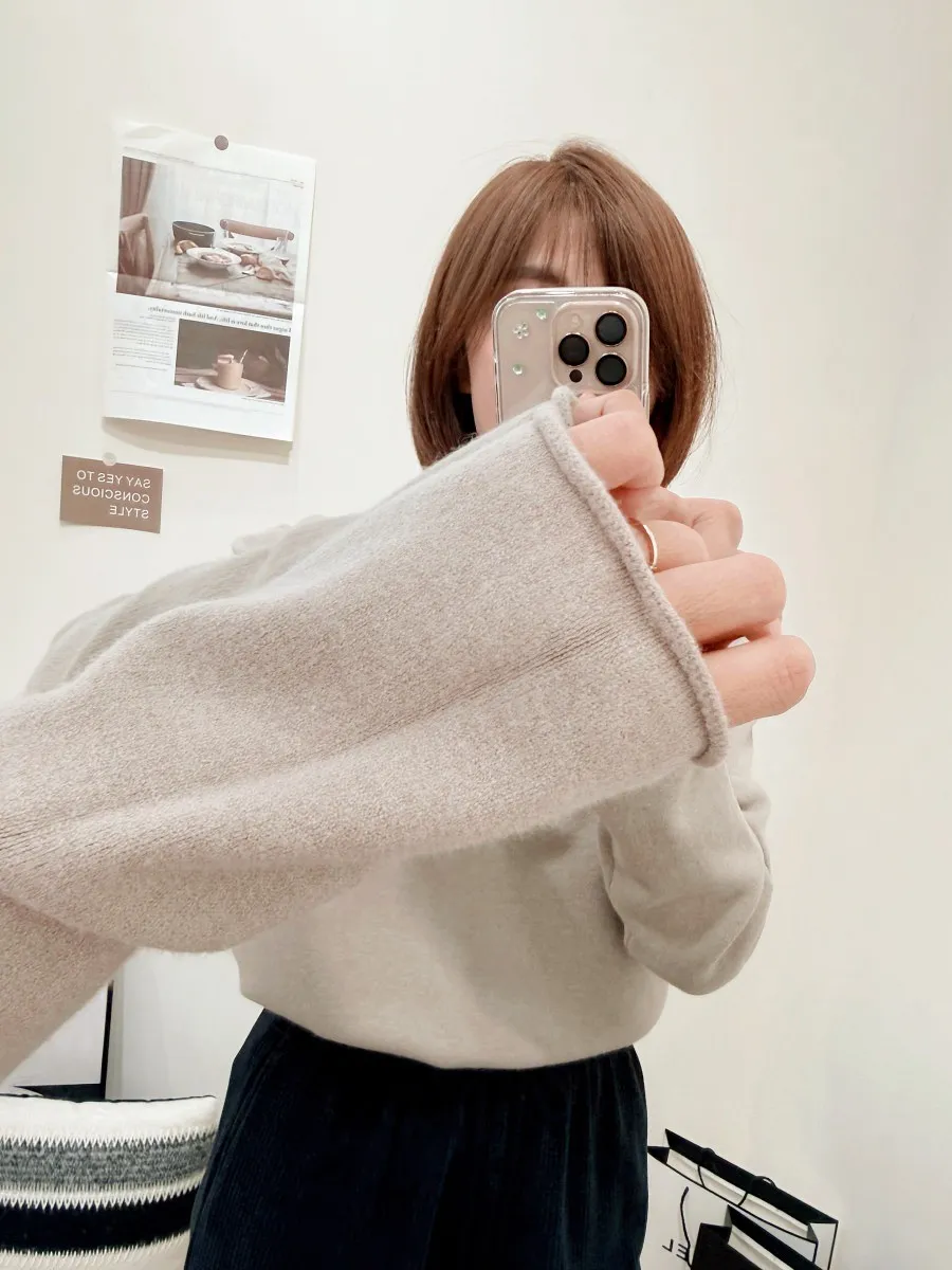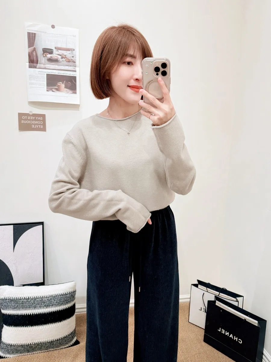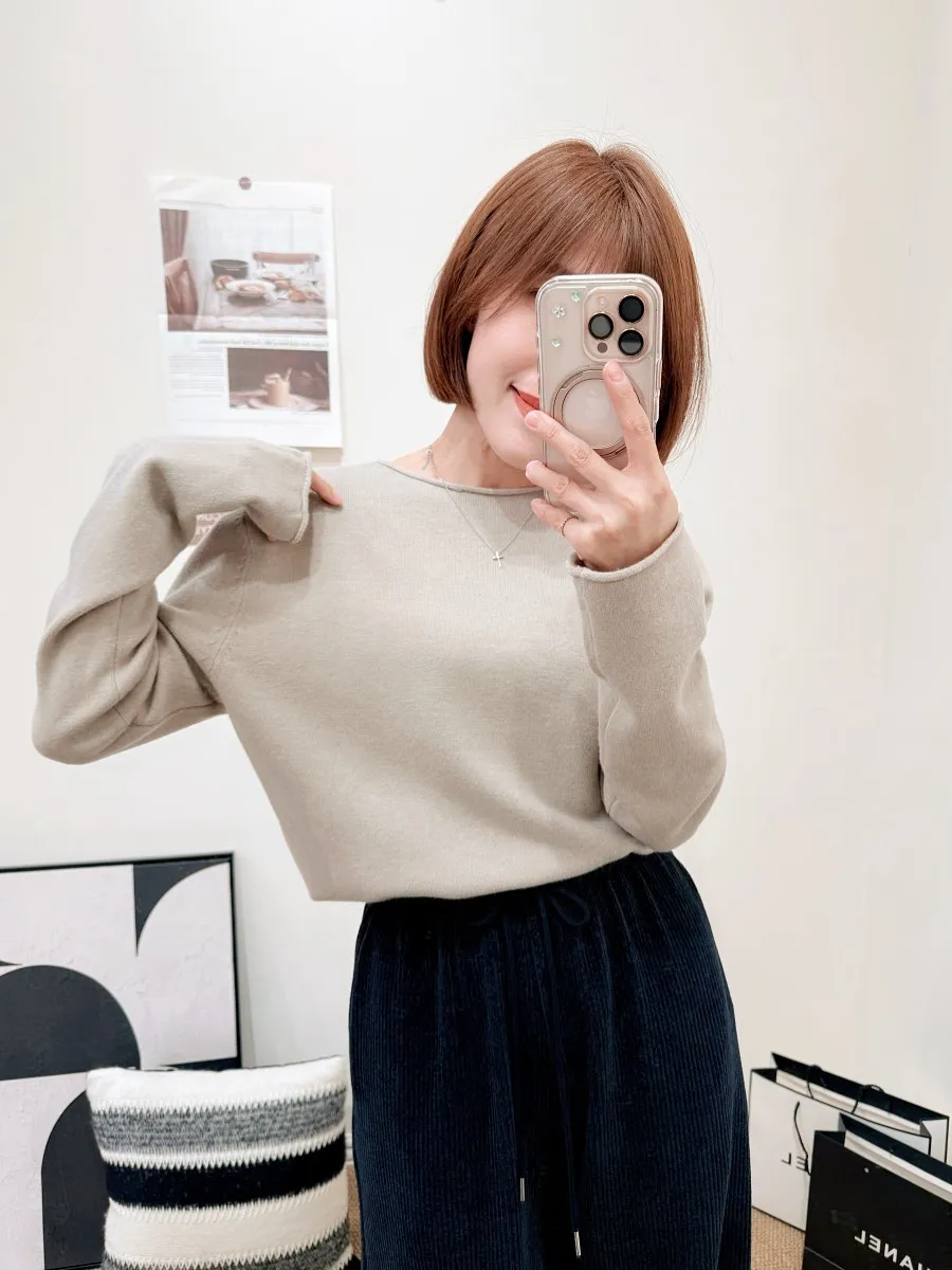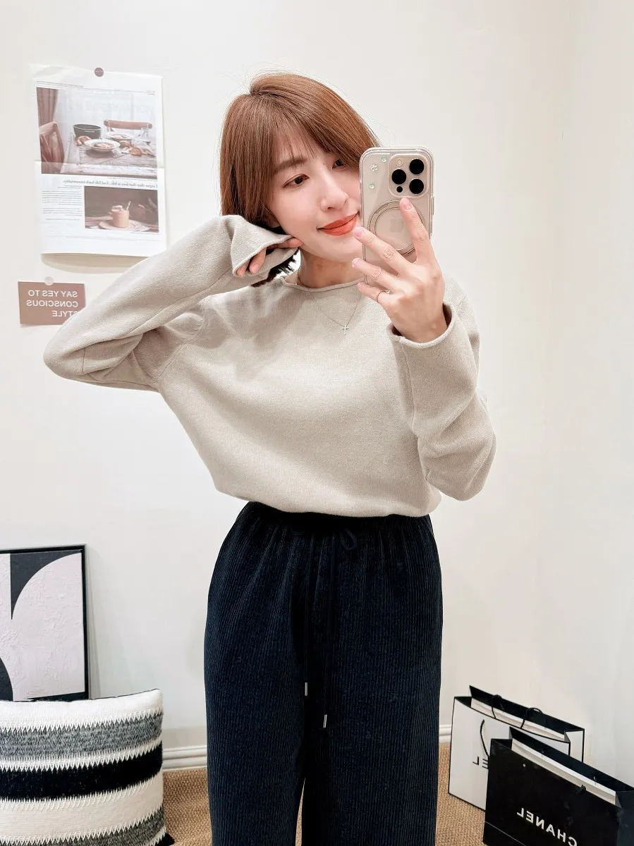 正韓 捲邊圓領羊毛上衣 2色