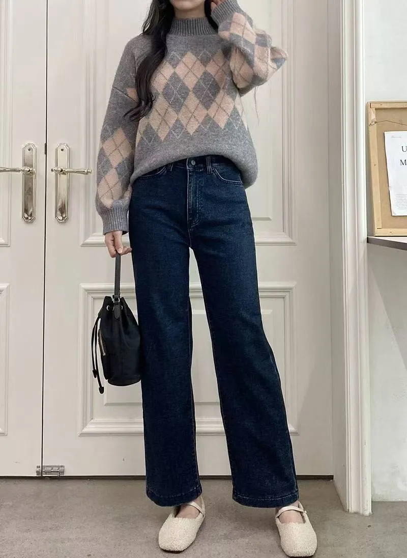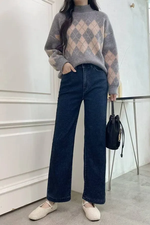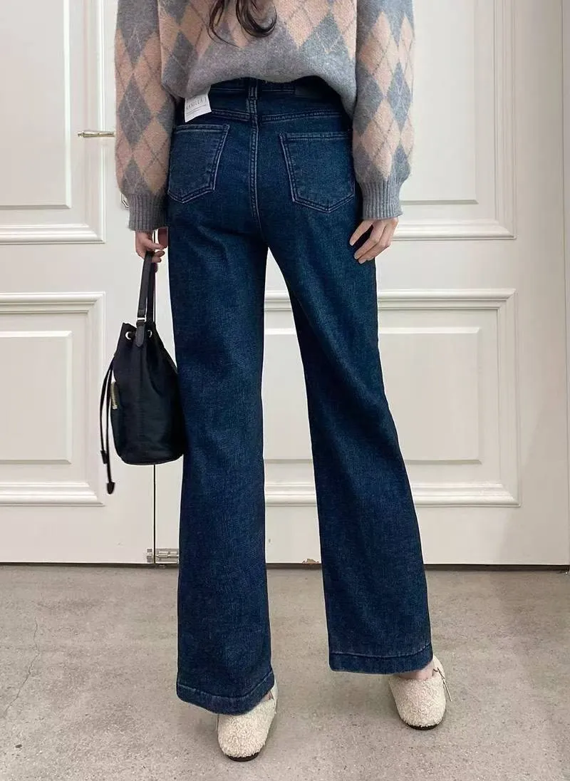 05.正韓 磨毛寬直筒牛仔褲 2色