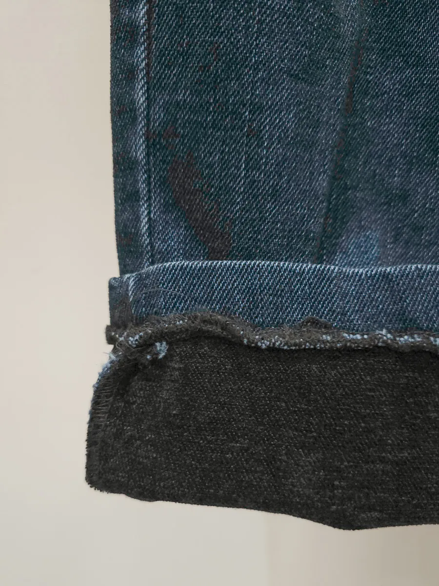 磨毛內層/單釦+拉鍊+全腰彈性鬆緊/3-5cm彈性/磨毛軟牛仔棉