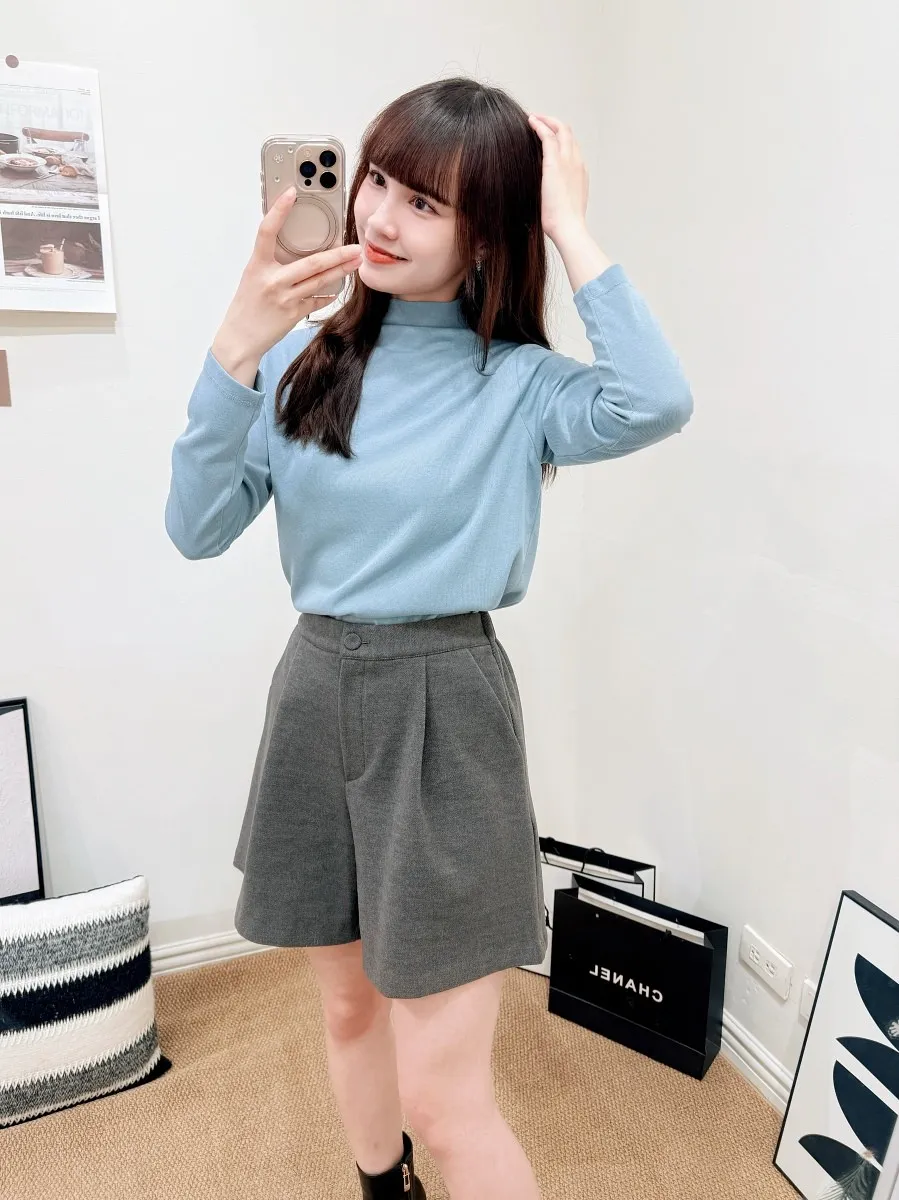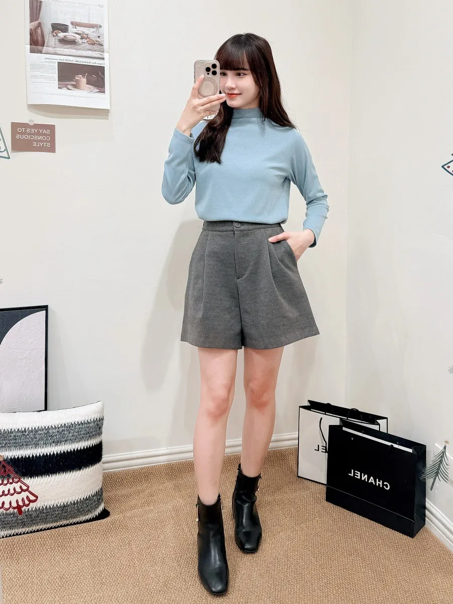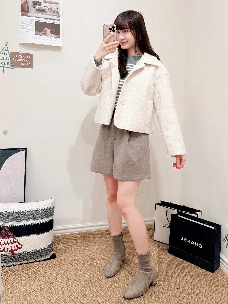 正韓 寬摺毛呢西裝短褲 2色