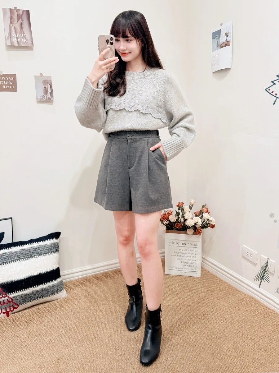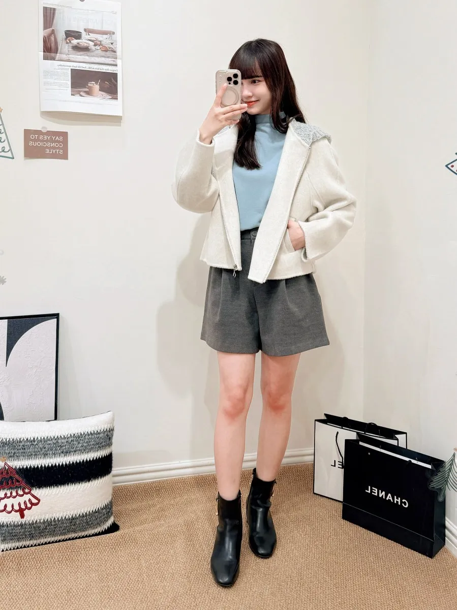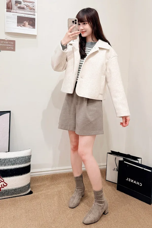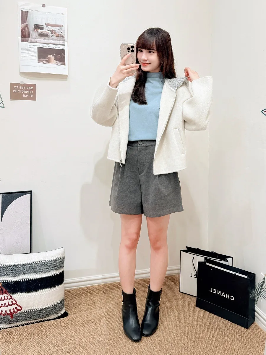 正韓 寬摺毛呢西裝短褲 2色