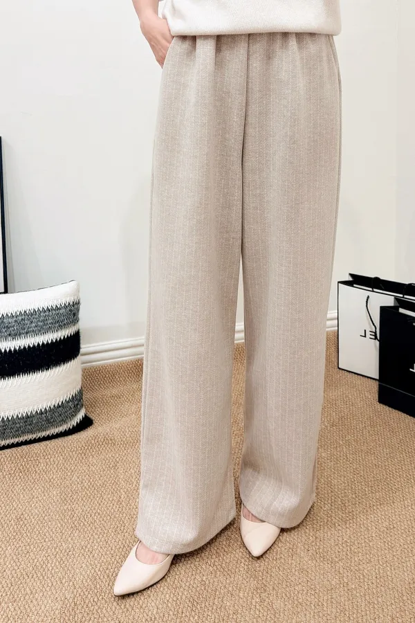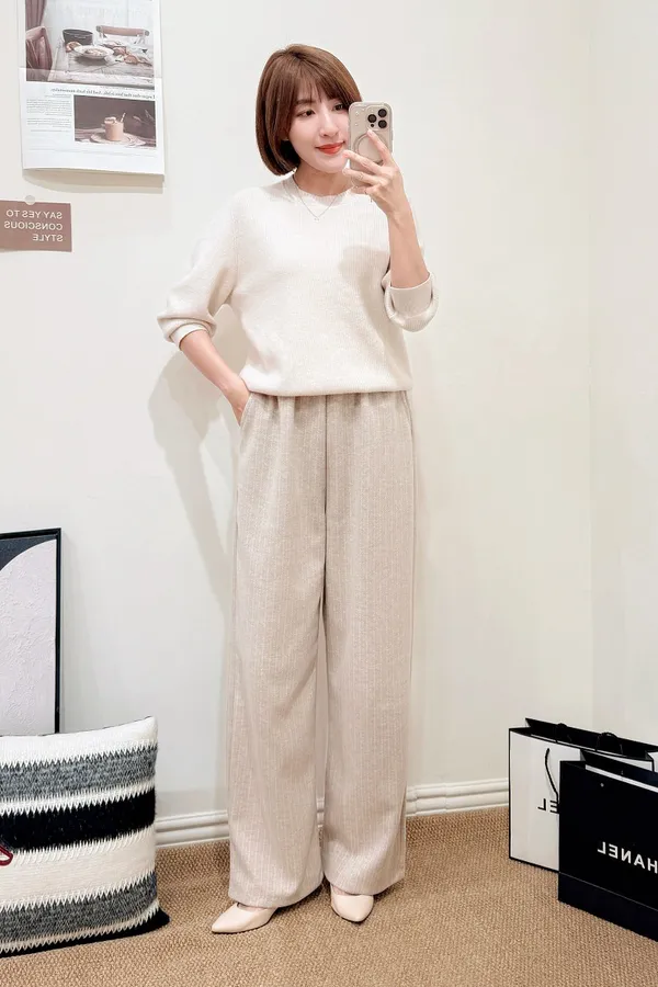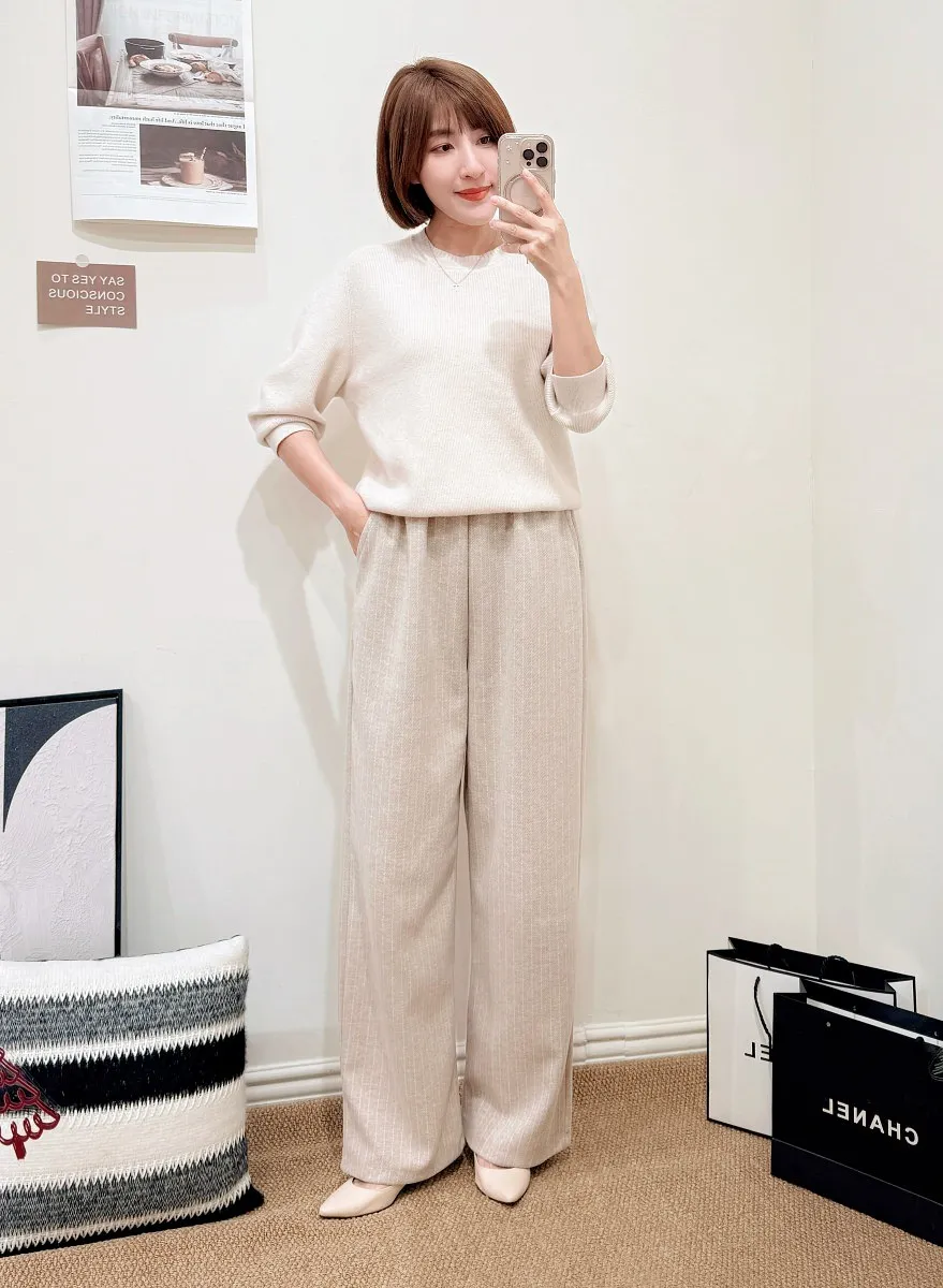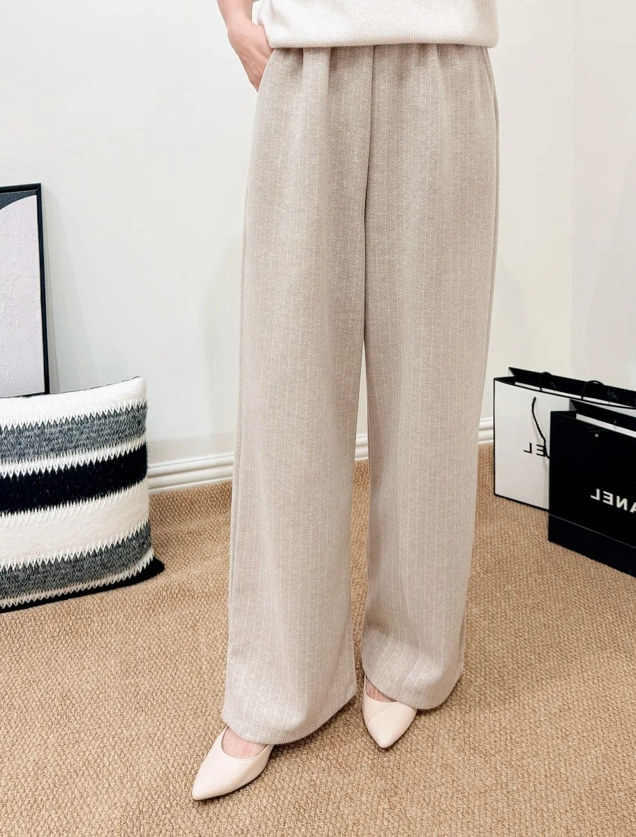 正韓 細直紋毛呢寬褲 2色