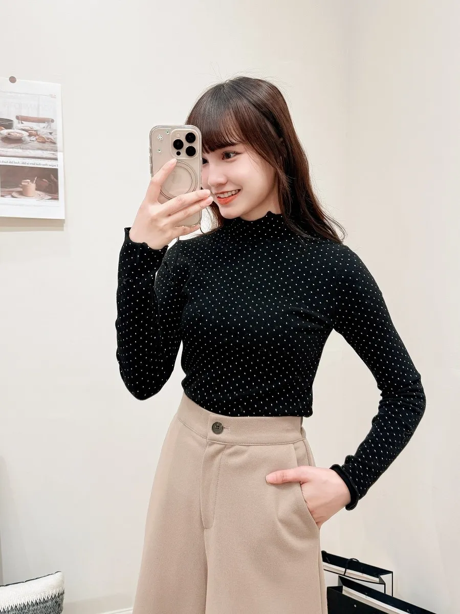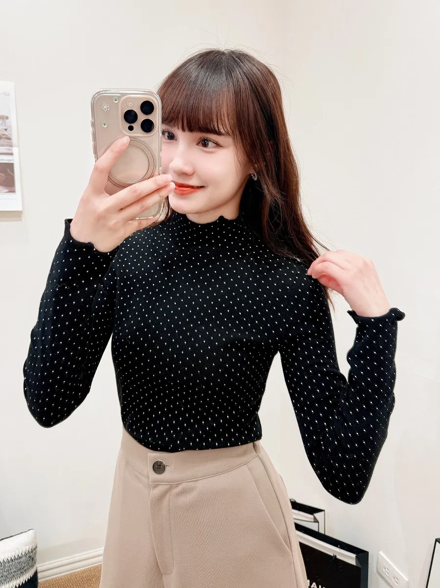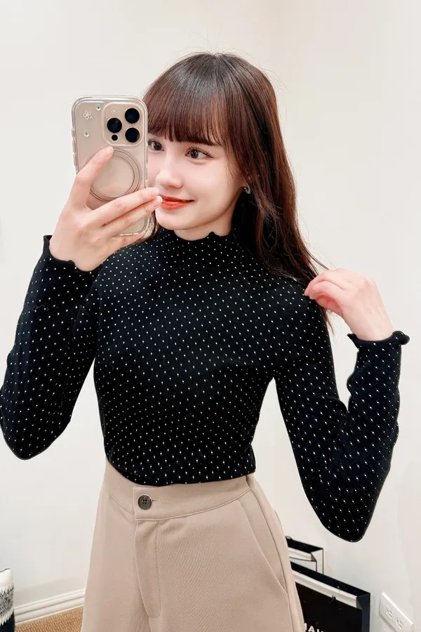 正韓 木耳捲邊點點打底上衣 3色