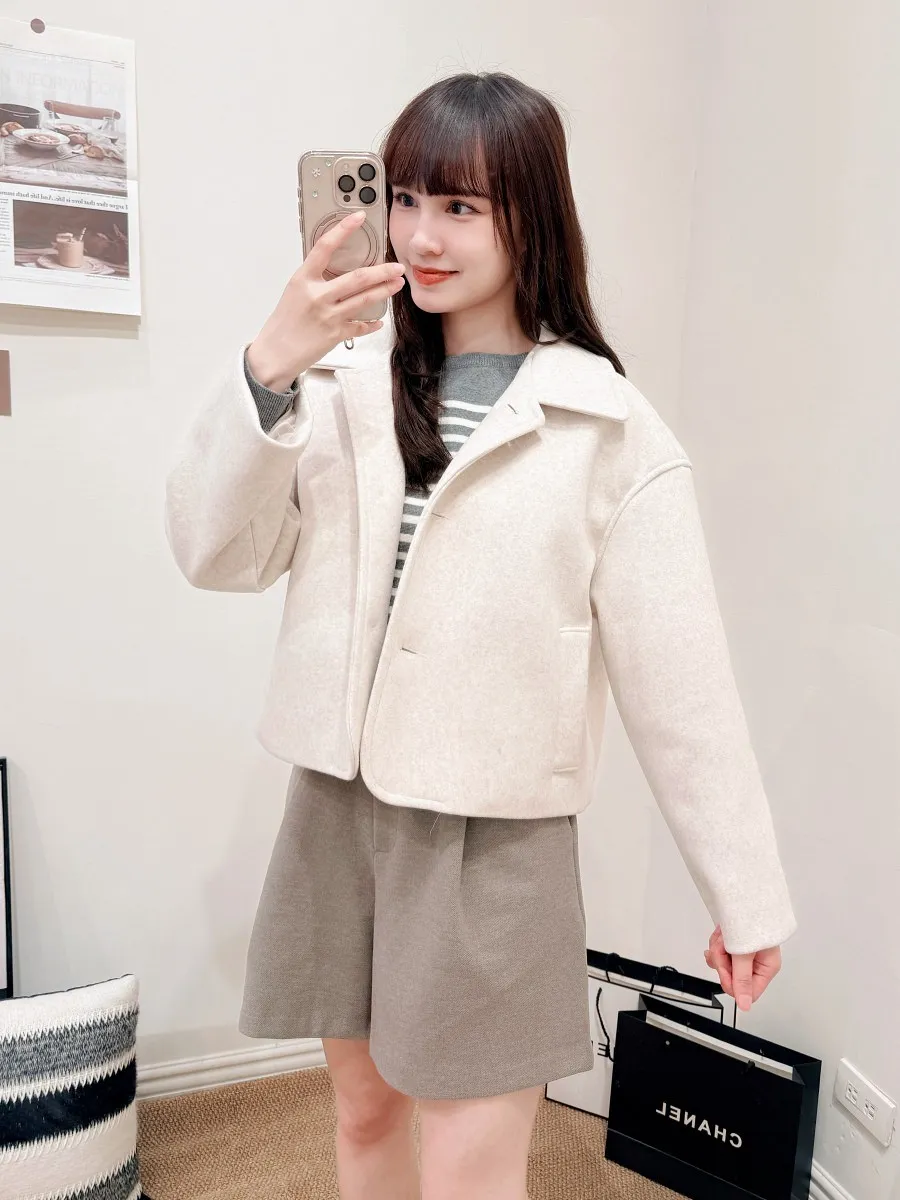 正韓 經典翻領排釦毛呢外套 2色