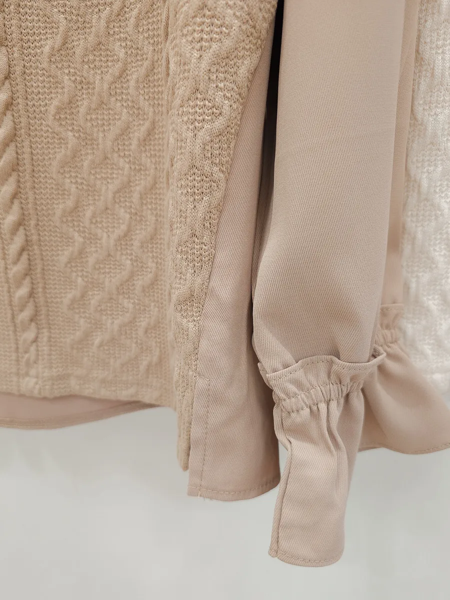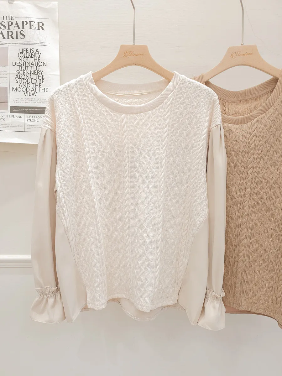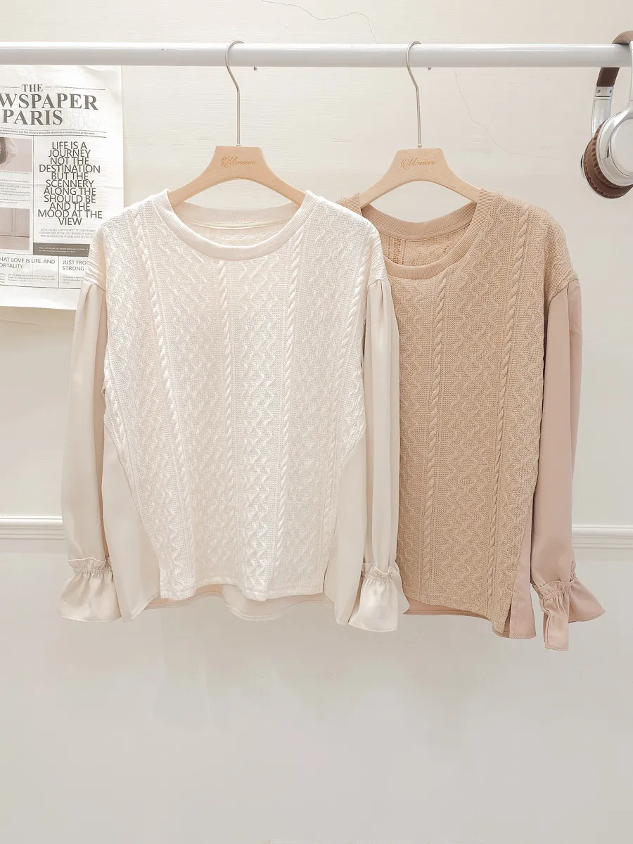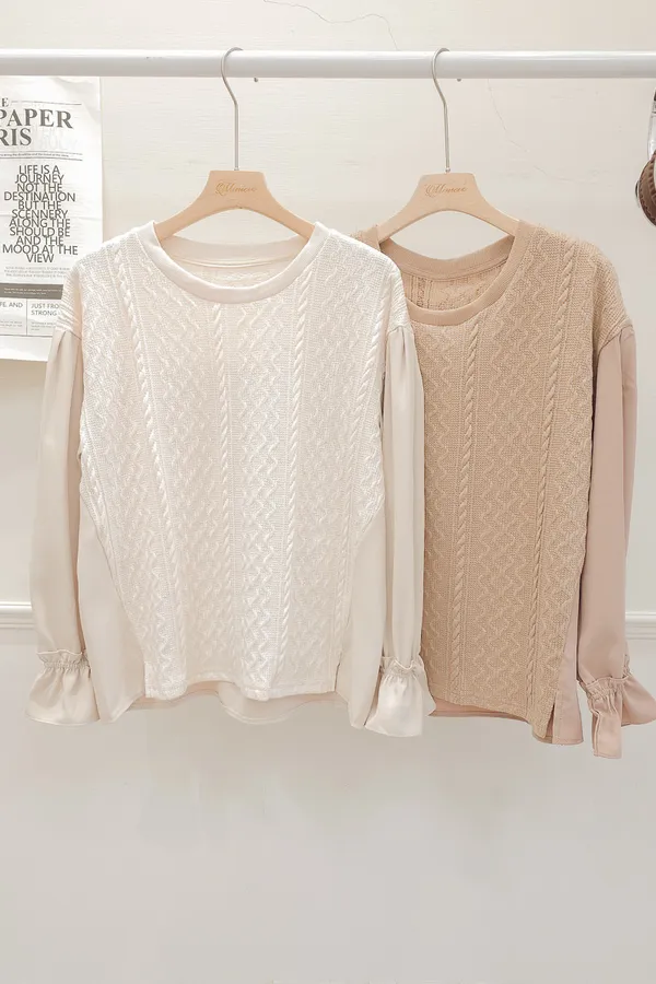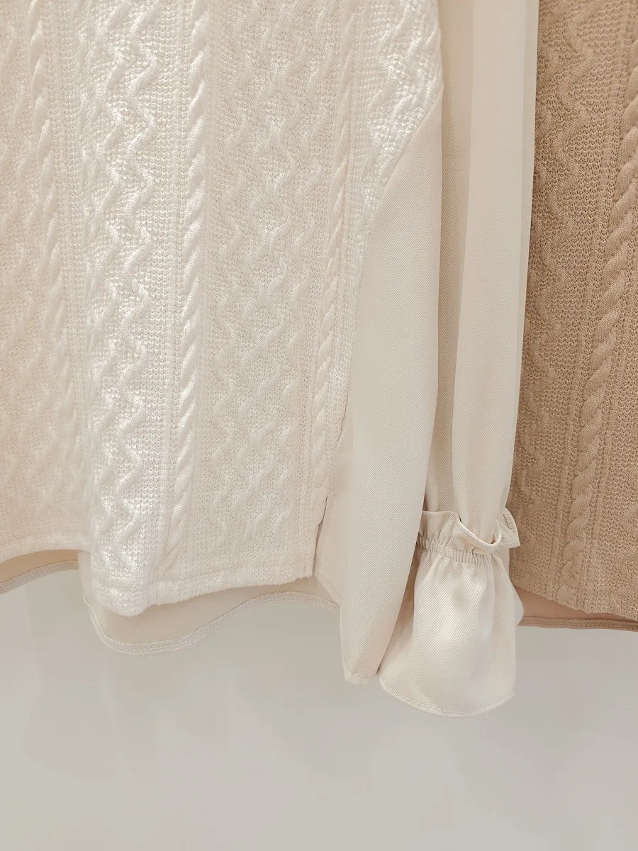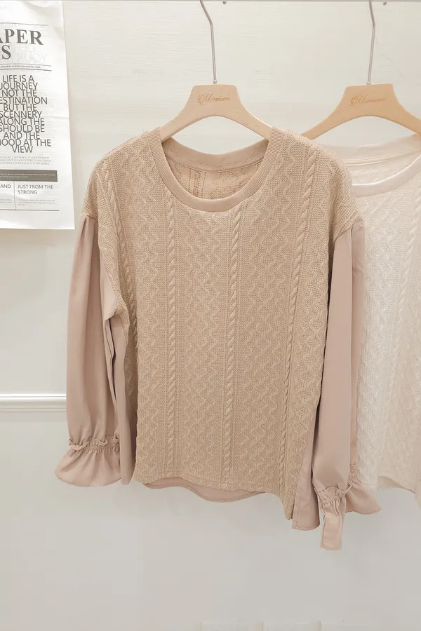 37.麻花壓紋針織拼接雪紡上衣 2色