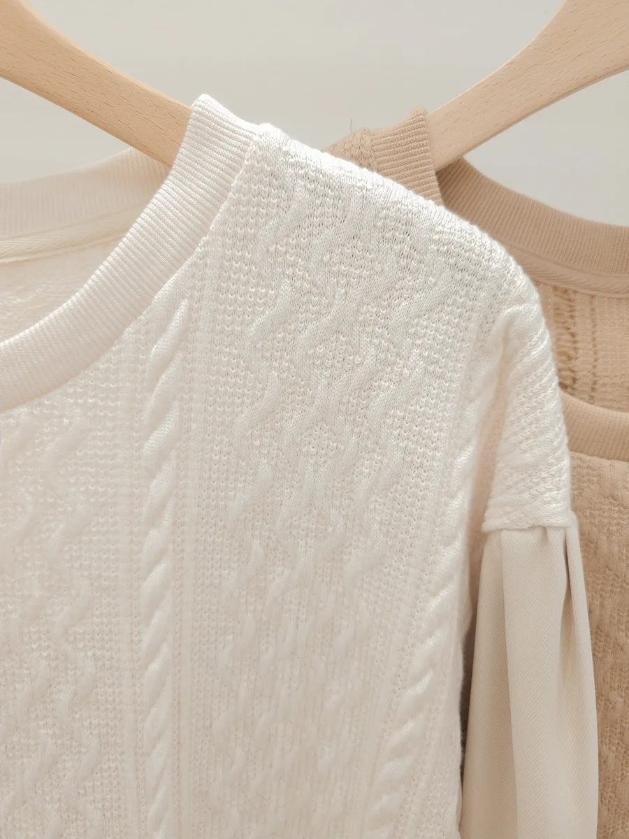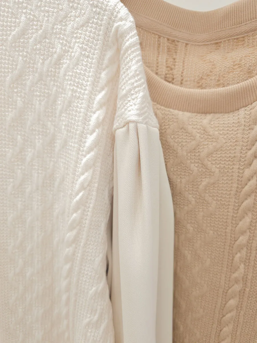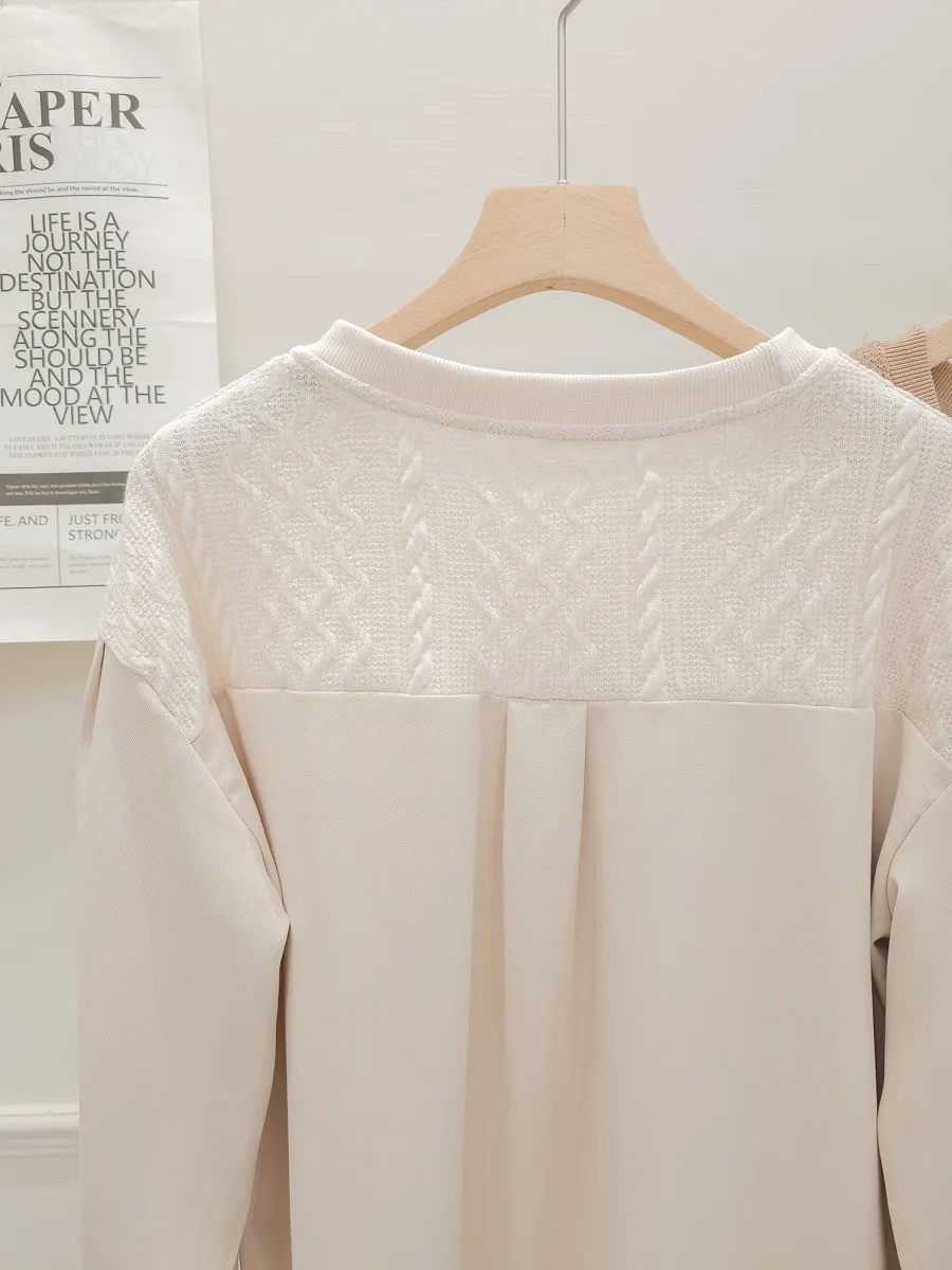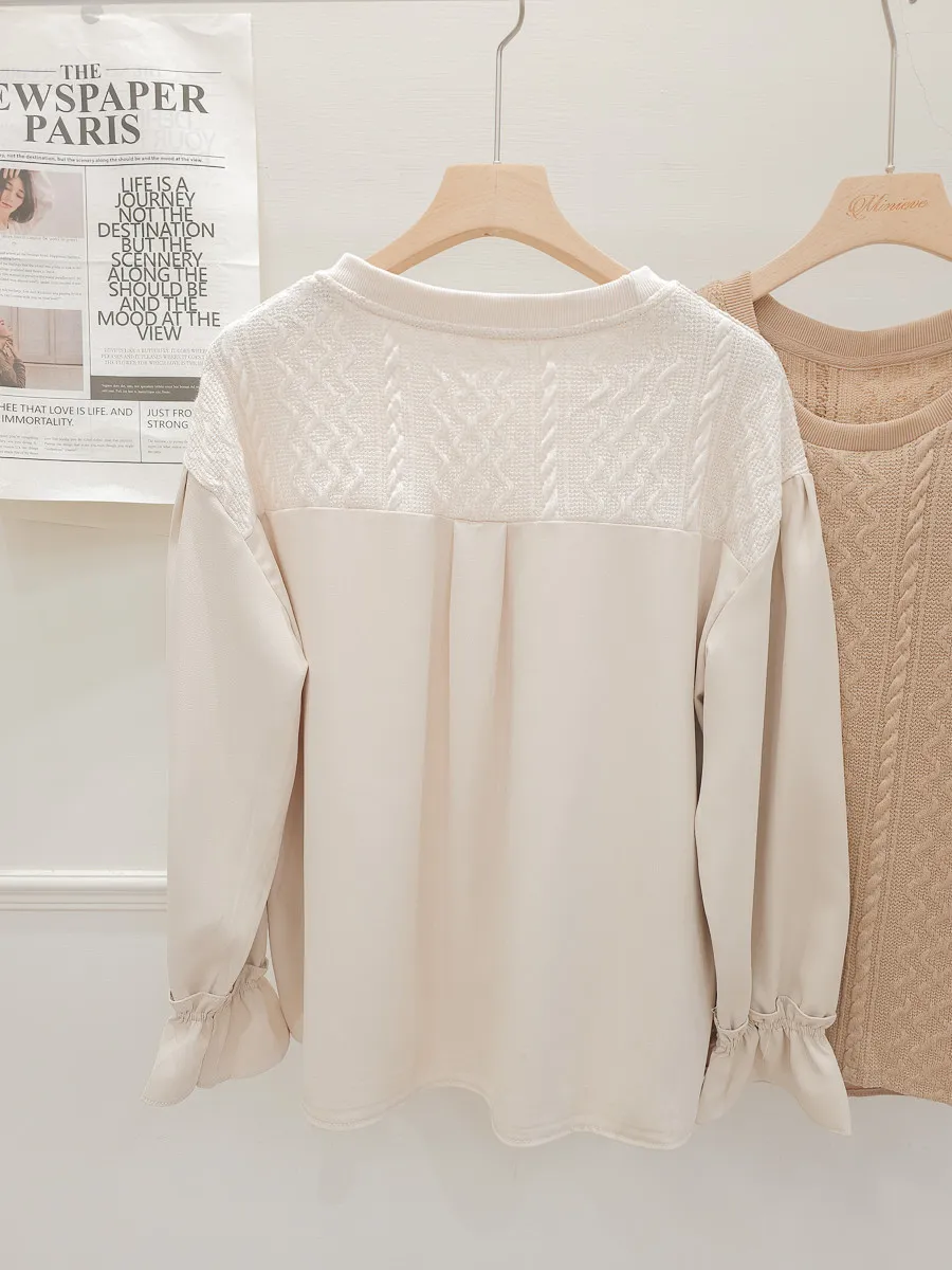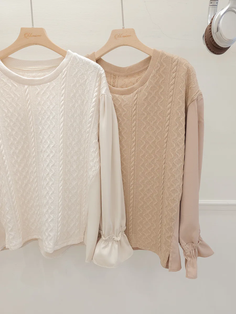 37.麻花壓紋針織拼接雪紡上衣 2色