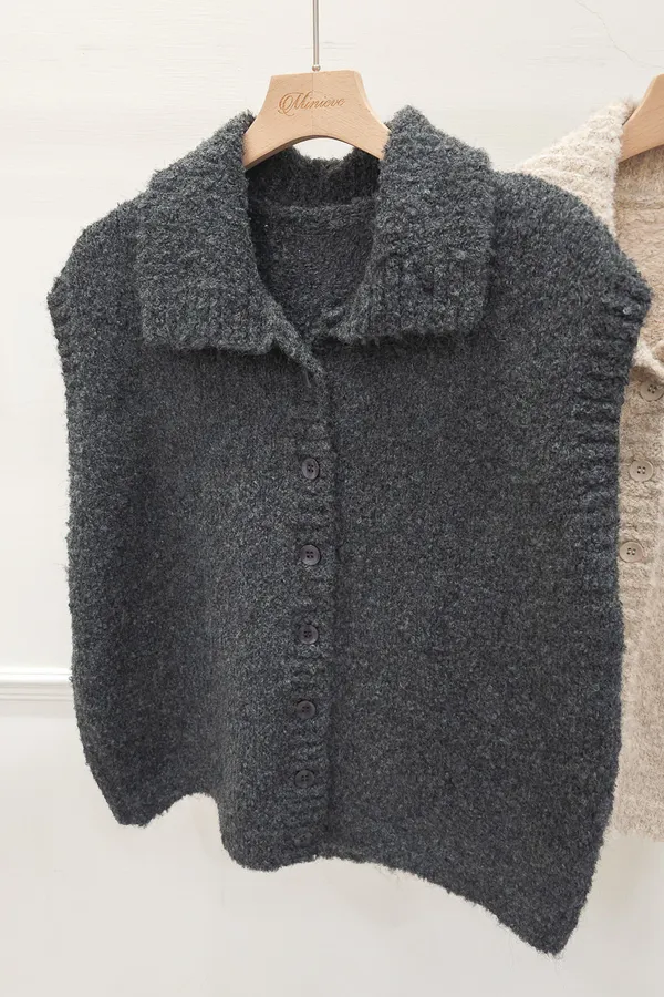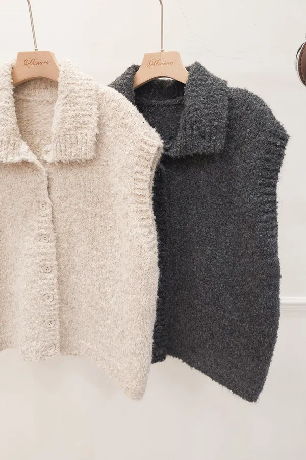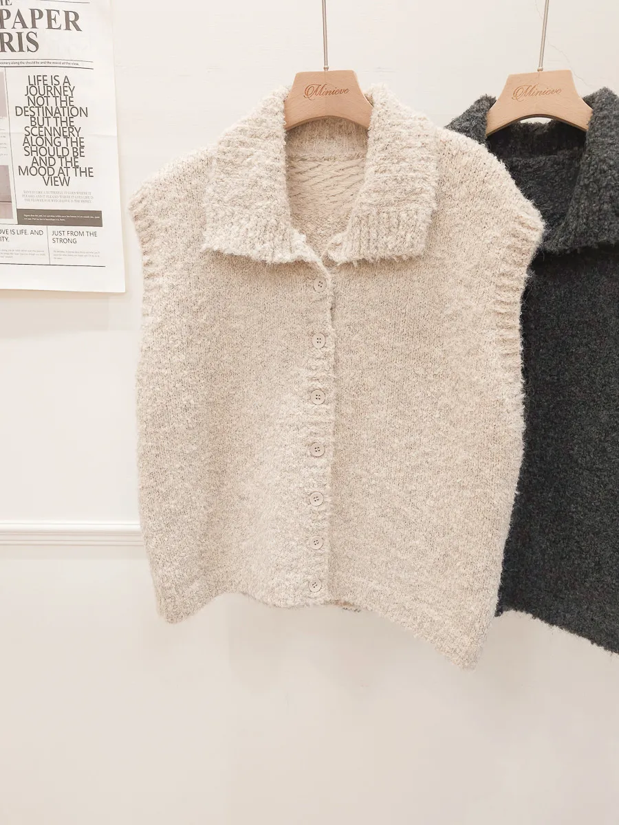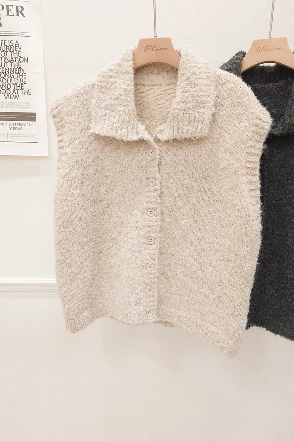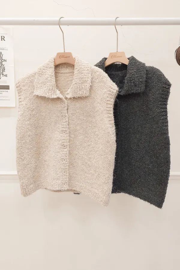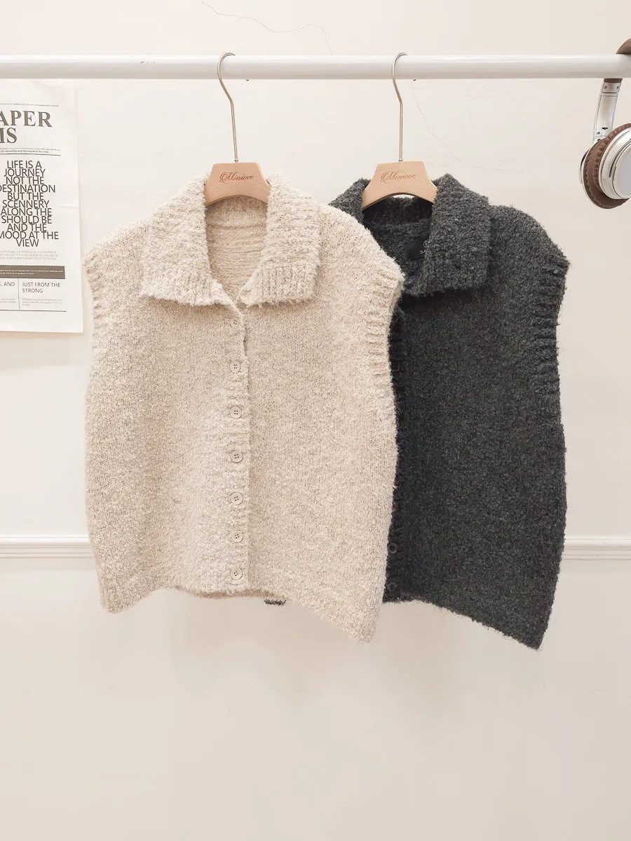 57.正韓 翻領排釦捲毛背心 2色