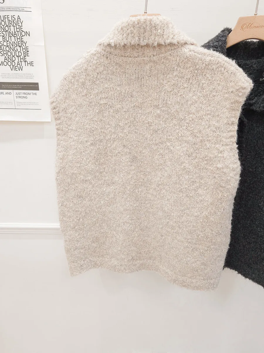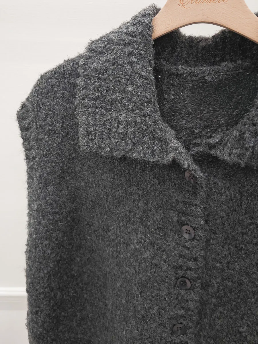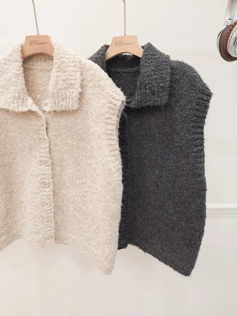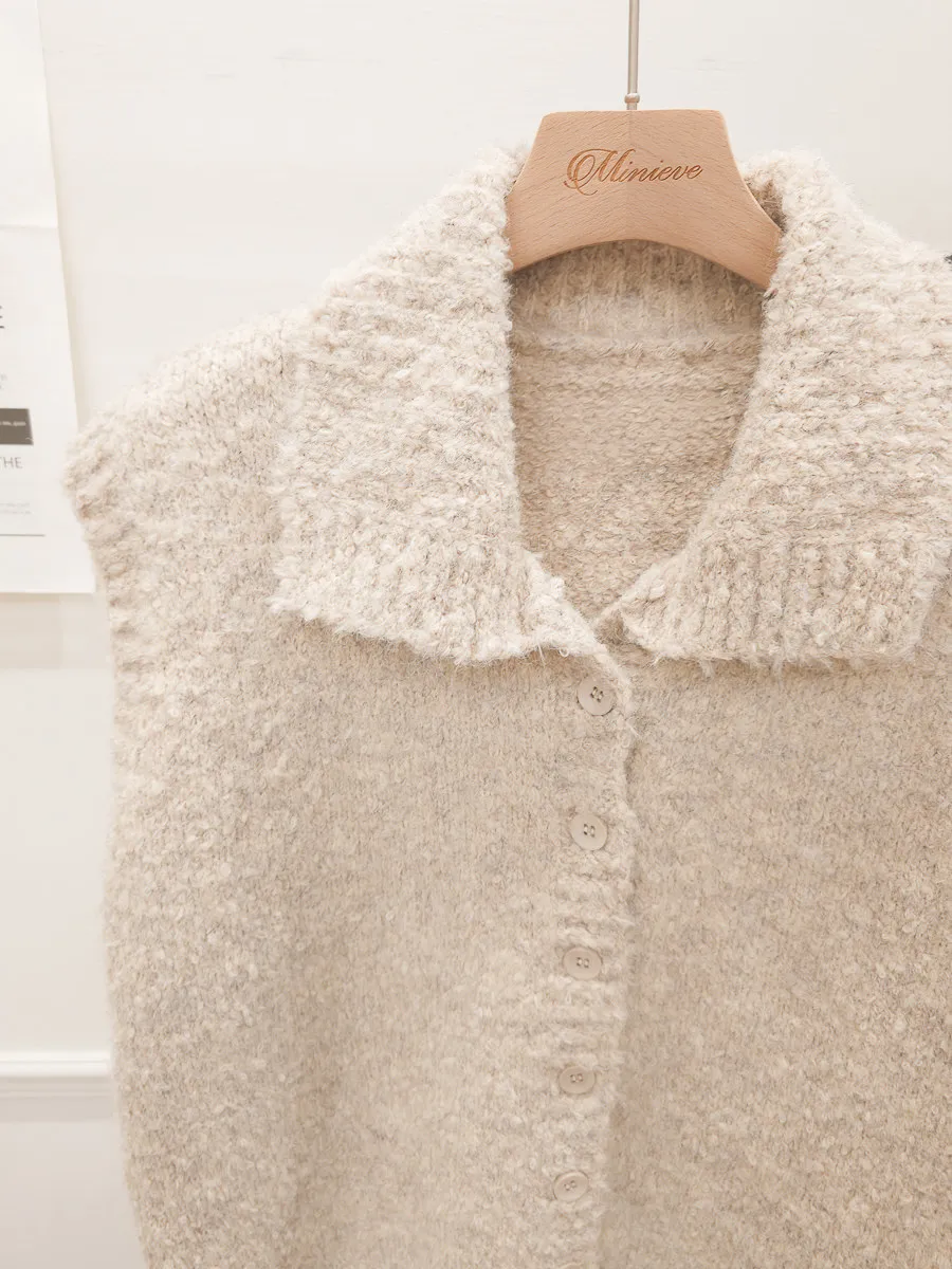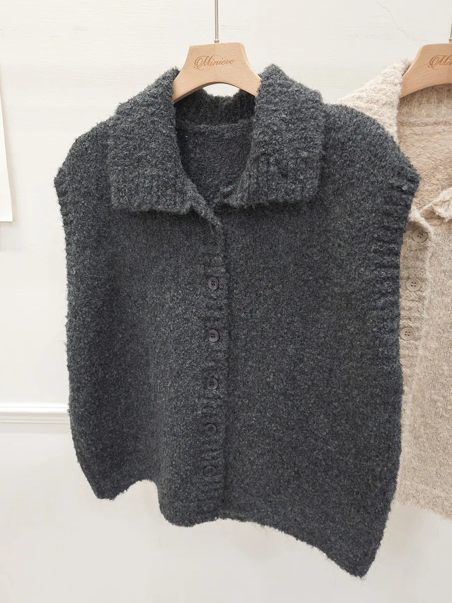 57.正韓 翻領排釦捲毛背心 2色