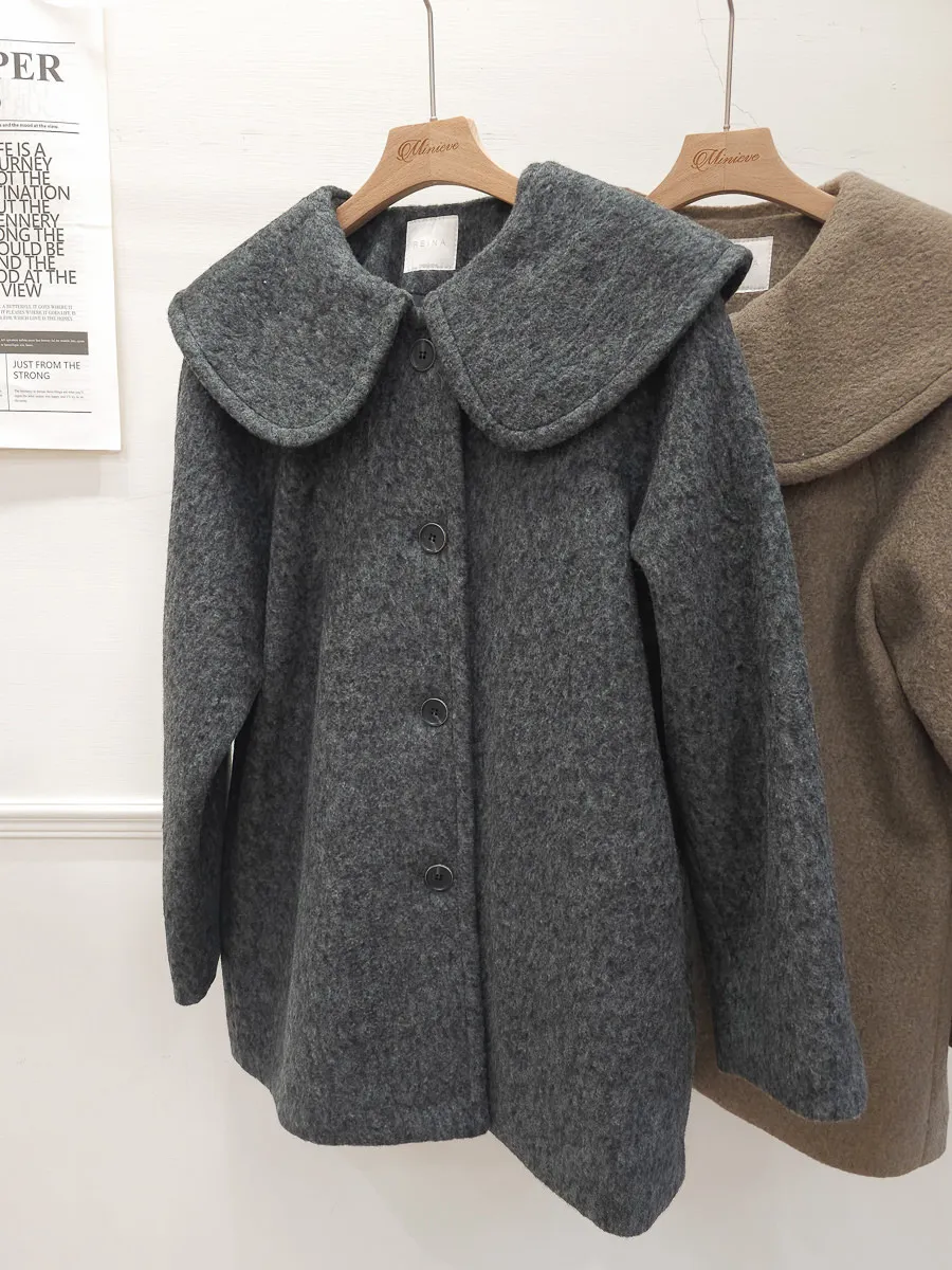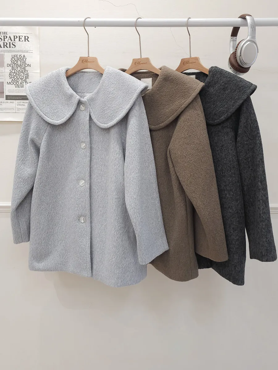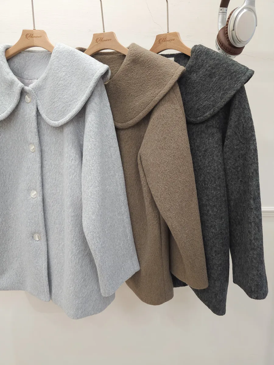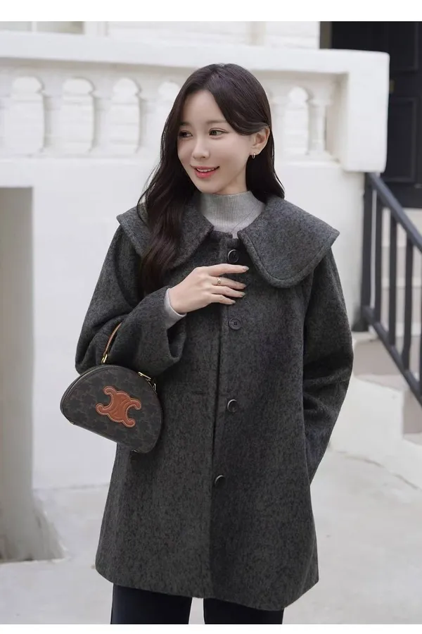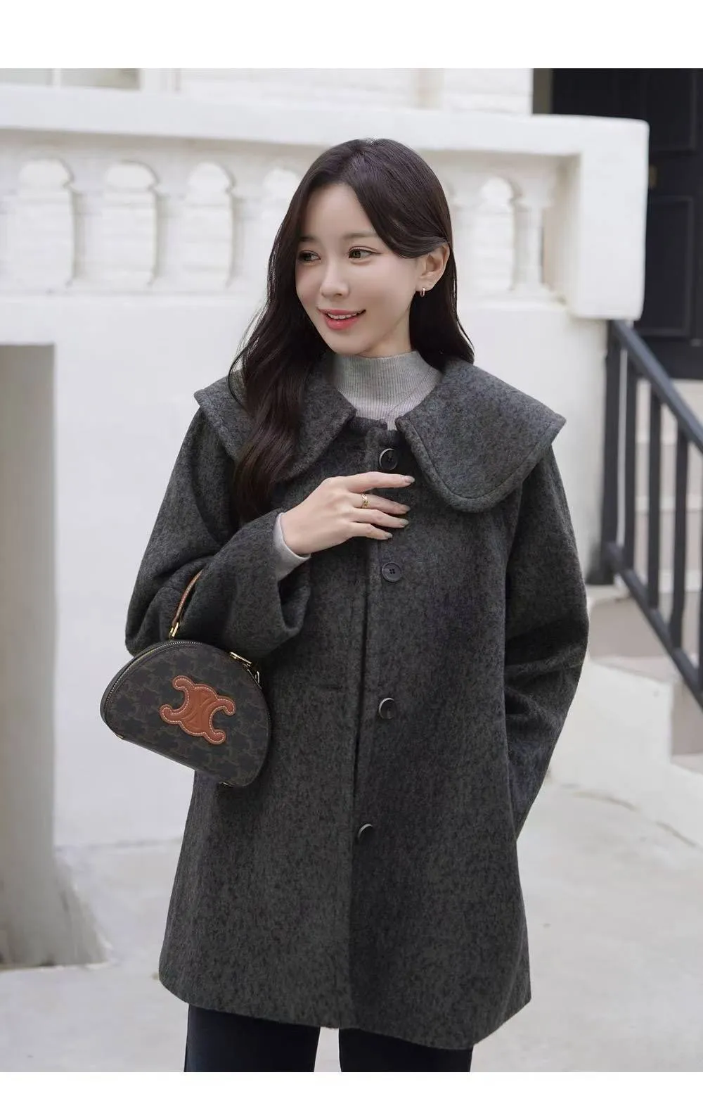81.正韓 寬圓翻領中版羊毛外套 3色
