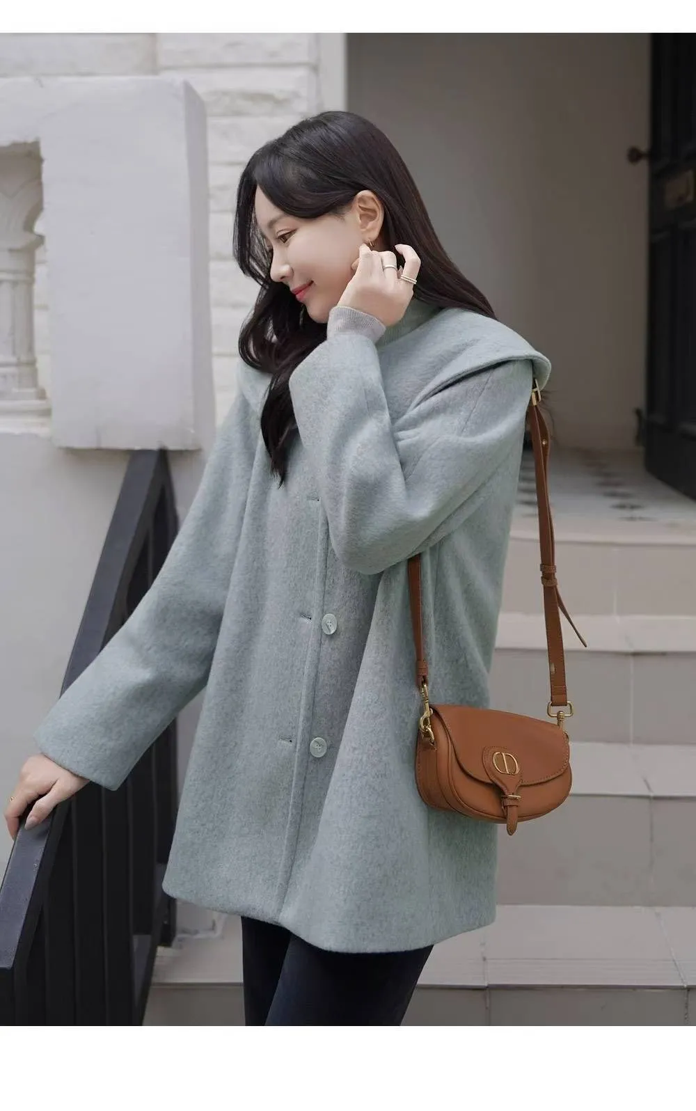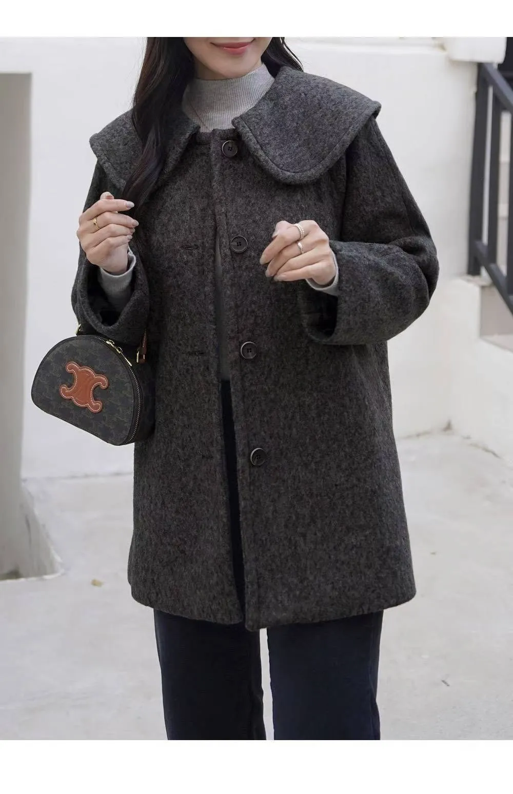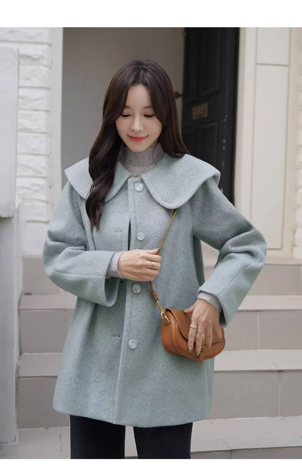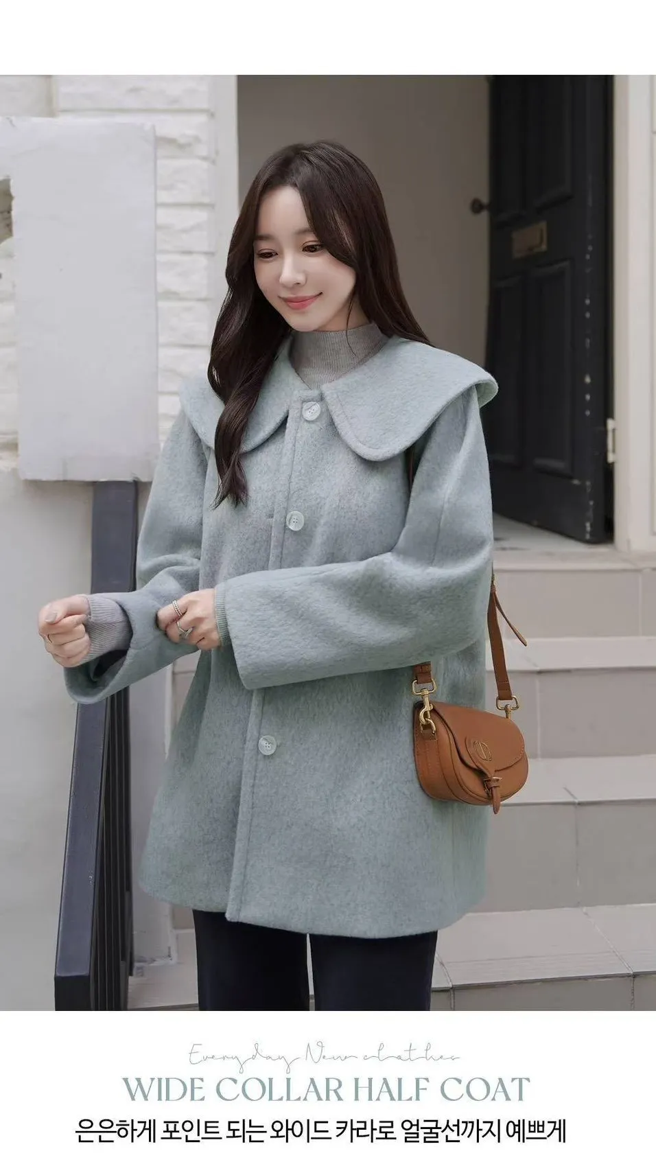 81.正韓 寬圓翻領中版羊毛外套 3色