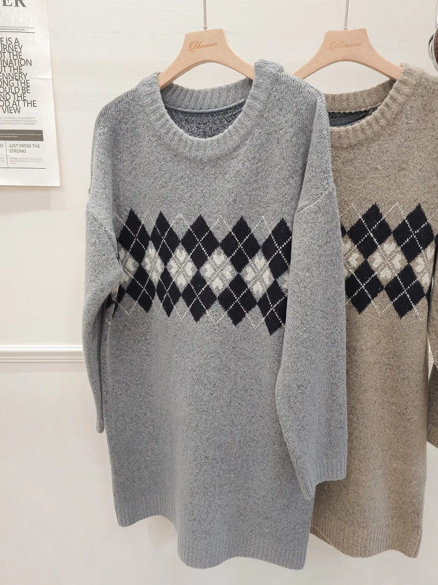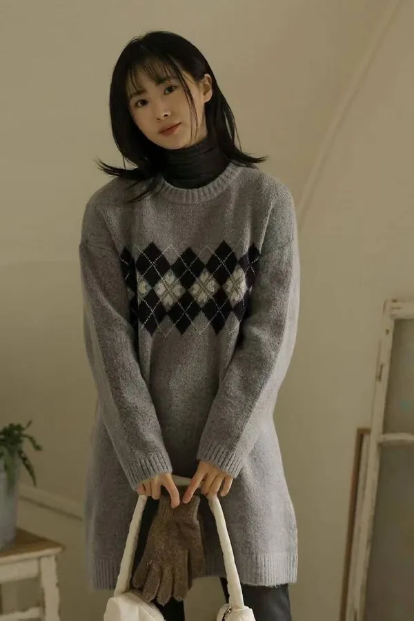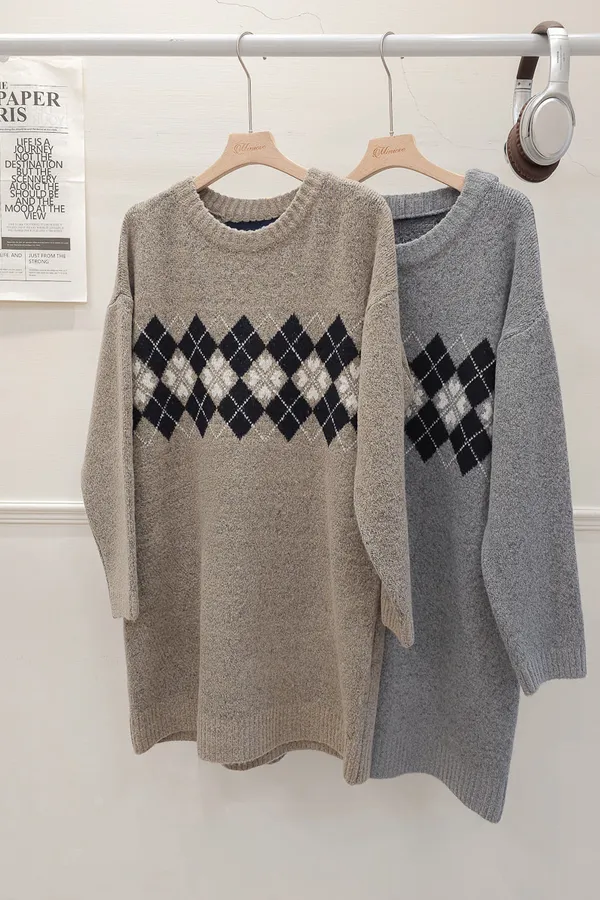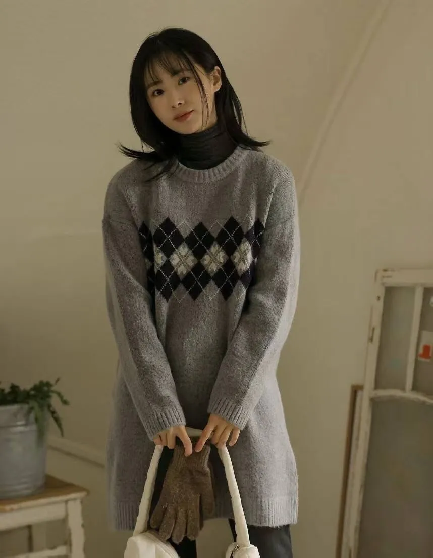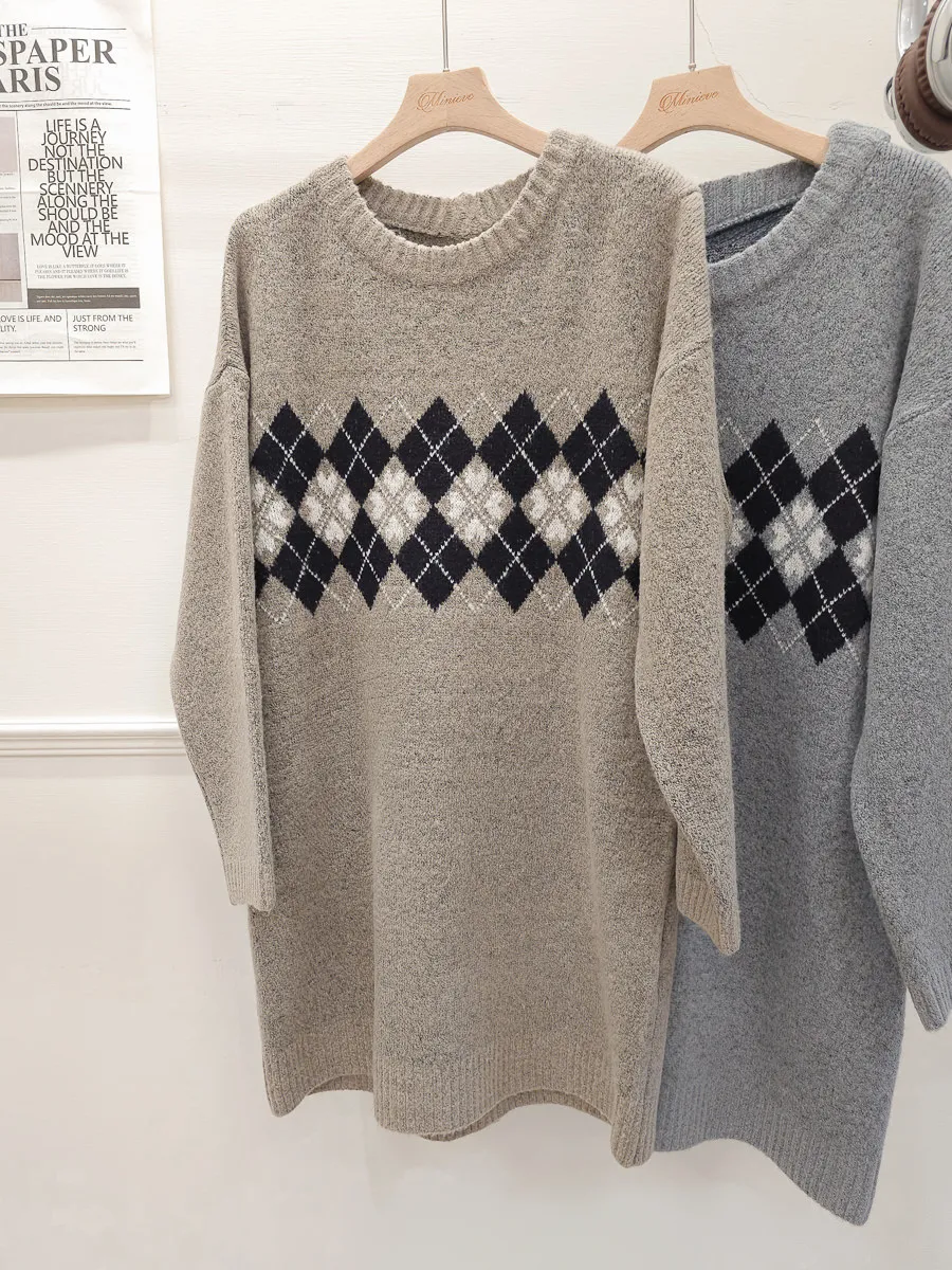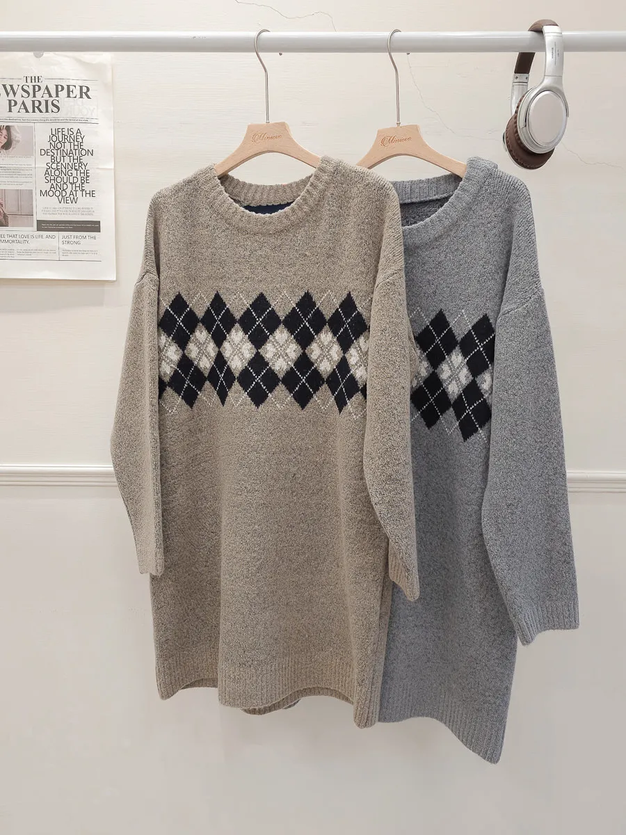 86.正韓 學院菱格紋針織連身裙 2色