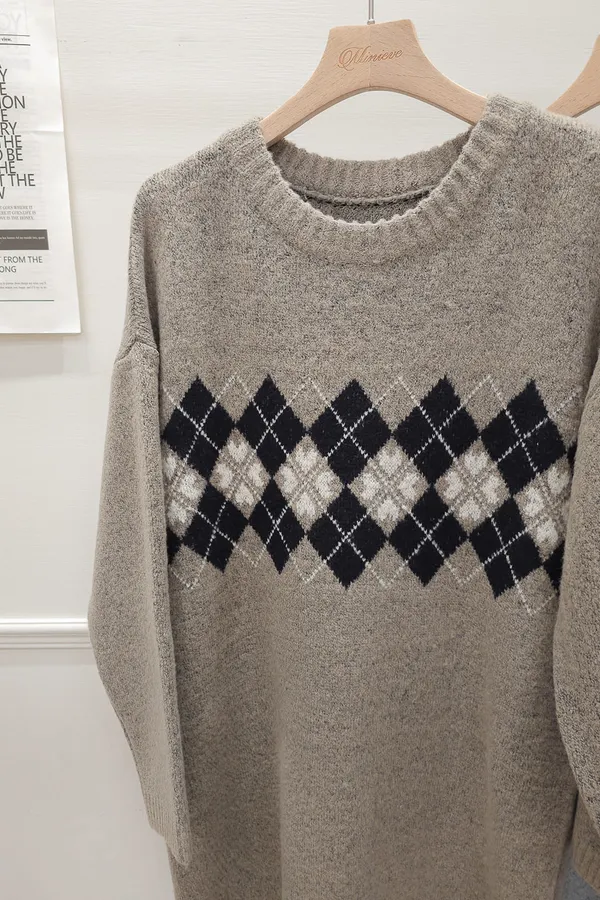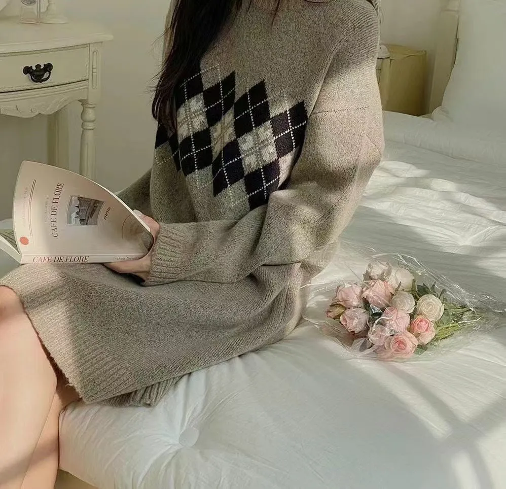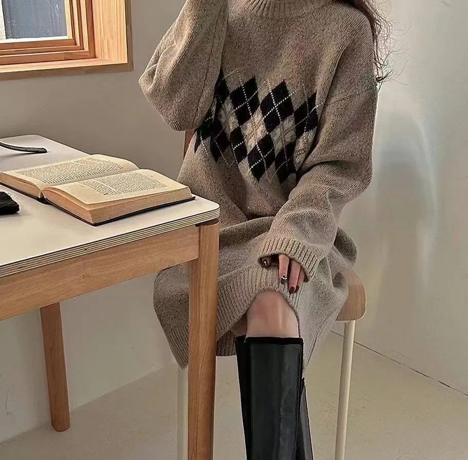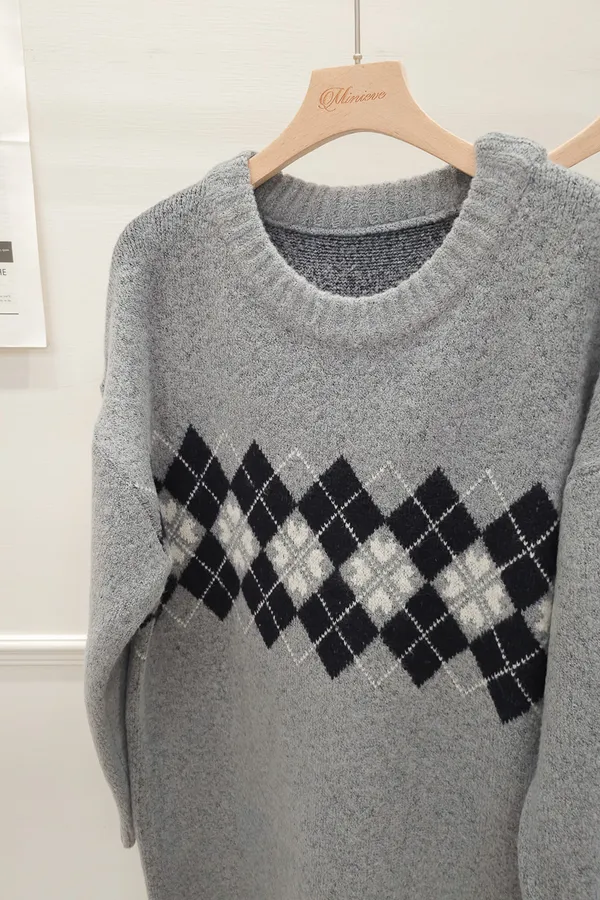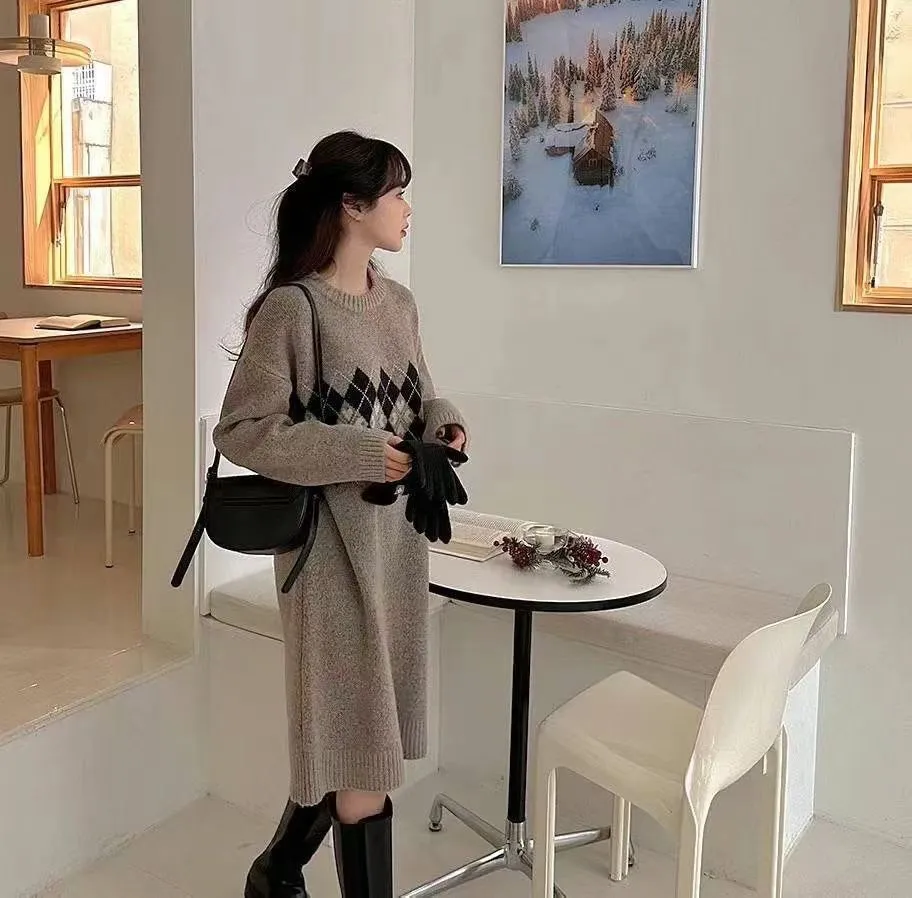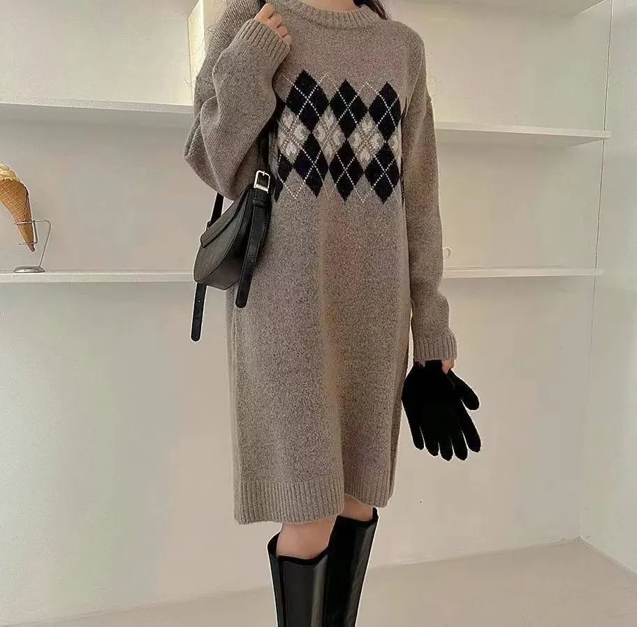 86.正韓 學院菱格紋針織連身裙 2色
