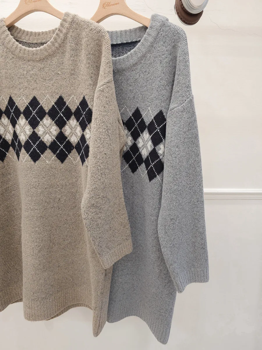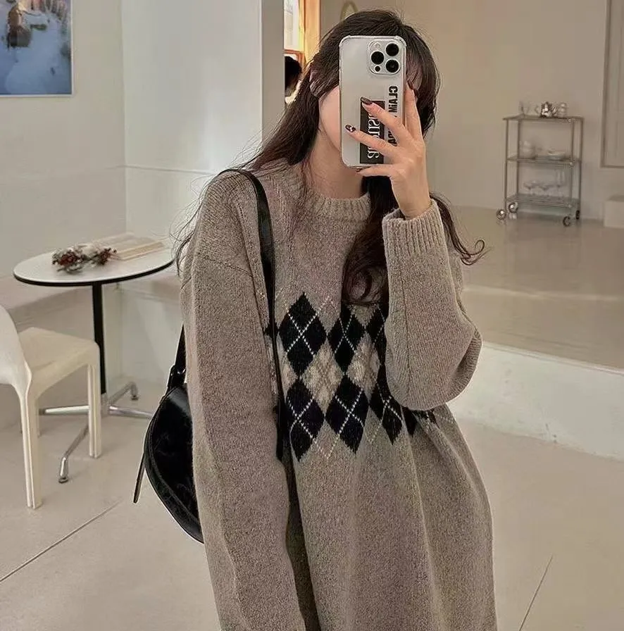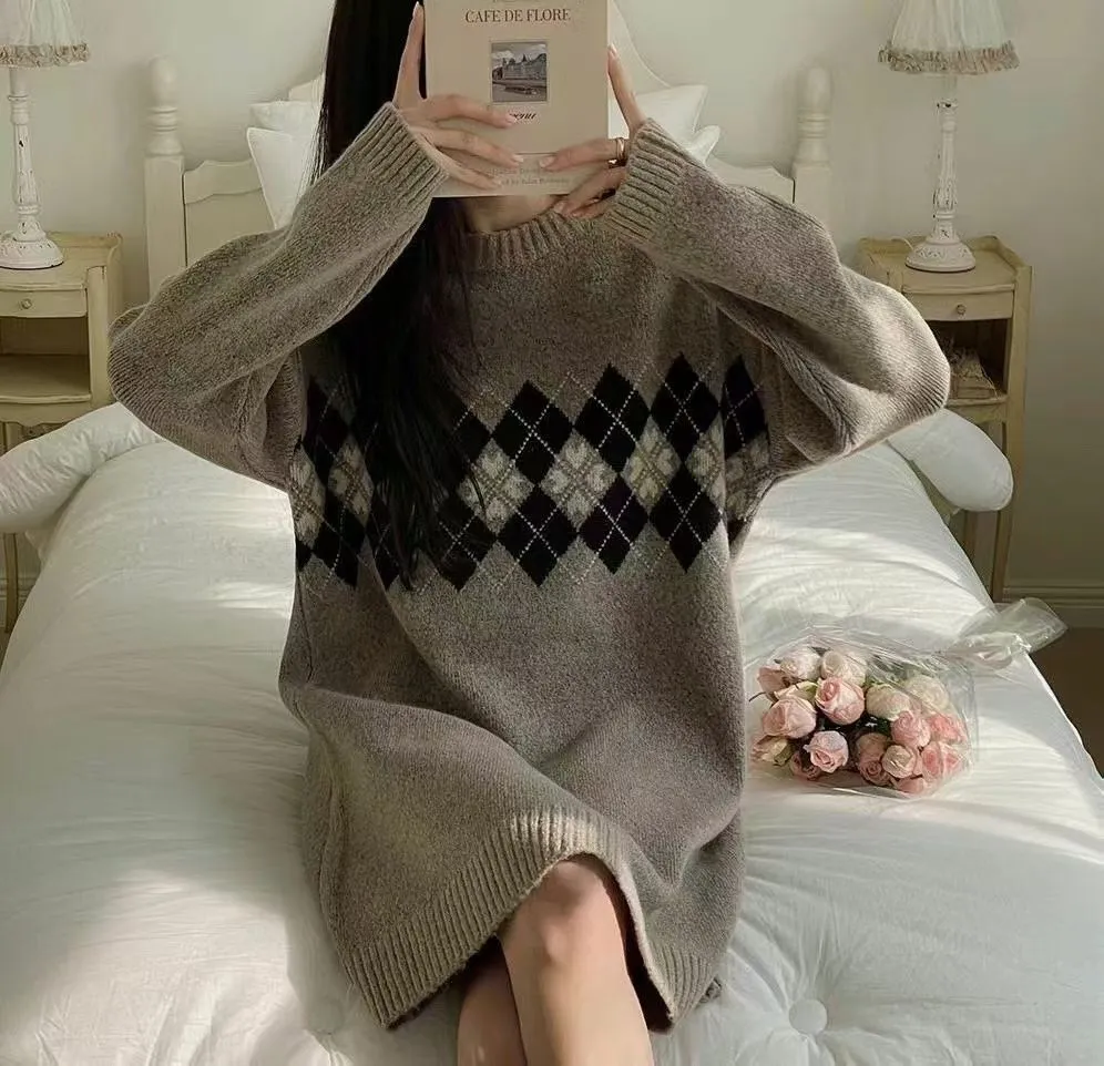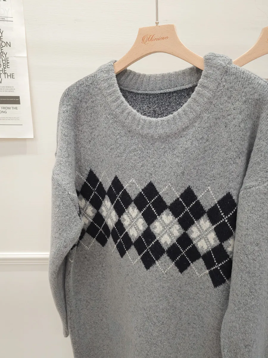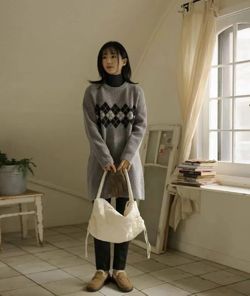 86.正韓 學院菱格紋針織連身裙 2色