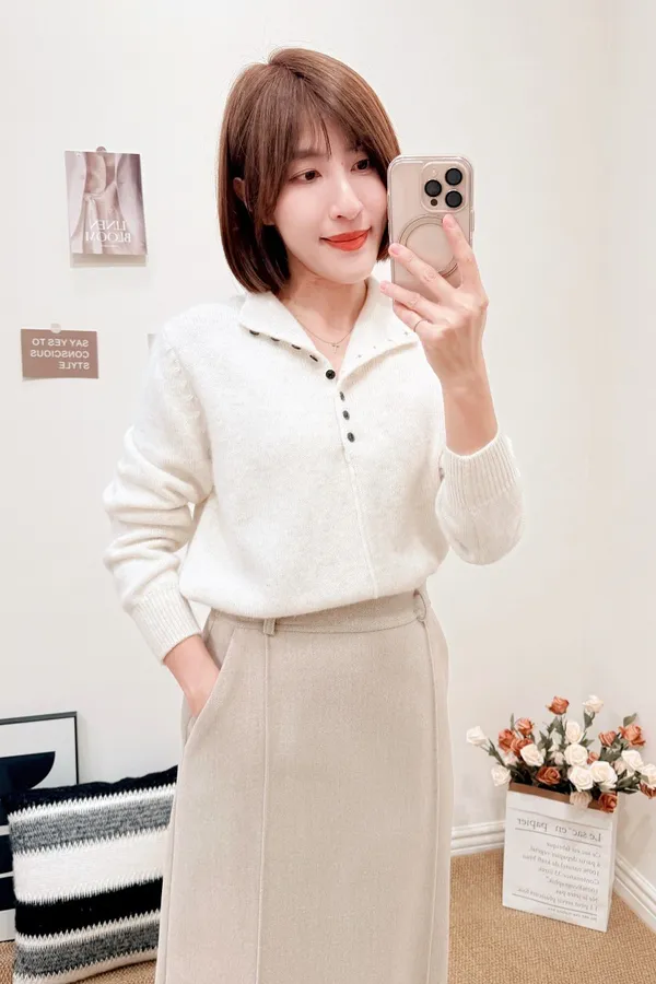 正韓 半襟開釦立領上衣 3色