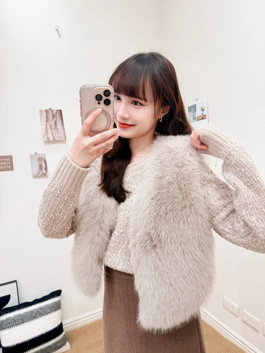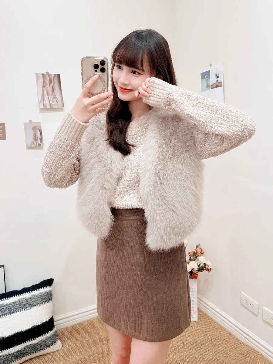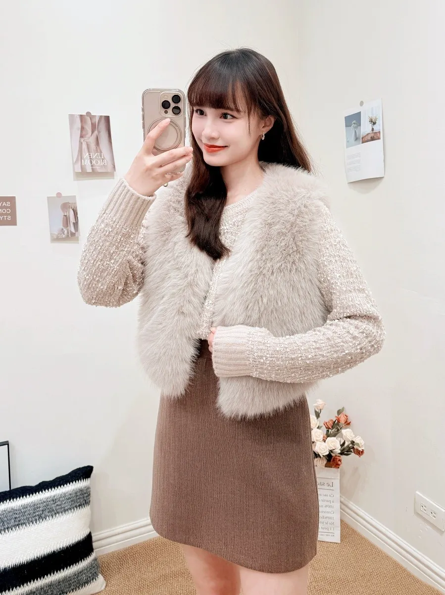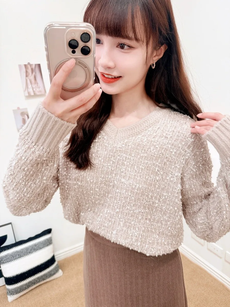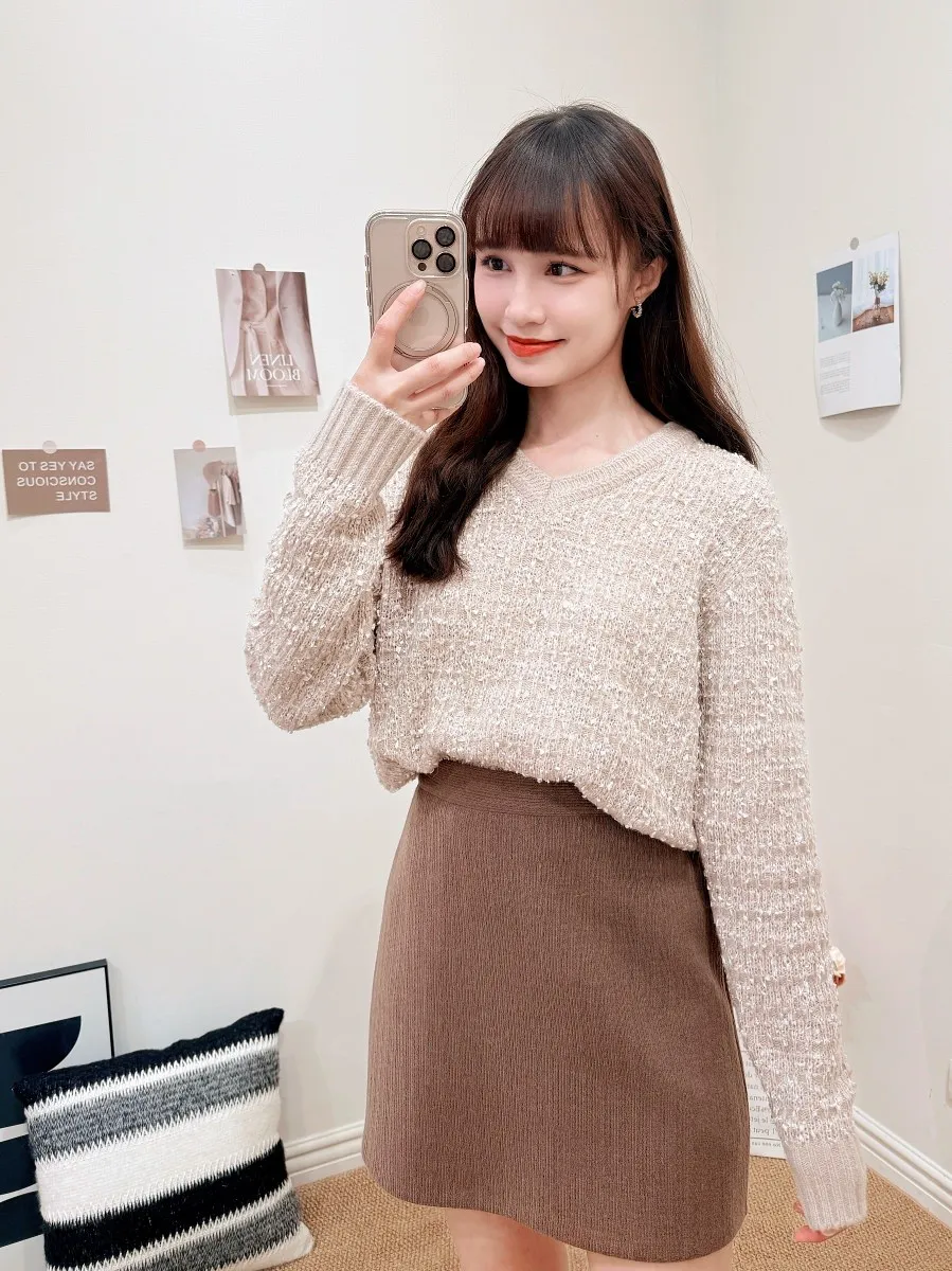 正韓 V領混色球球感針織上衣 3色
