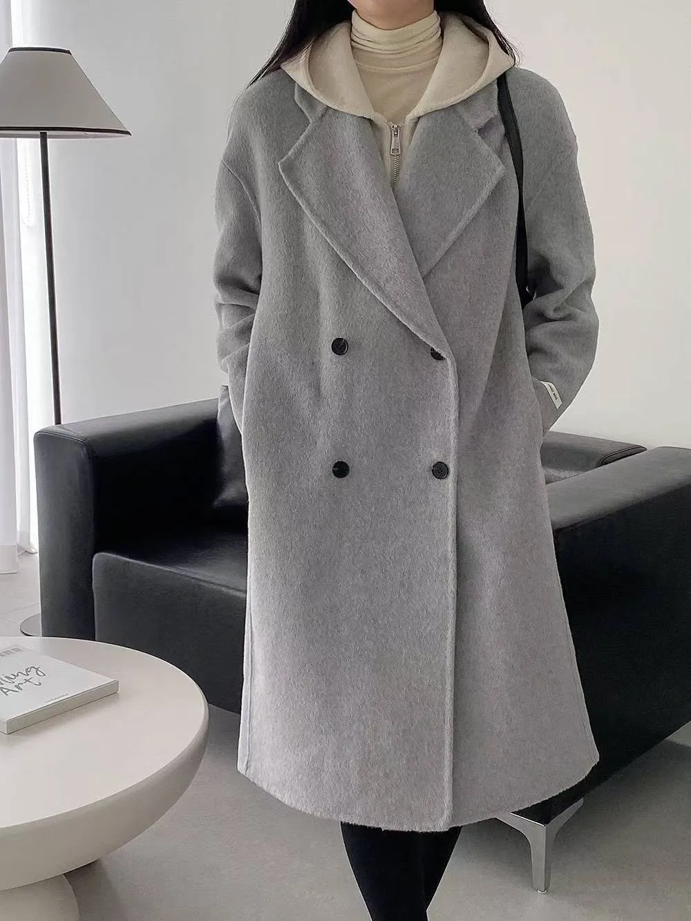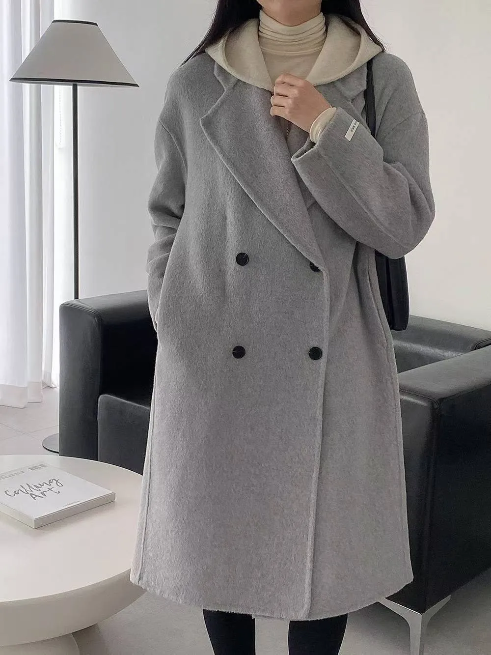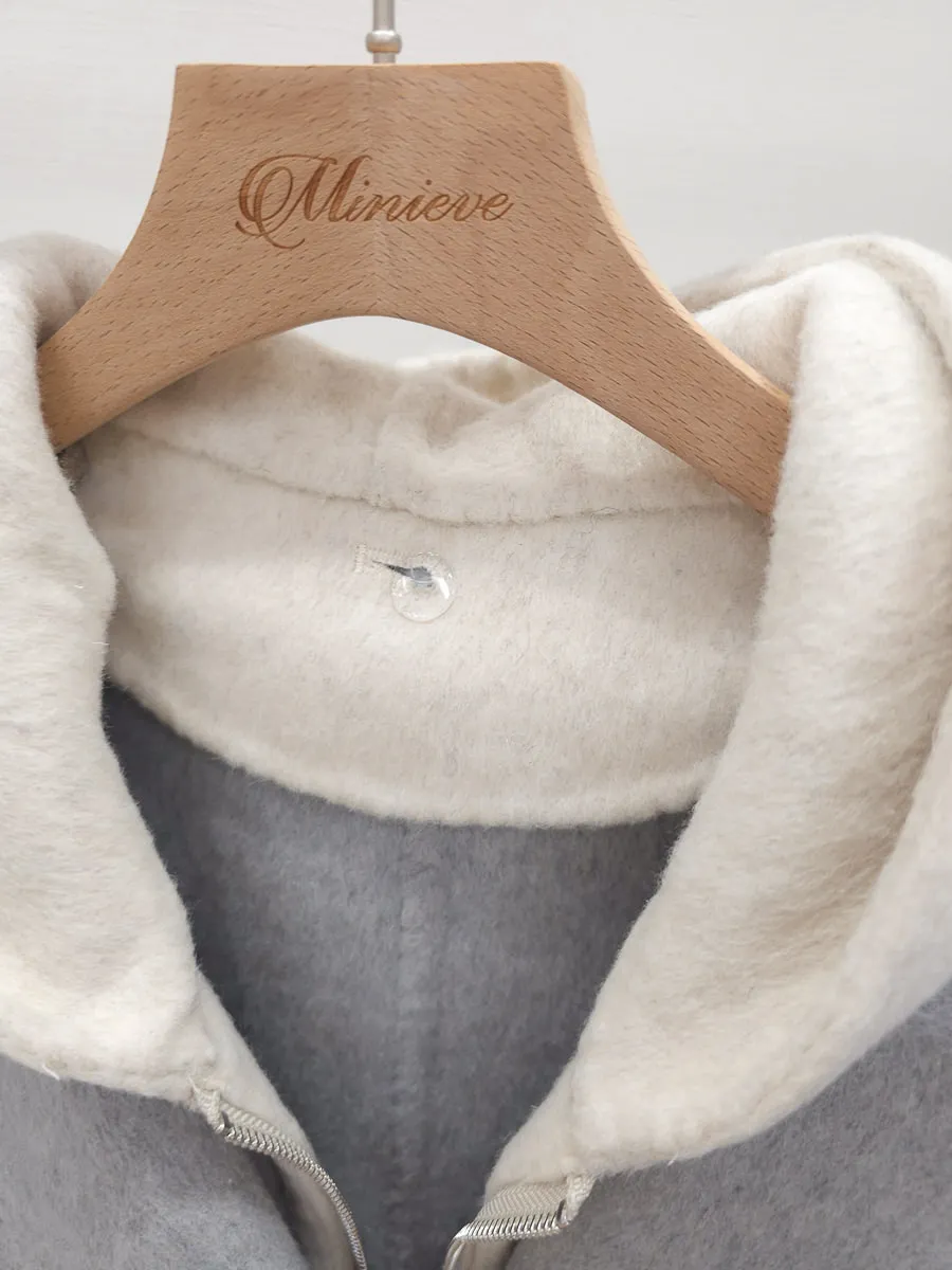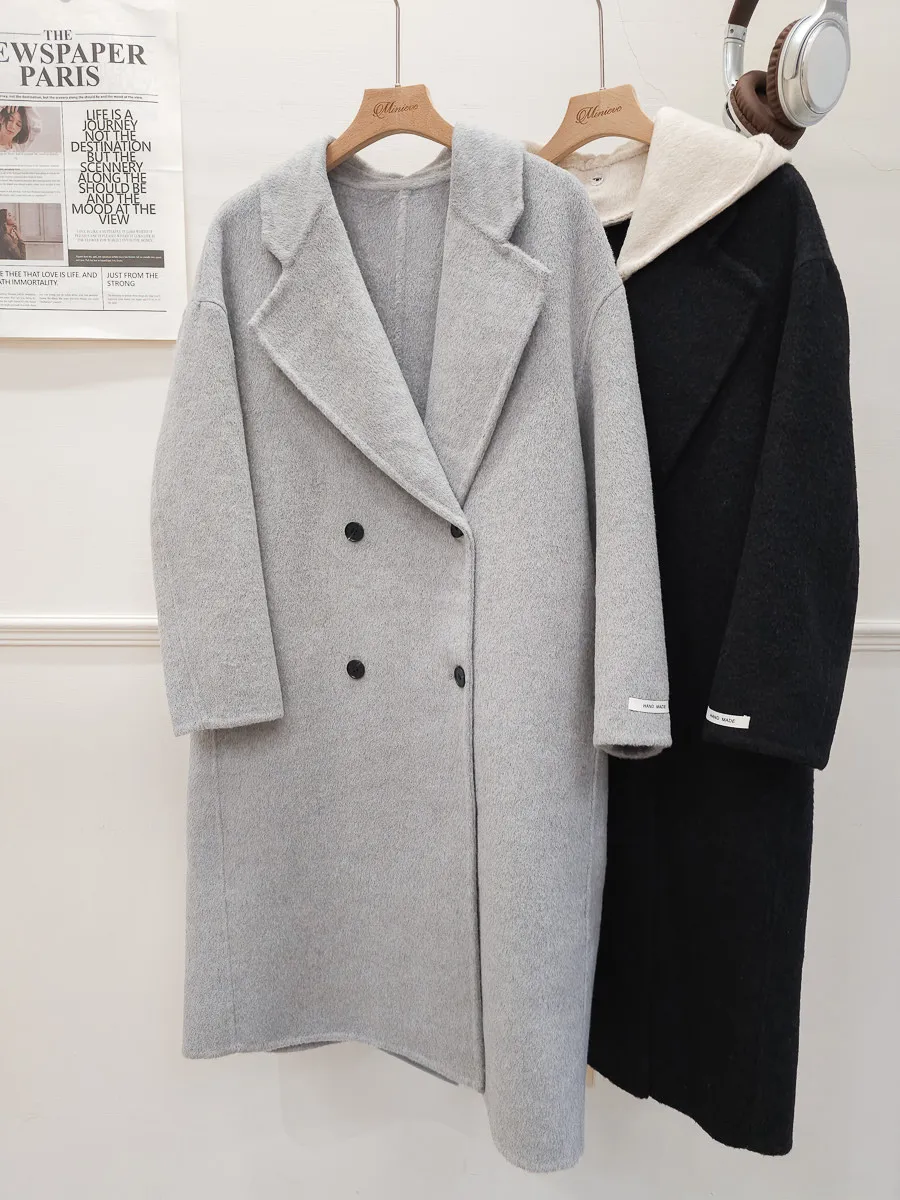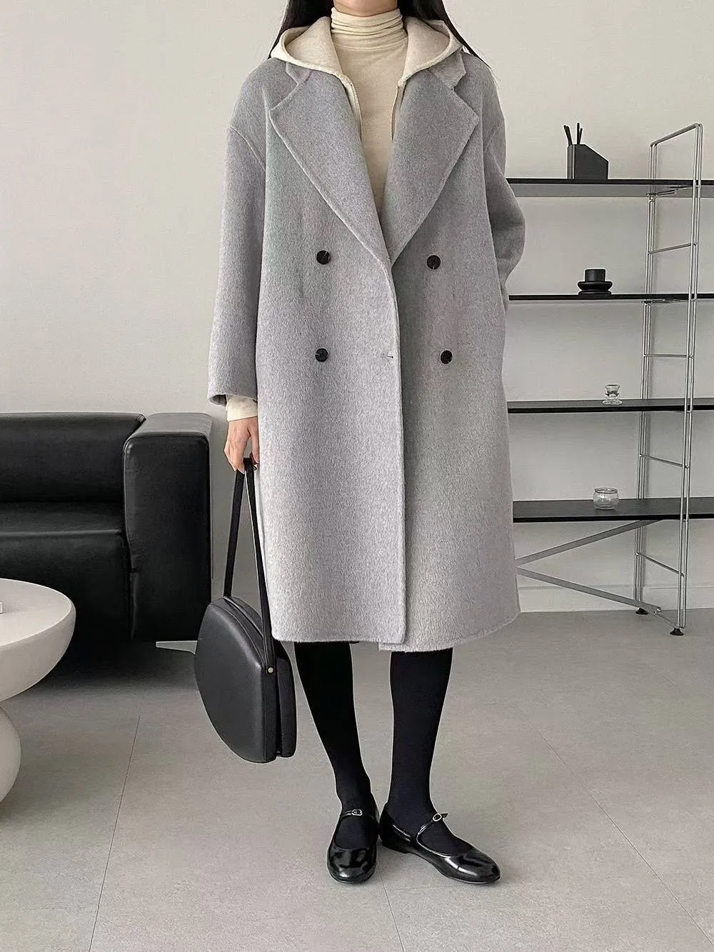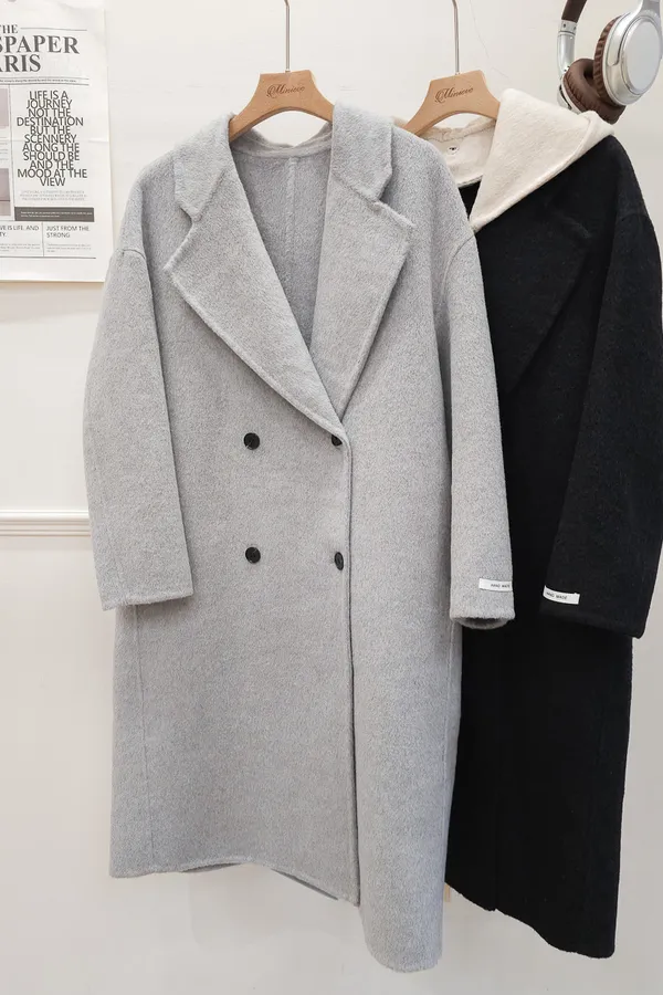 98.正韓 假兩件連帽100%羊毛大衣 2色
