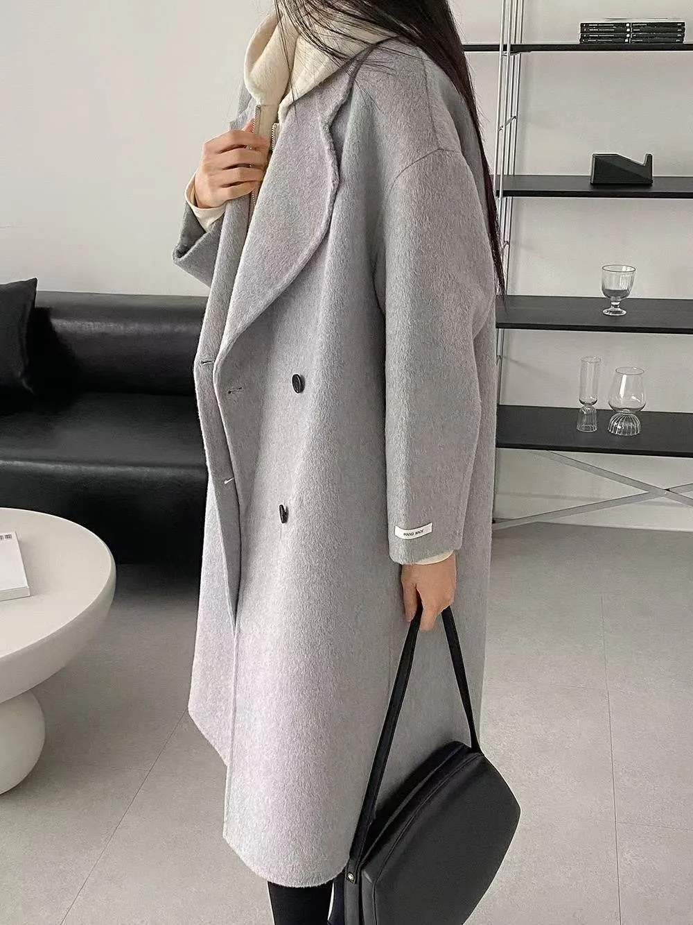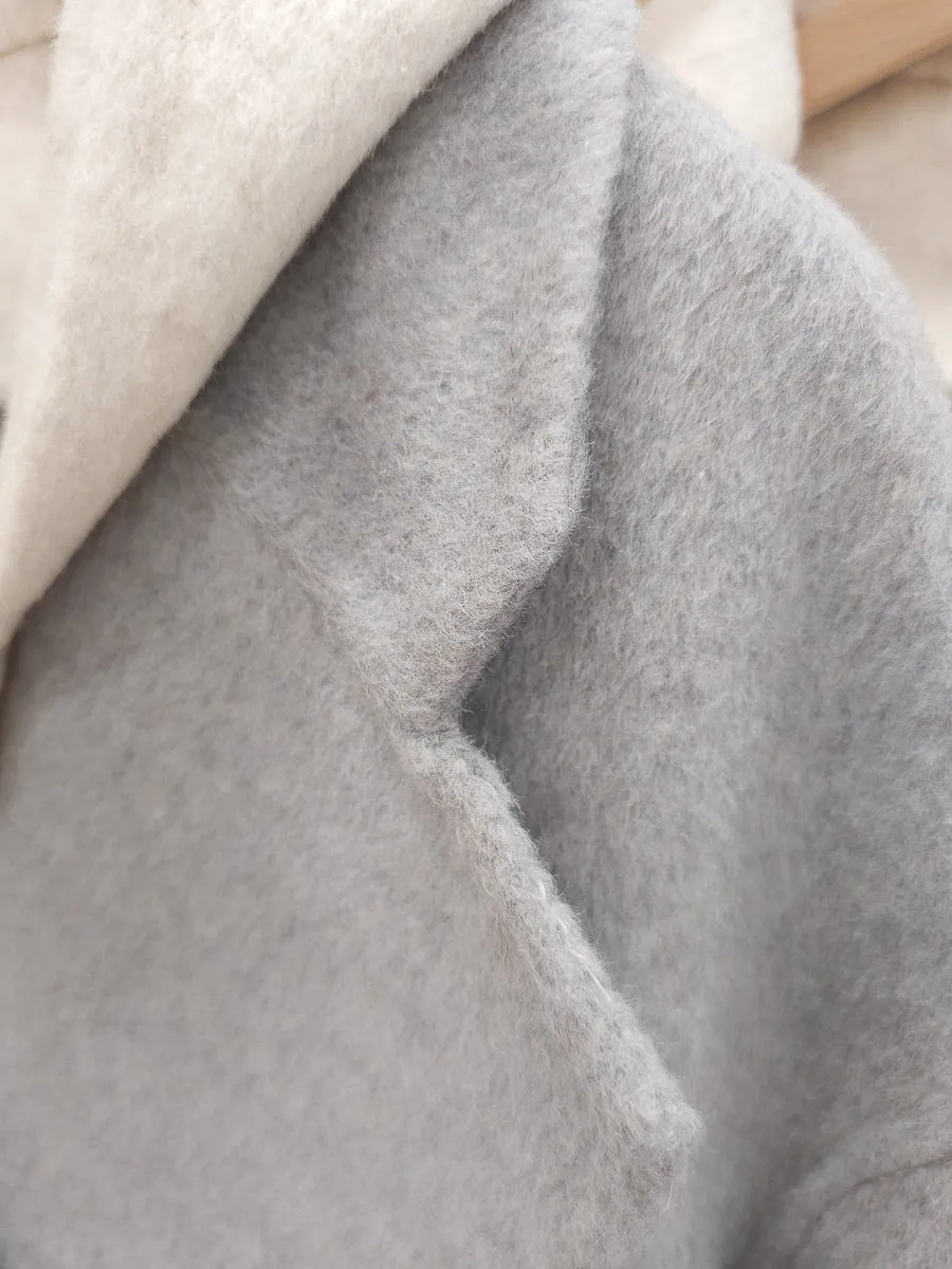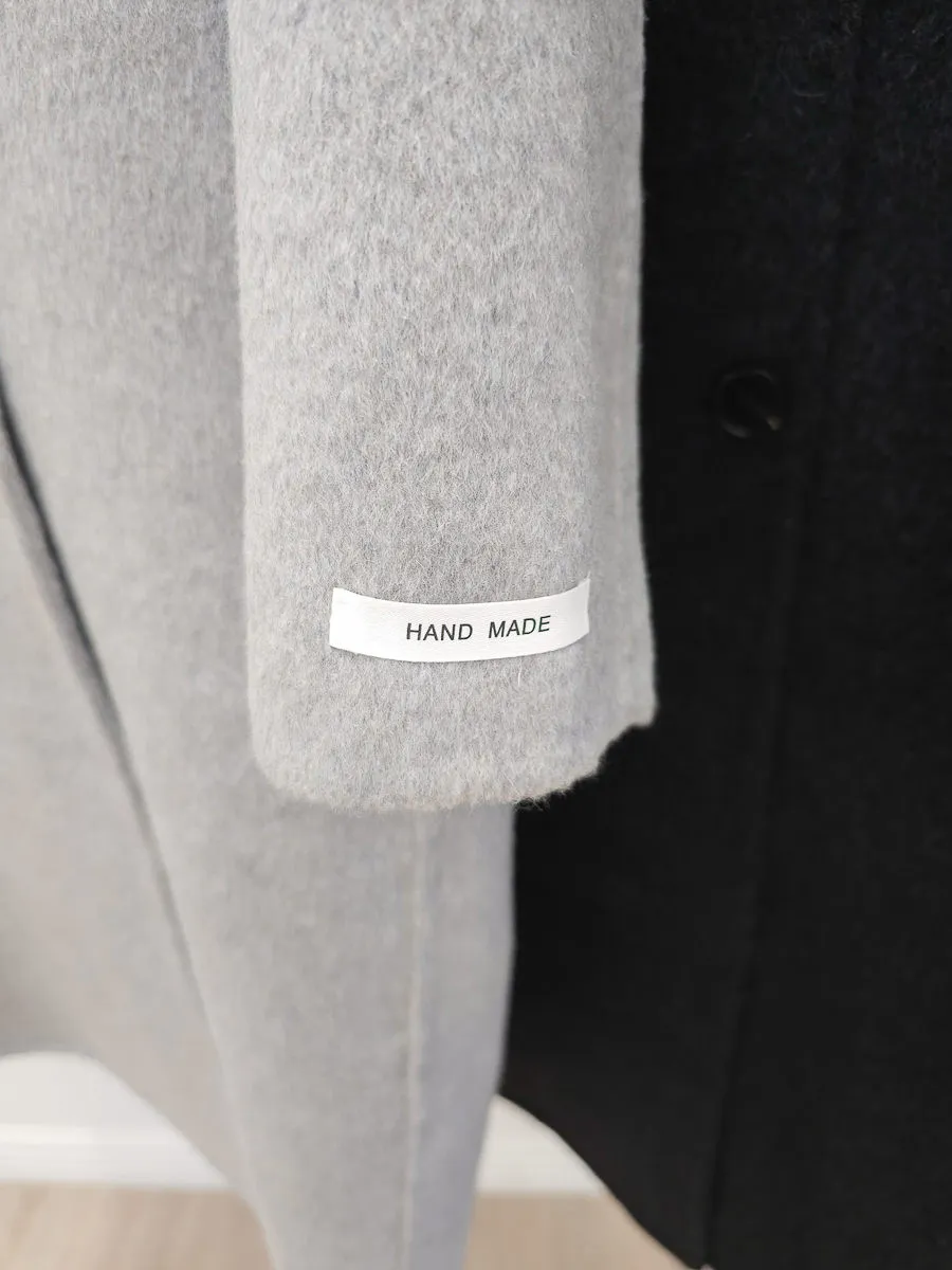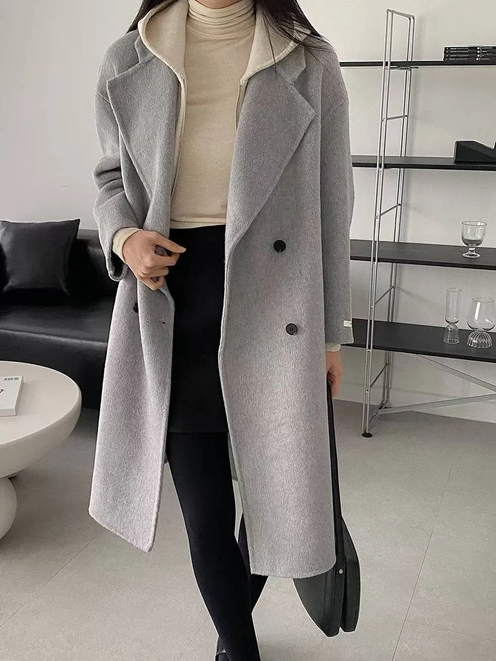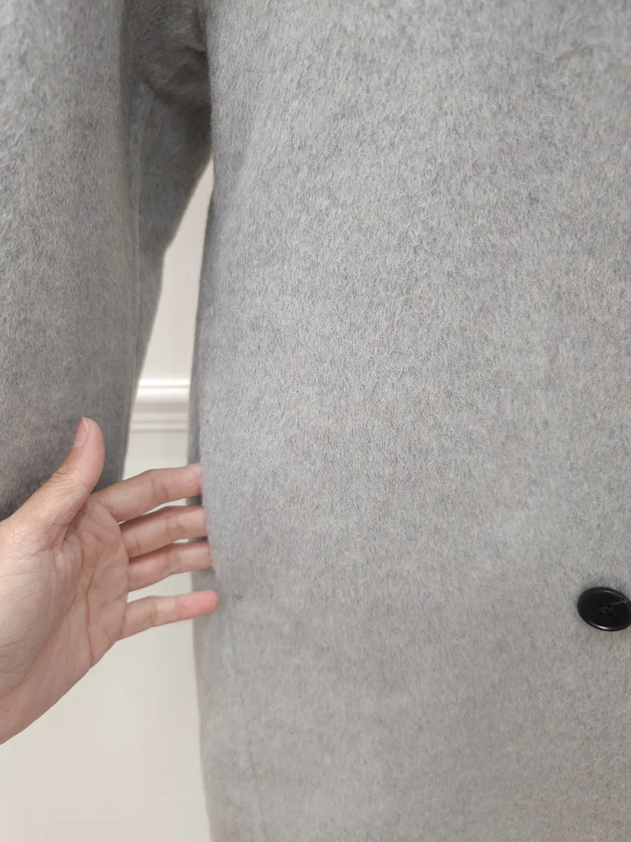 98.正韓 假兩件連帽100%羊毛大衣 2色