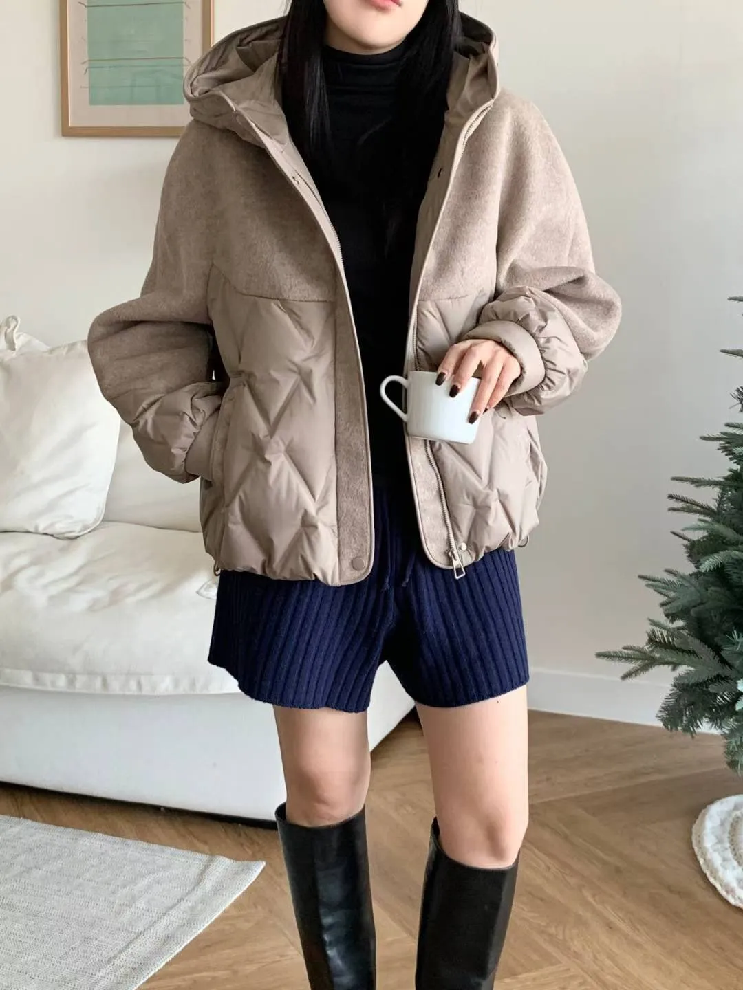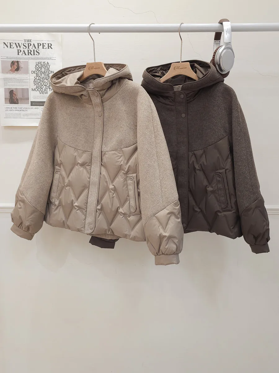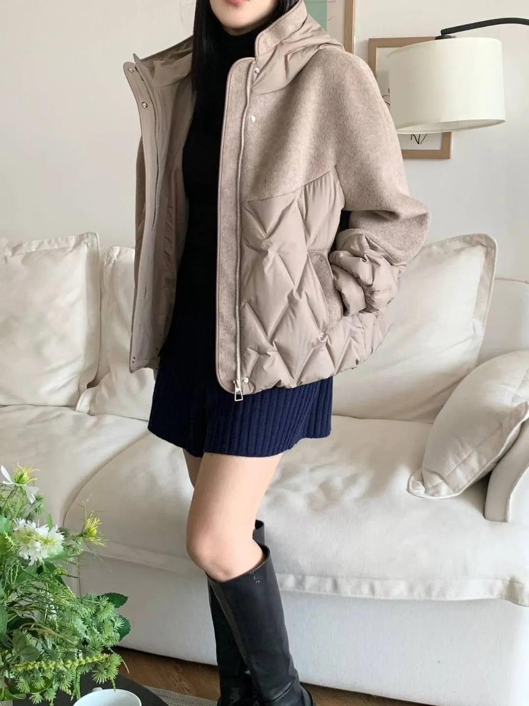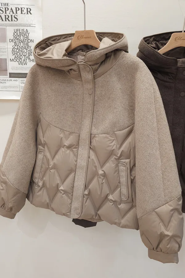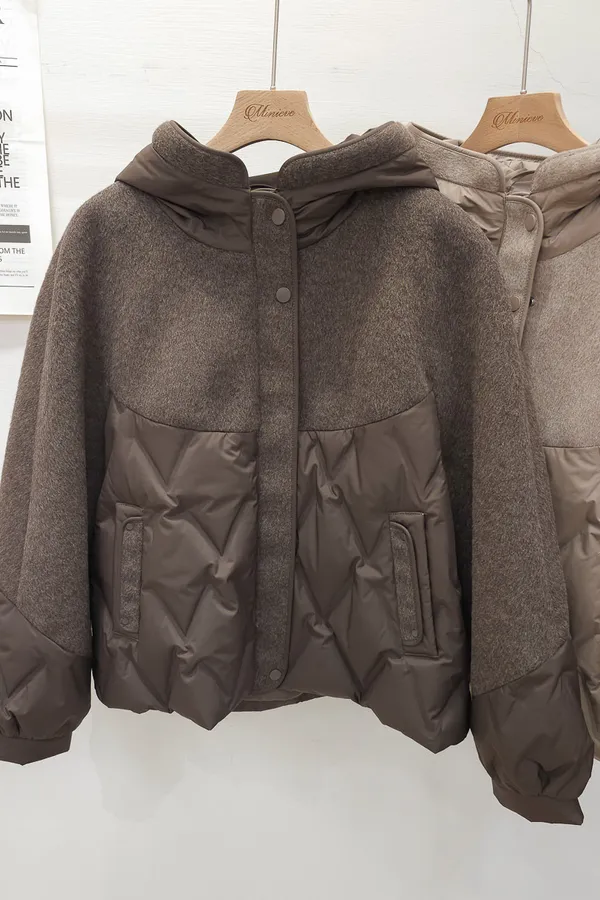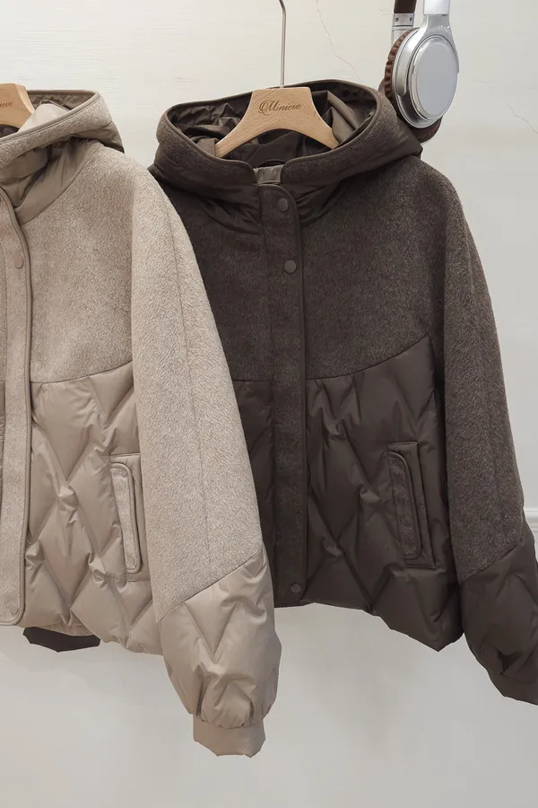 99.正韓 菱格拼接毛呢連帽外套 2色