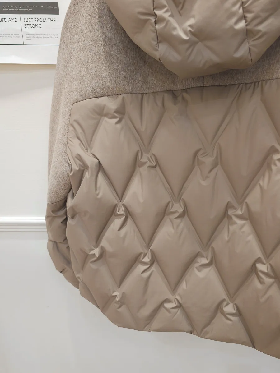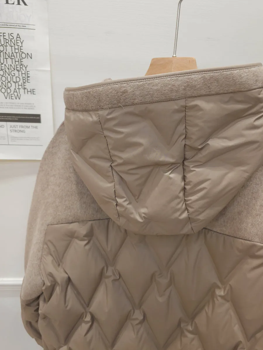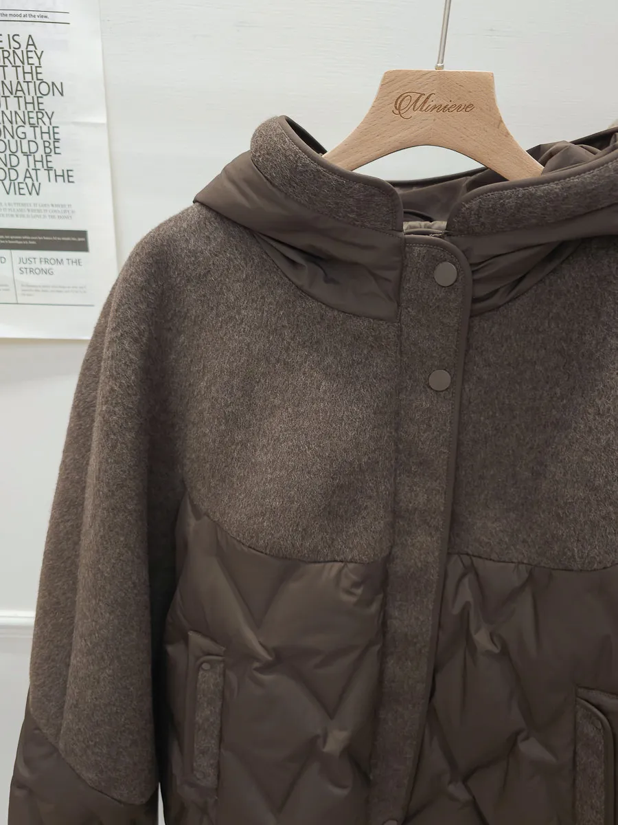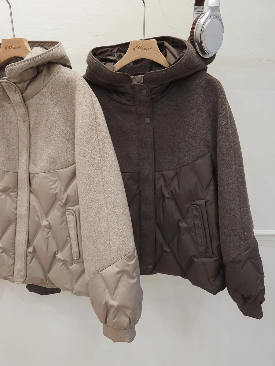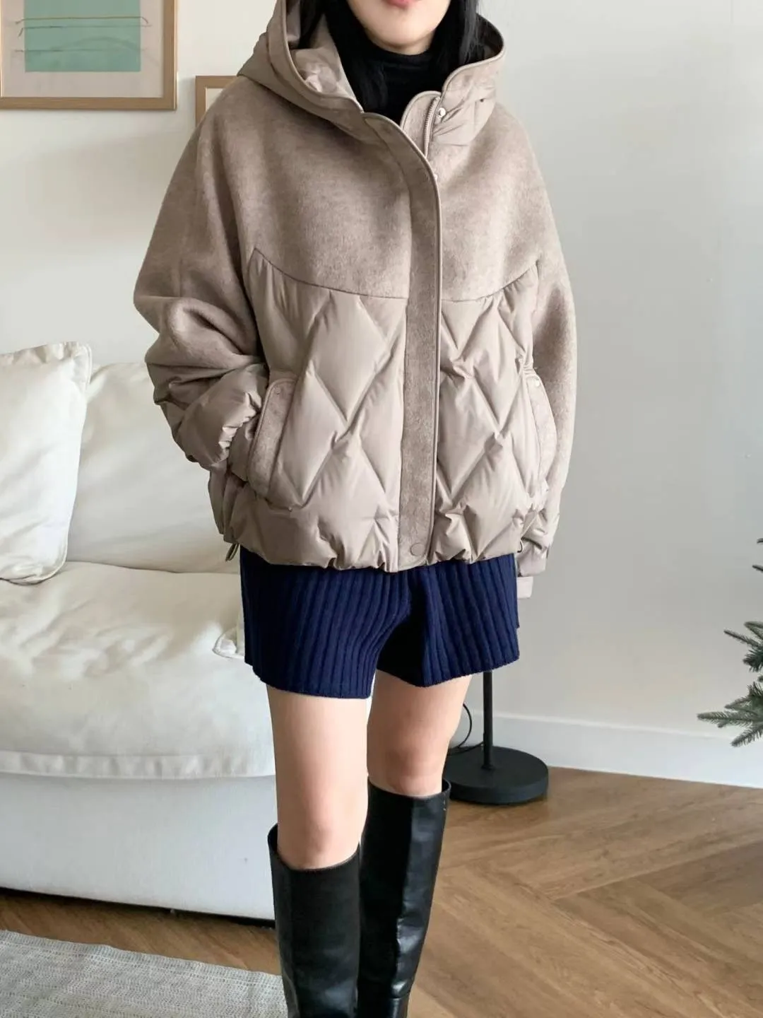 99.正韓 菱格拼接毛呢連帽外套 2色