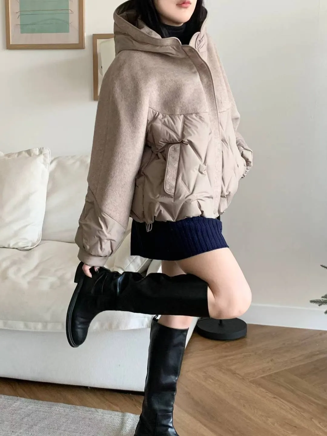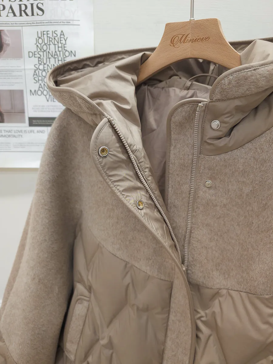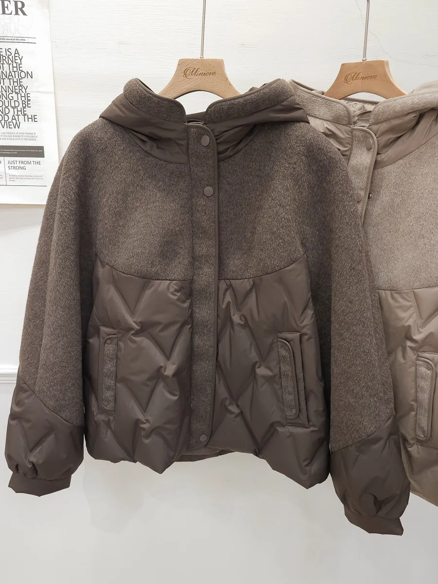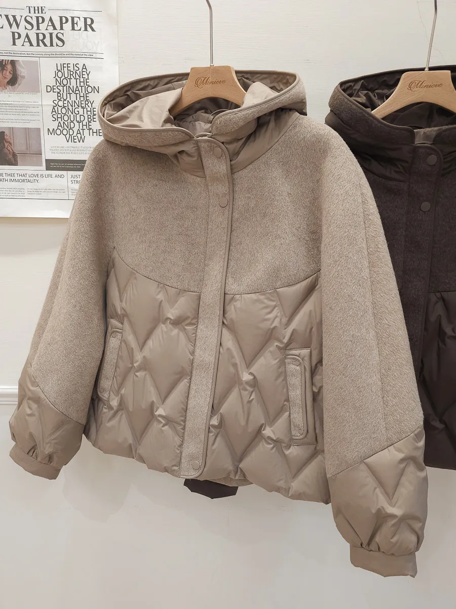 99.正韓 菱格拼接毛呢連帽外套 2色